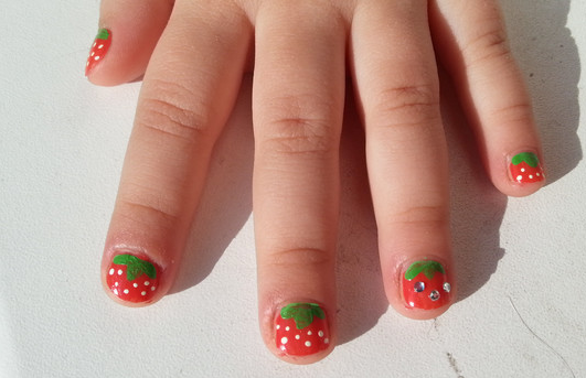 Особенно популярен этот вид маникюра в летний период. Хочется чего-то яркого и необычного, чтобы лето было всегда рядом. Чтобы это воплотить, на детских ногтях рисуются спелые ягоды, фрукты.