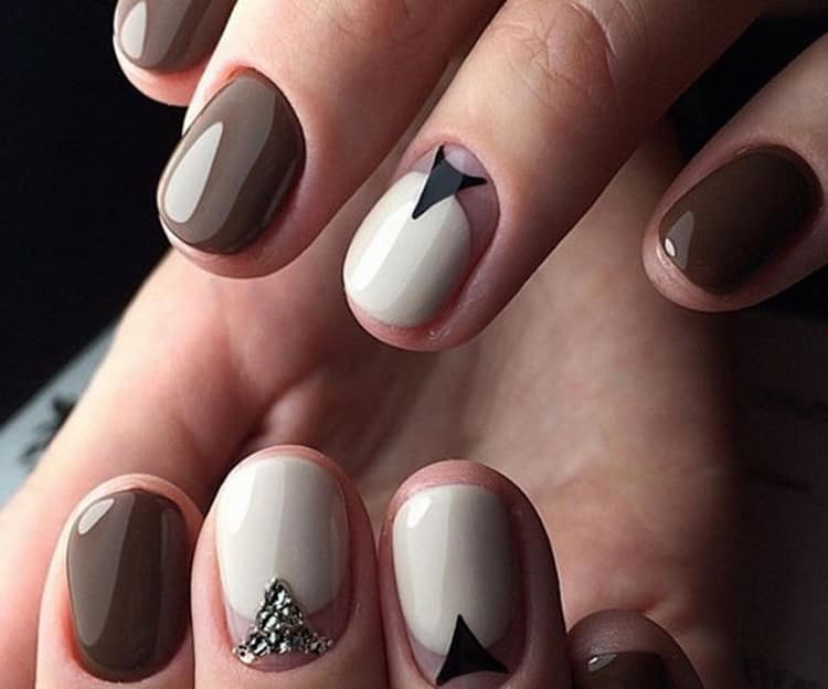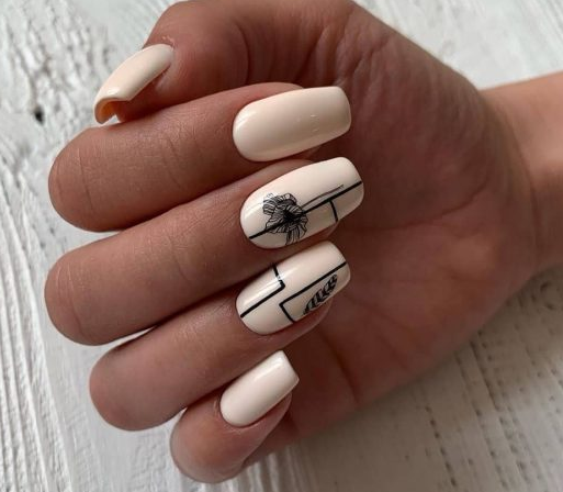 Хорошо сочетается с кремовым, бежевым, коричневым, золотистым. Оттенки молочного подойдут для стильного френча с геометрией.