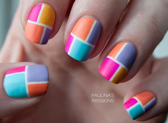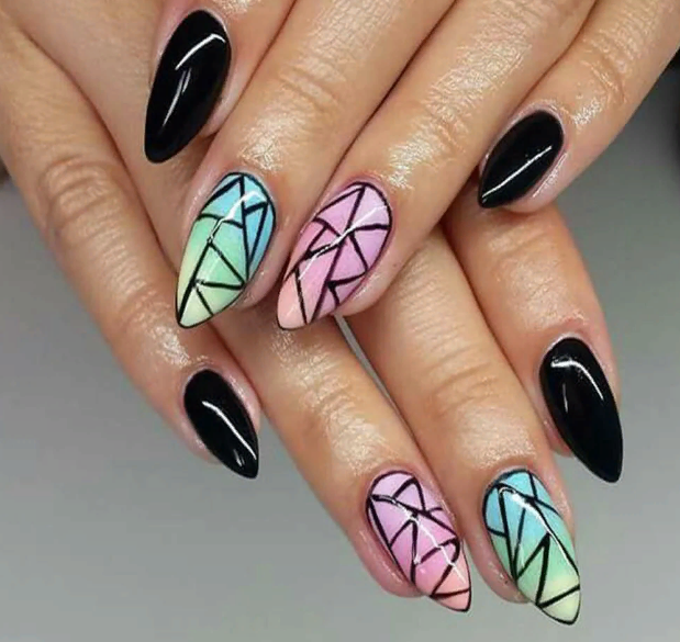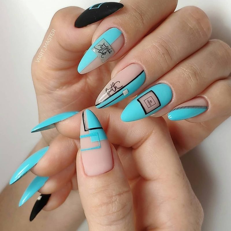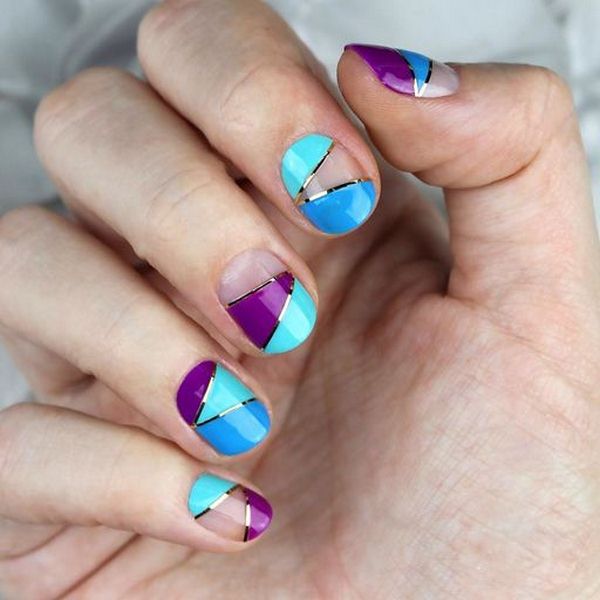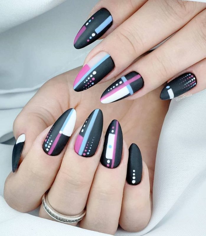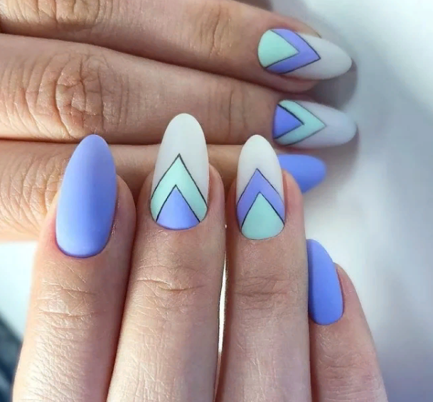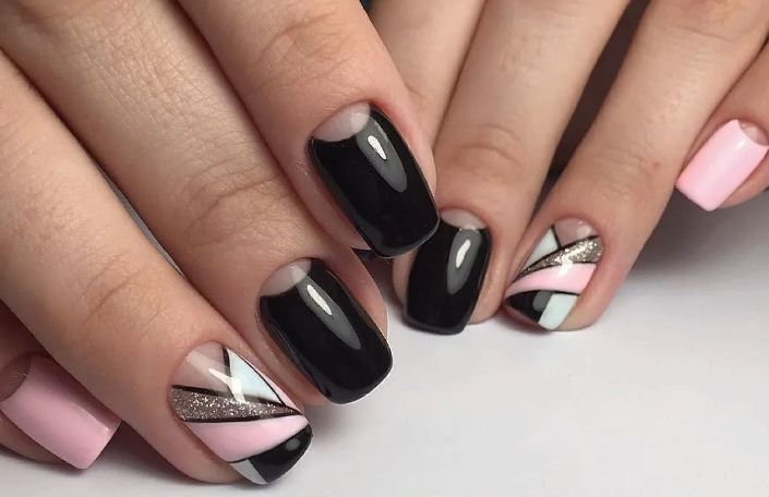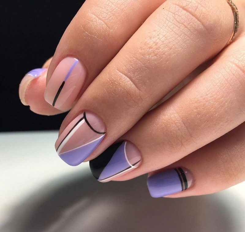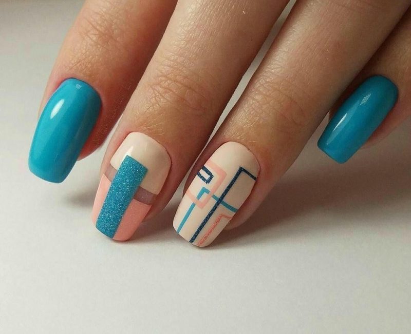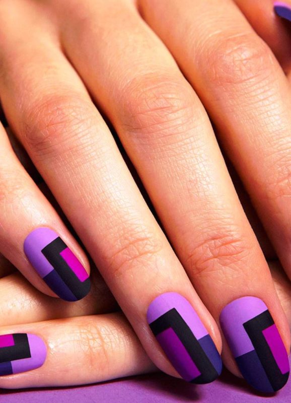 Ногти в стиле геометрии в любом случае смотрятся красиво. Для создания эффектного маникюра используют лаки разных цветов.