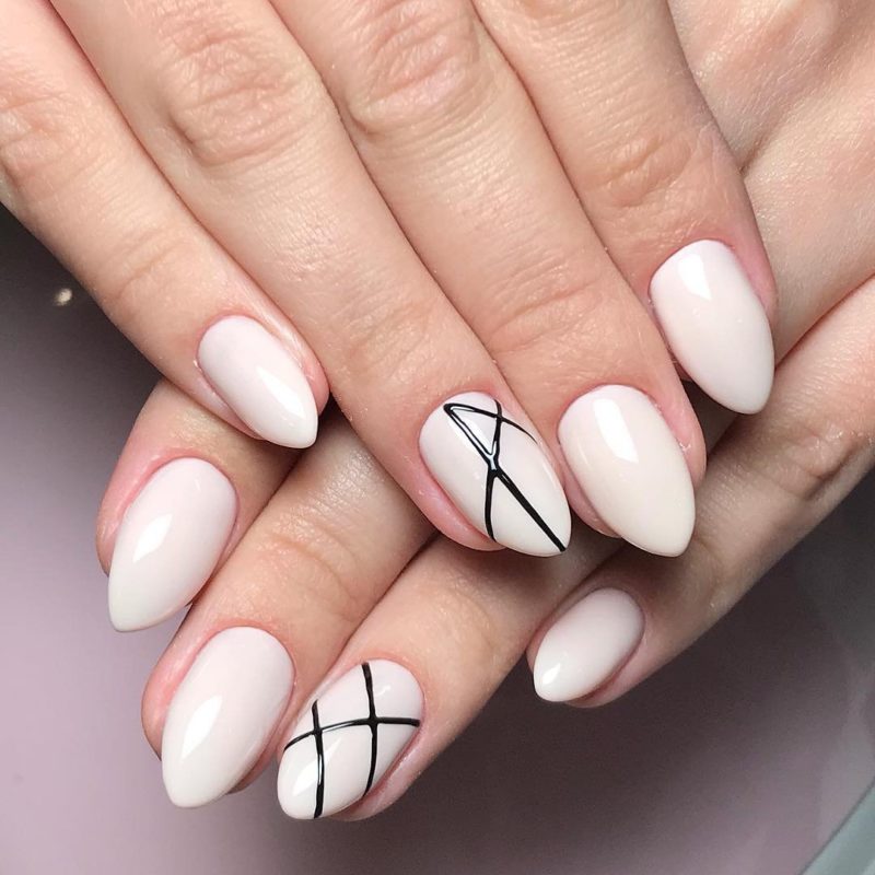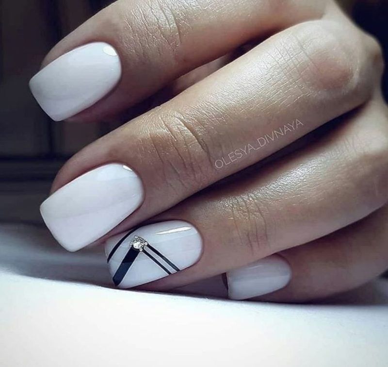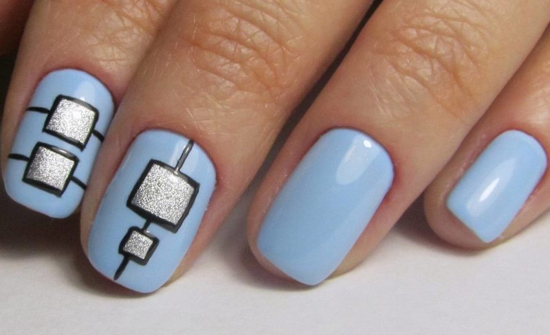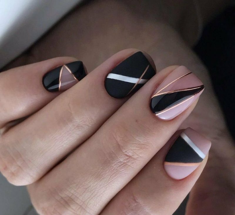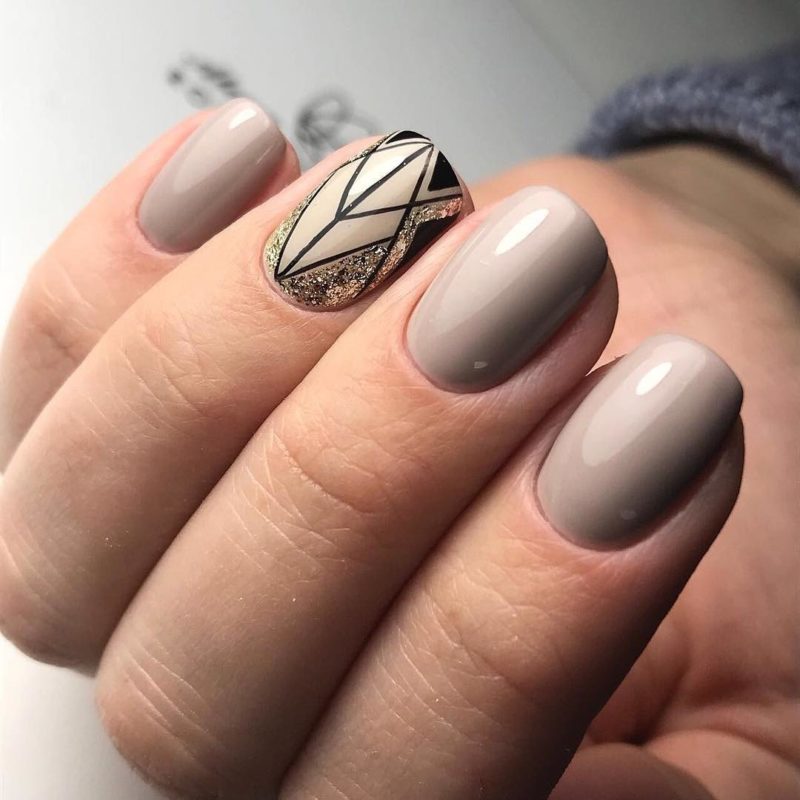 Ваша задача – выбрать наиболее подходящий оттенок лака, и дополнить его небольшими геометрическими линиями. Можно использовать фольгу, блестки, но в идеале декор должен быть неброским. Отличное решение для бизнес-леди!