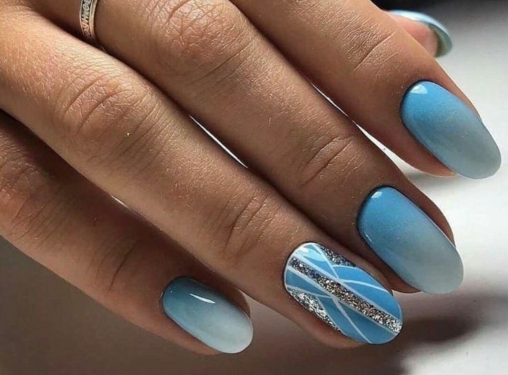 Цвет прекрасно смотрится в дуэте с белым, зеленым, мятным, светло-синим. Холодный нейл-арт притягивает взгляд!