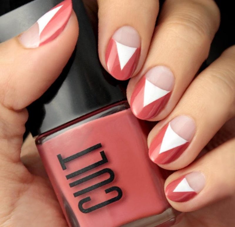 Этот цвет – воплощение любви, красоты, нежности. Для получения оригинального маникюра можно использовать как яркие, так и более сдержанные тона. Розовый сочетается с белым. На таком фоне изображают композиции в стиле «Минимализм».