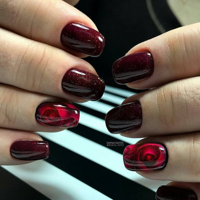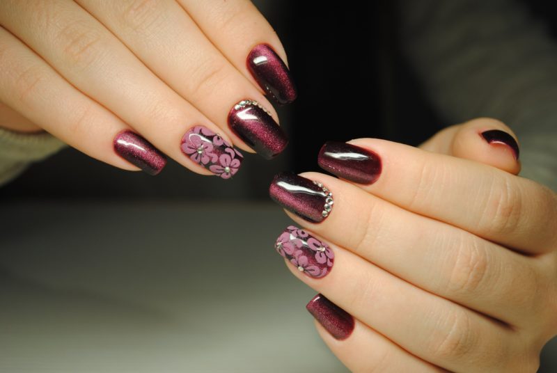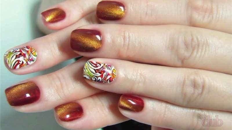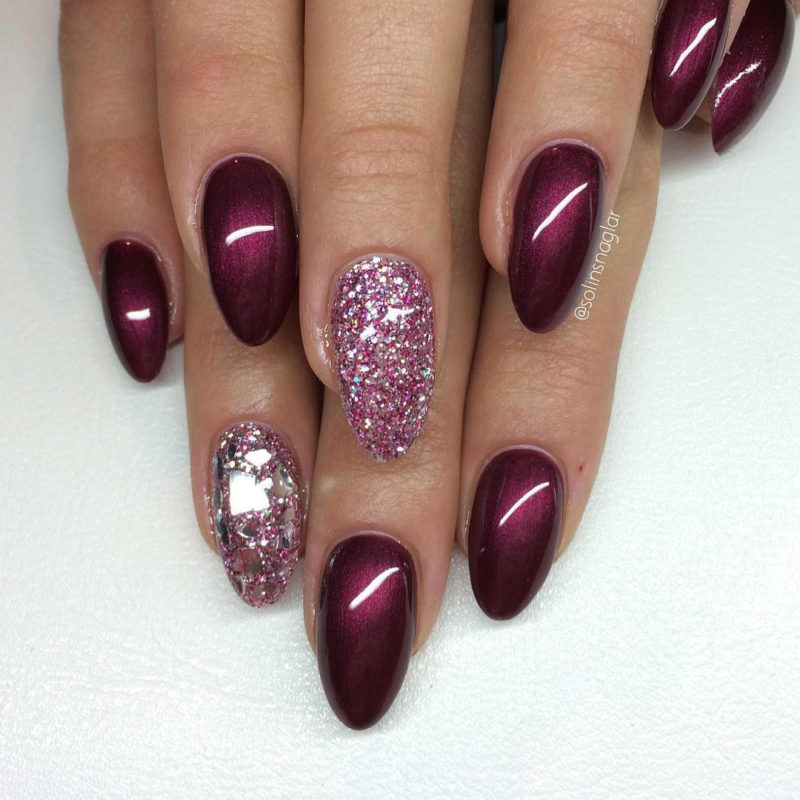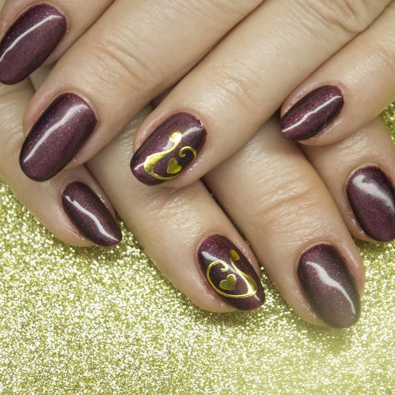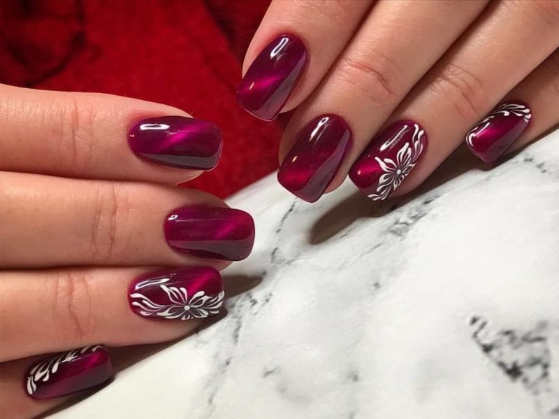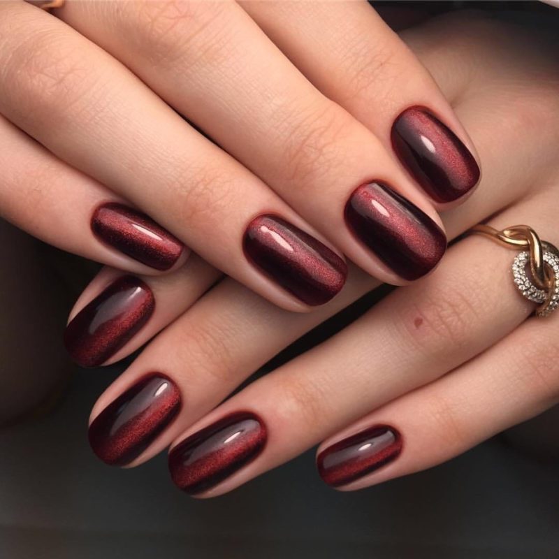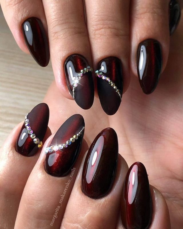 Бордо, винный, масала — все эти оттенки отлично подходят для уверенных в себе дам. Если хочется чего-то необычного, просто выбирайте магнитный лак. Это универсальный дизайн, который можно сочетать и с другими вариантами: