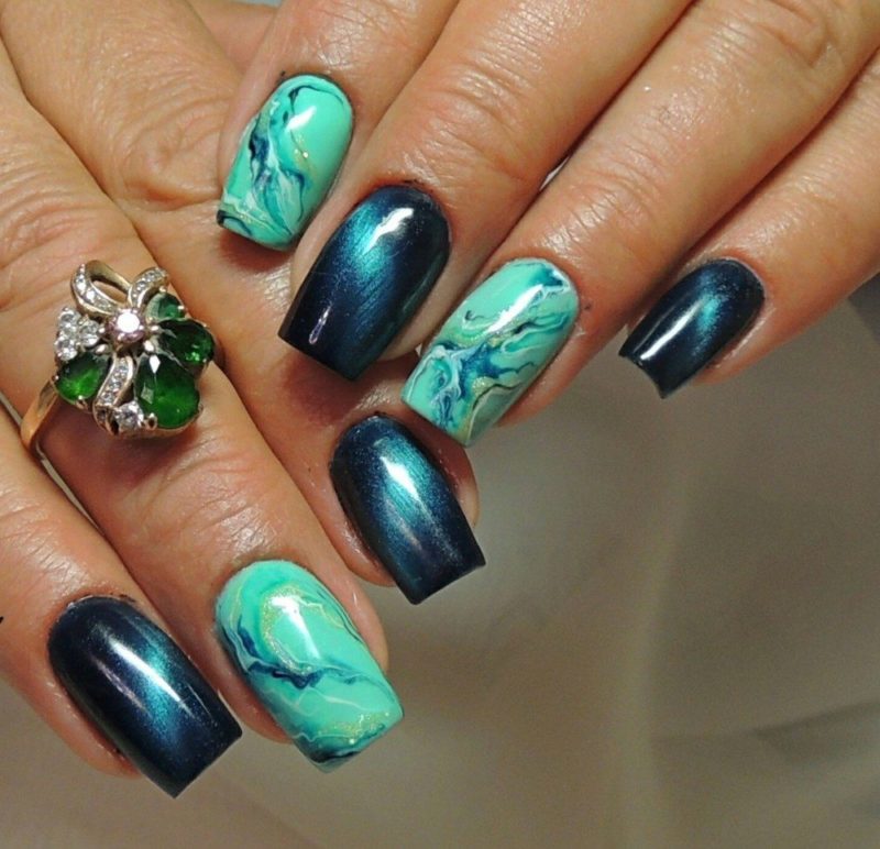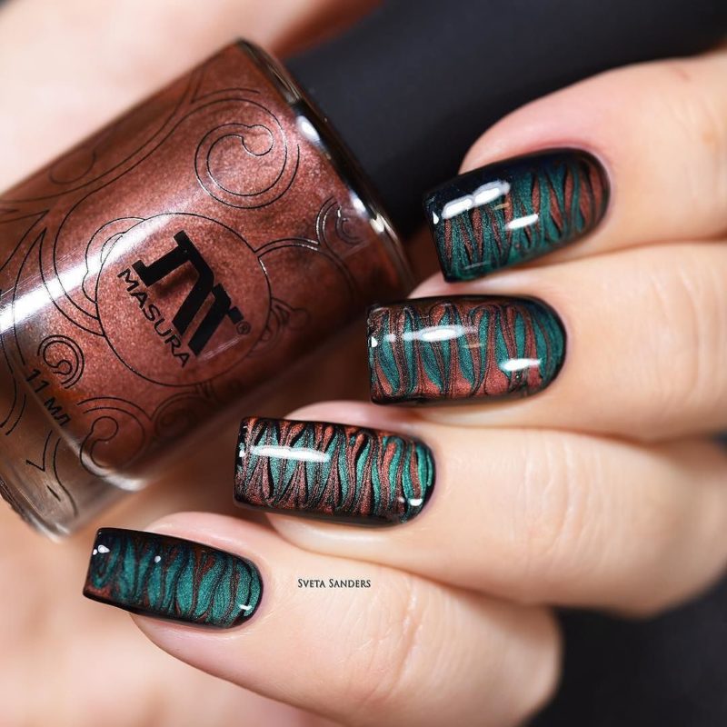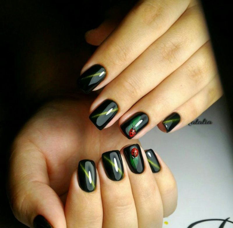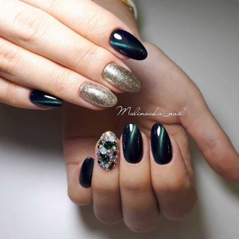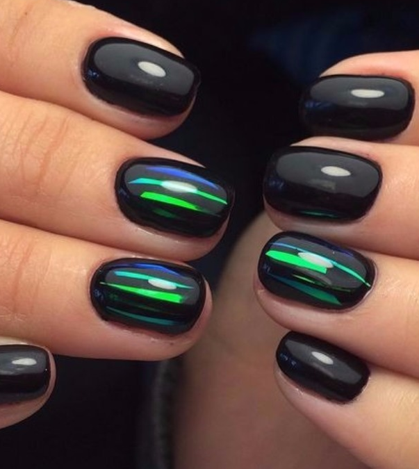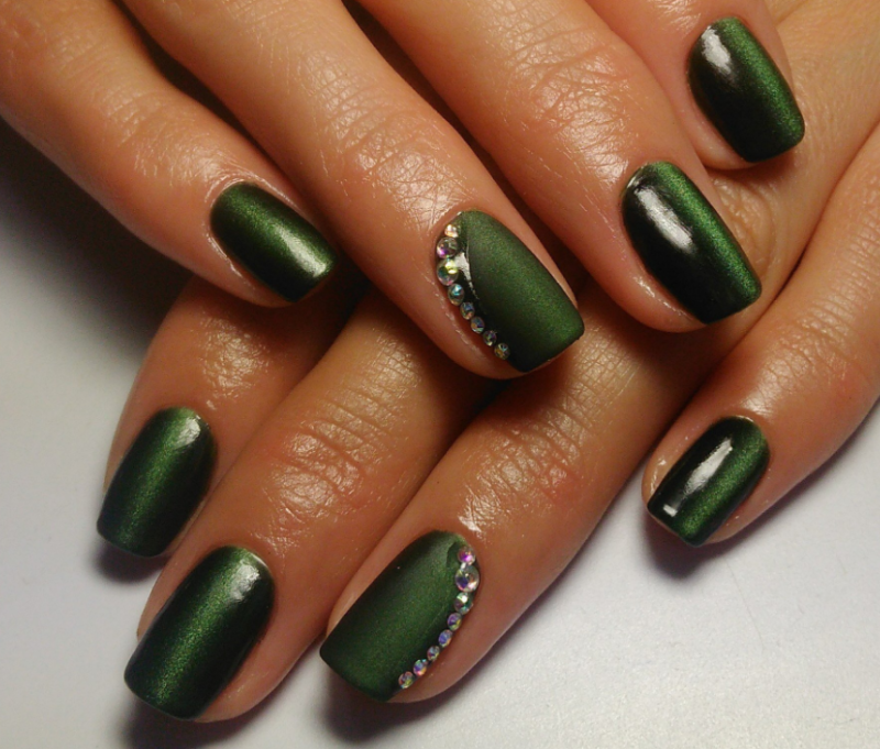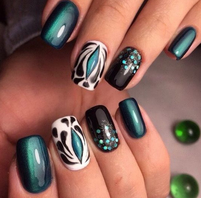 Зеленый — цвет который незаслуженно обходят стороной при создании модного маникюра. Кошачий глаз — это тот случай, когда зеленые оттенки раскрываются максимально полно. Это блестящий малахит или сверкающие сапфиры на ногтях. Обязательно попробуйте такой дизайн в новом сезоне.