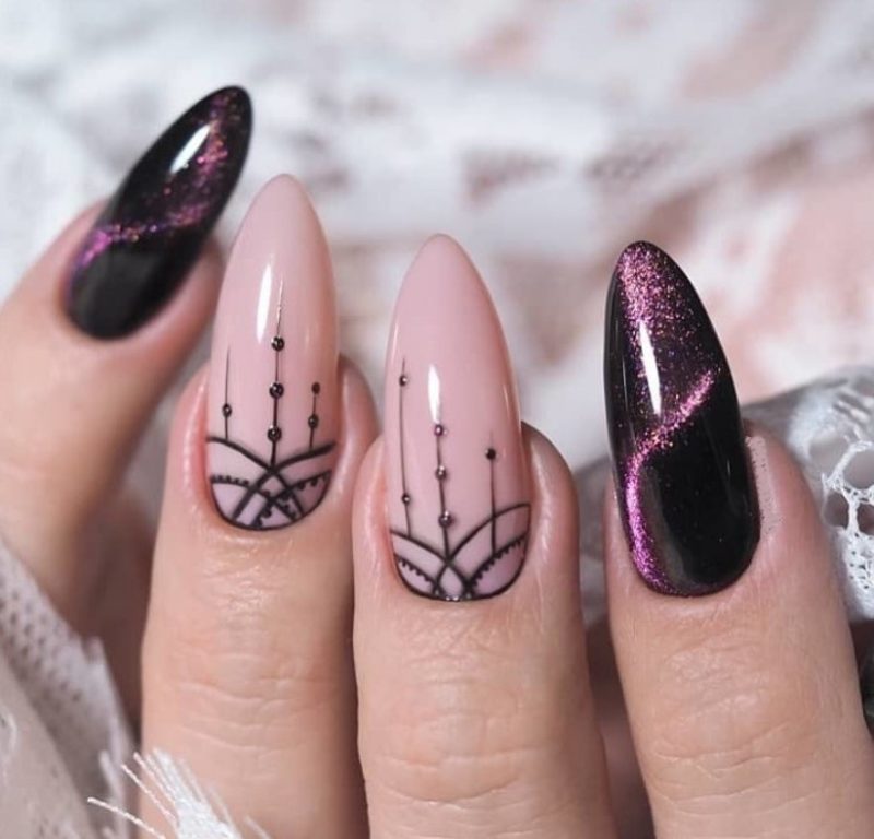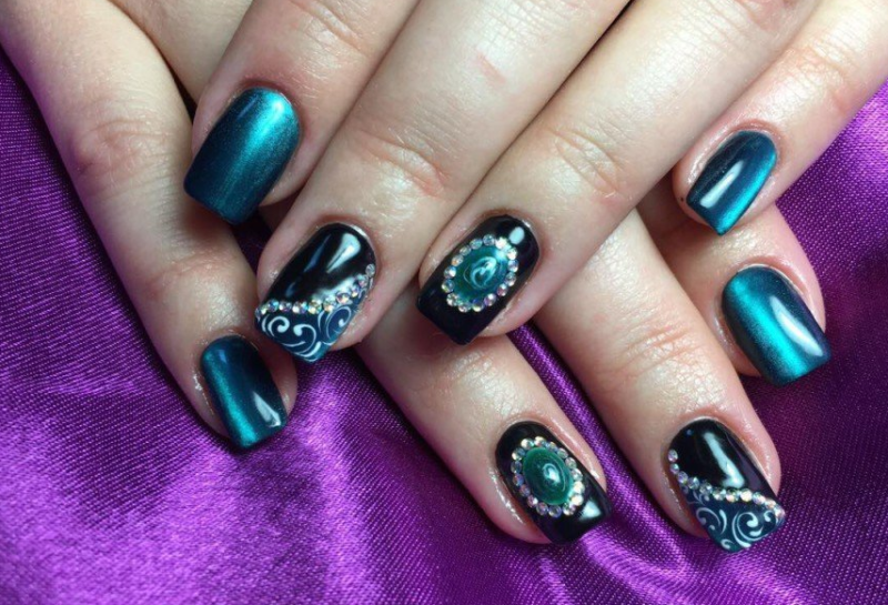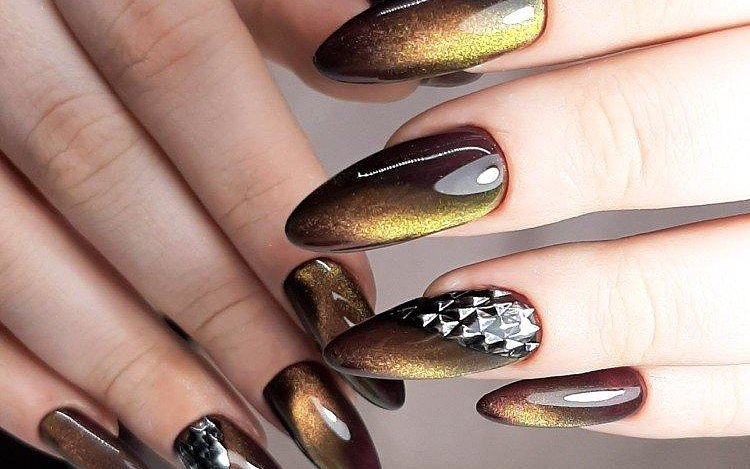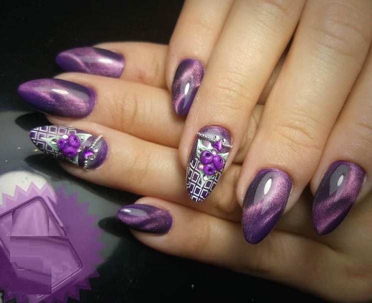 Маникюр кошачий глаз по длине и форме ногтей