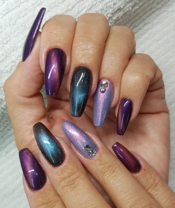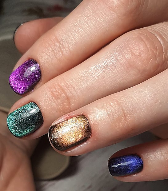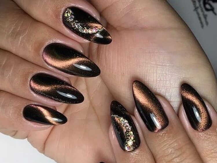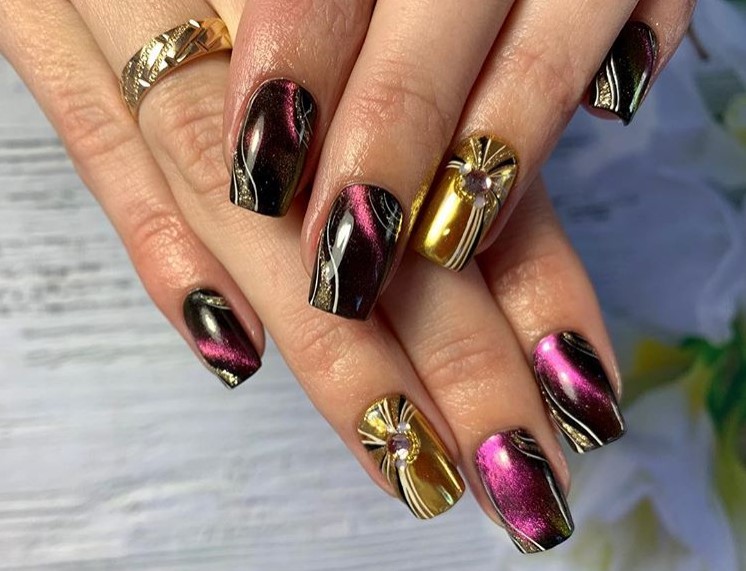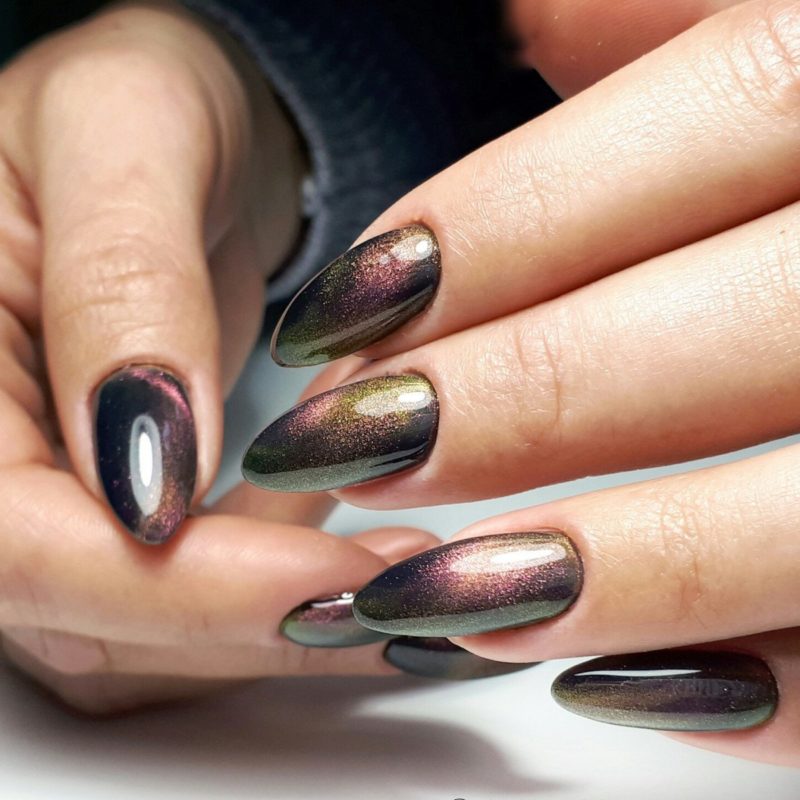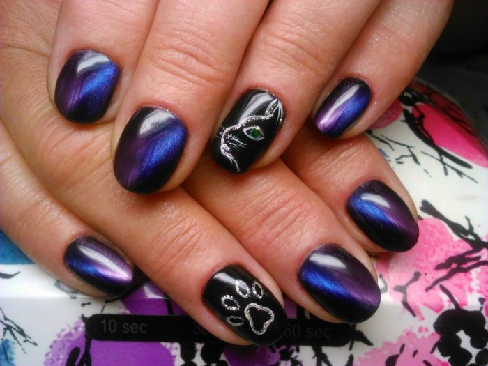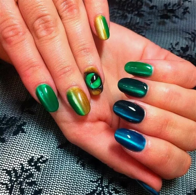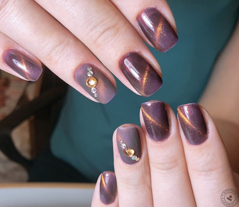 - Дизайн ногтей с кошачьим глазом