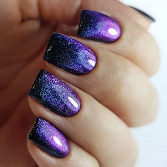 Несмотря на специфическую технику кошачий глаз является универсальным вариантом дизайна ногтей. Он отлично смотрится на короткой и длинной базе. Кроме того, декор подходит для любого образа. Просто выбирайте более светлые или темные оттенки — в зависимости от дресс кода на рабочем месте и повода, по которому решено украсить ноготки зеркальными переливами.