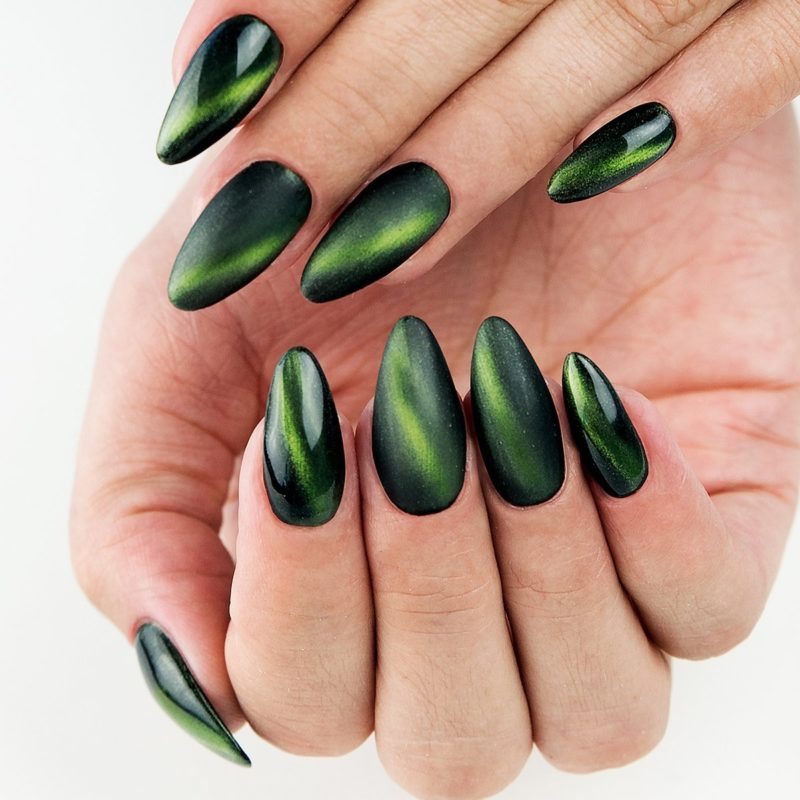 Мастера нейл -арта утверждают, что кошачий глаз — это вариант дизайна, который подходит абсолютно любой форме и длине ногтей.