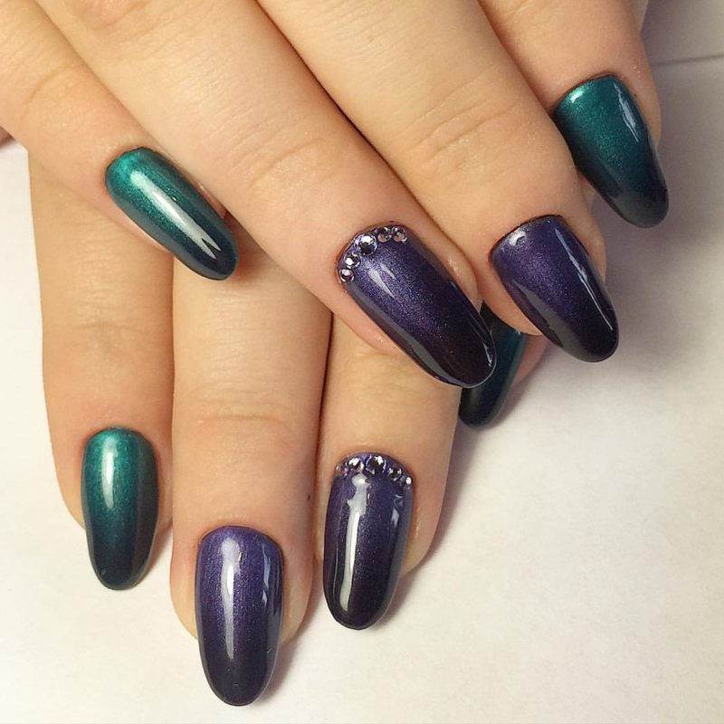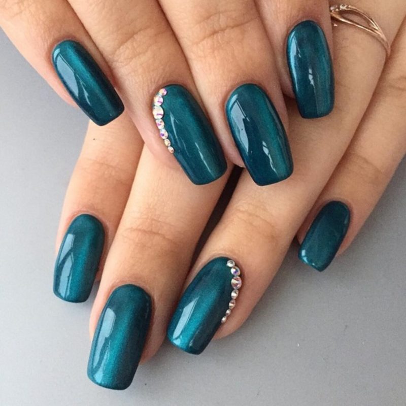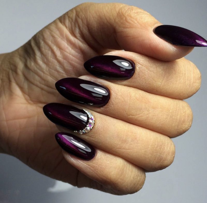 - украшение одного ноготка яркими стразами схожего оттенка;