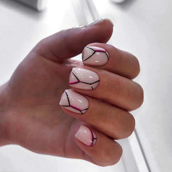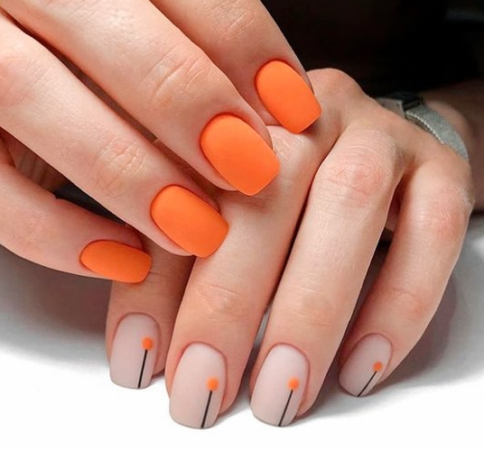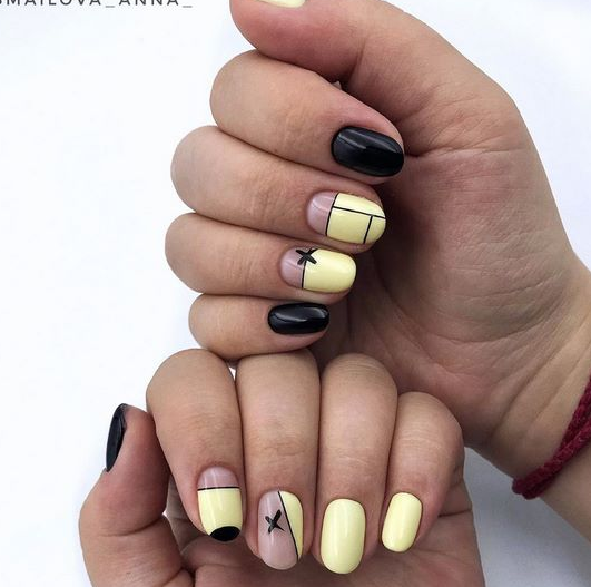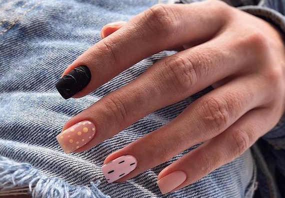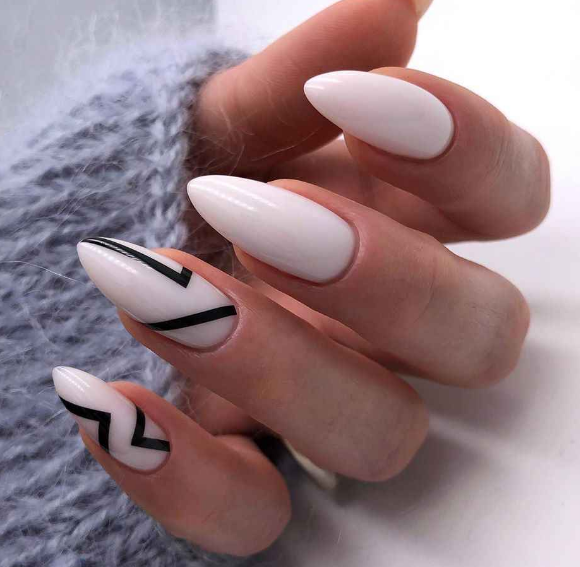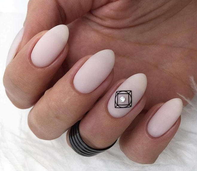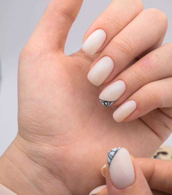 Молочное матовое покрытие — тренд 2026 г. Смотрится дизайн глубоко и элегантно. Чтобы как можно дольше проносить маникюр, необходимо ногти регулярно (не реже 1 раза в 2 дня) протирать салфеткой, смоченной в мицеллярной воде. Матовый оттенок можно комбинировать с другими, например, лиловым, розовым, салатовым, желтым. Геометрические фигуры и линии лучше всего изображать в черном цвете.