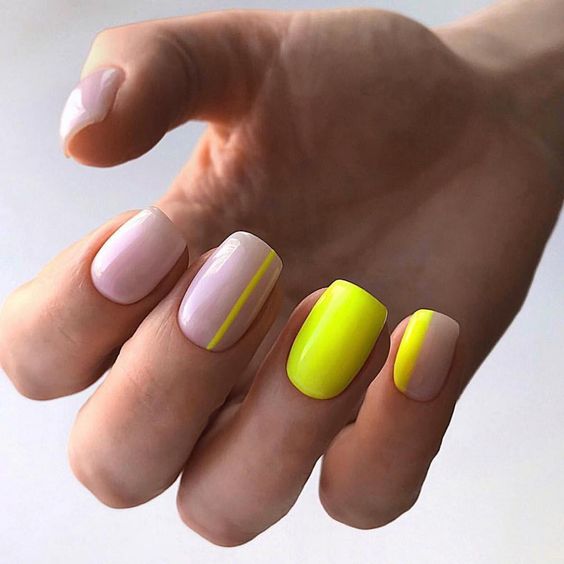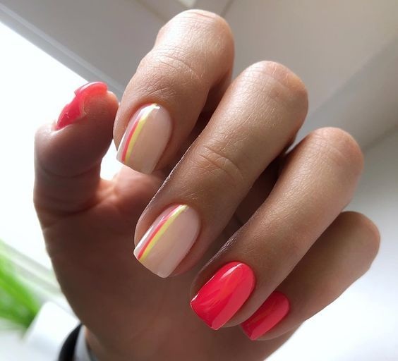 Эта техника актуальна весной и летом. Маникюр «разные руки» в исполнении довольно прост: на ногти одной руки (например, правой) наносят молочную базу. Если нужно получить более темный оттенок, то пластину покрывают несколькими слоями лака. На вторую руку наносят любой другой цвет, желательно, сочетающийся с кремовым (например, розовый, оранжевый, бледно-лиловый, салатовый).