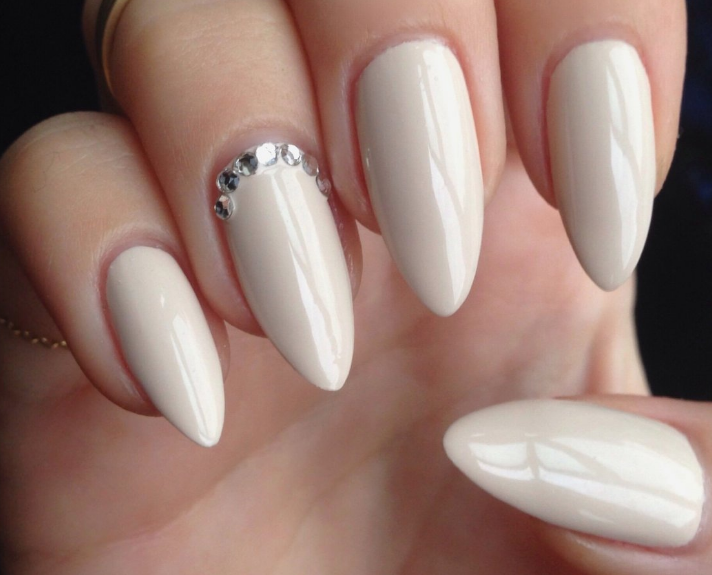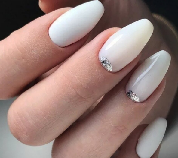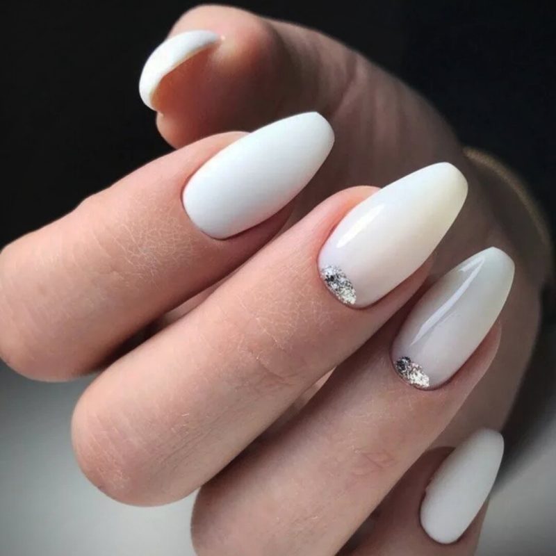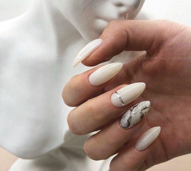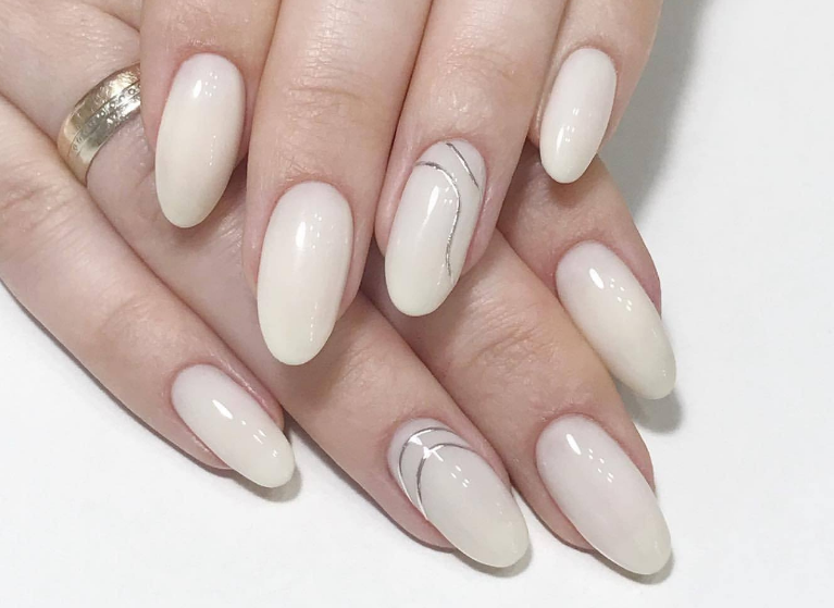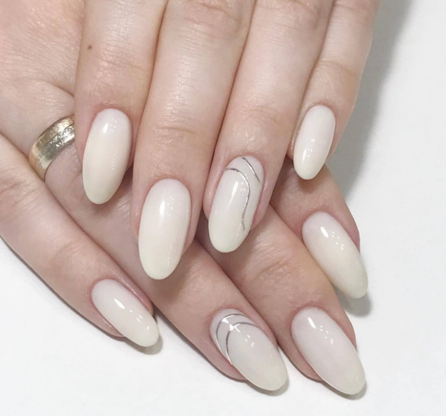 Этот оттенок очень необычно смотрится на ногтях. Назвать молочно-белый цвет кремовым нельзя — по тону он напоминает обезжиренную сметану. Оттенок полупрозрачный, имеет легкую матовость. Используют этот цвет часто при создании маникюра «разные руки».