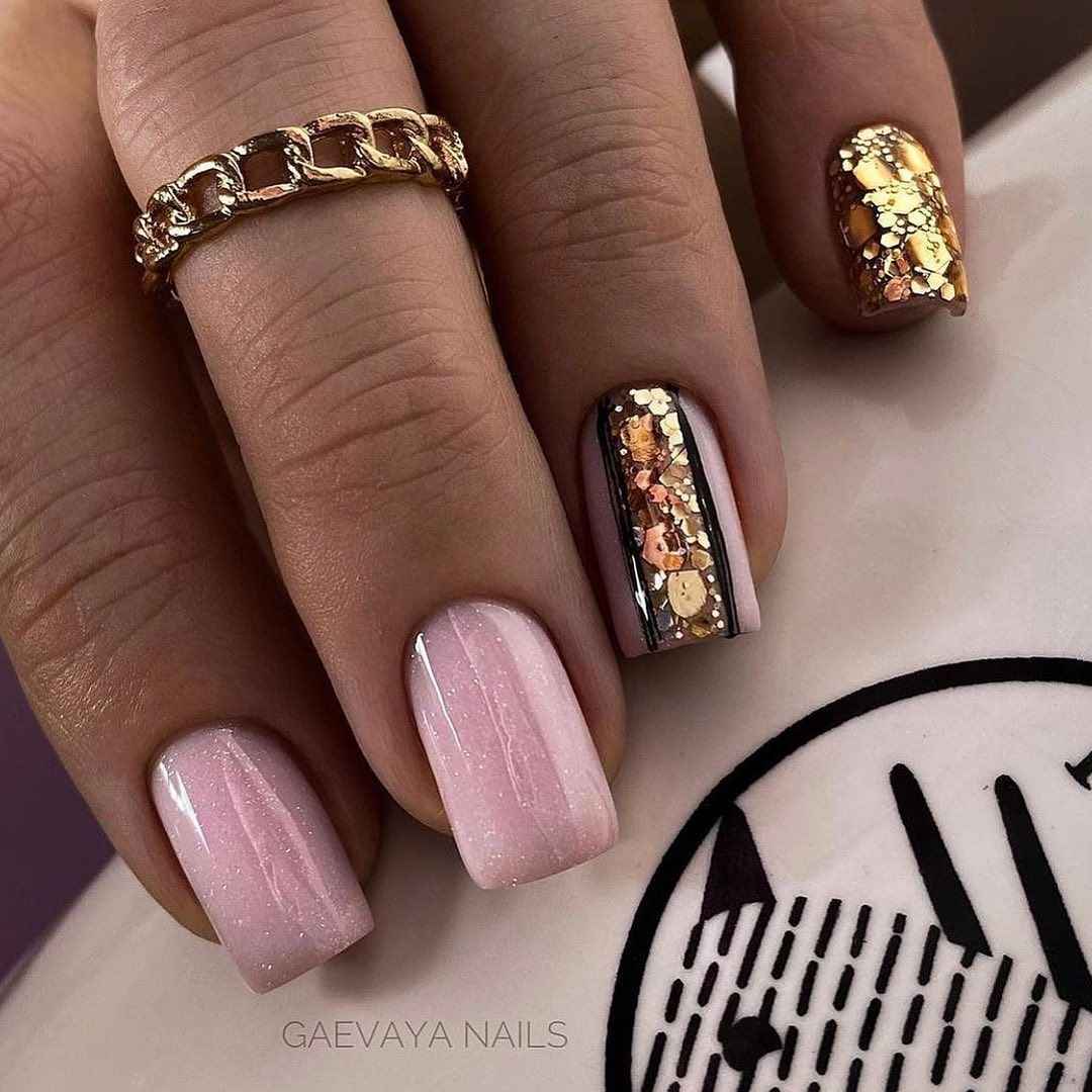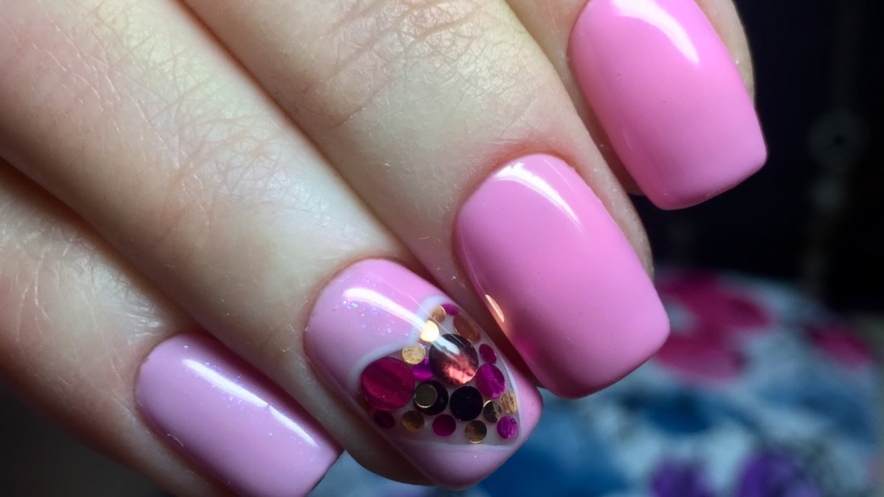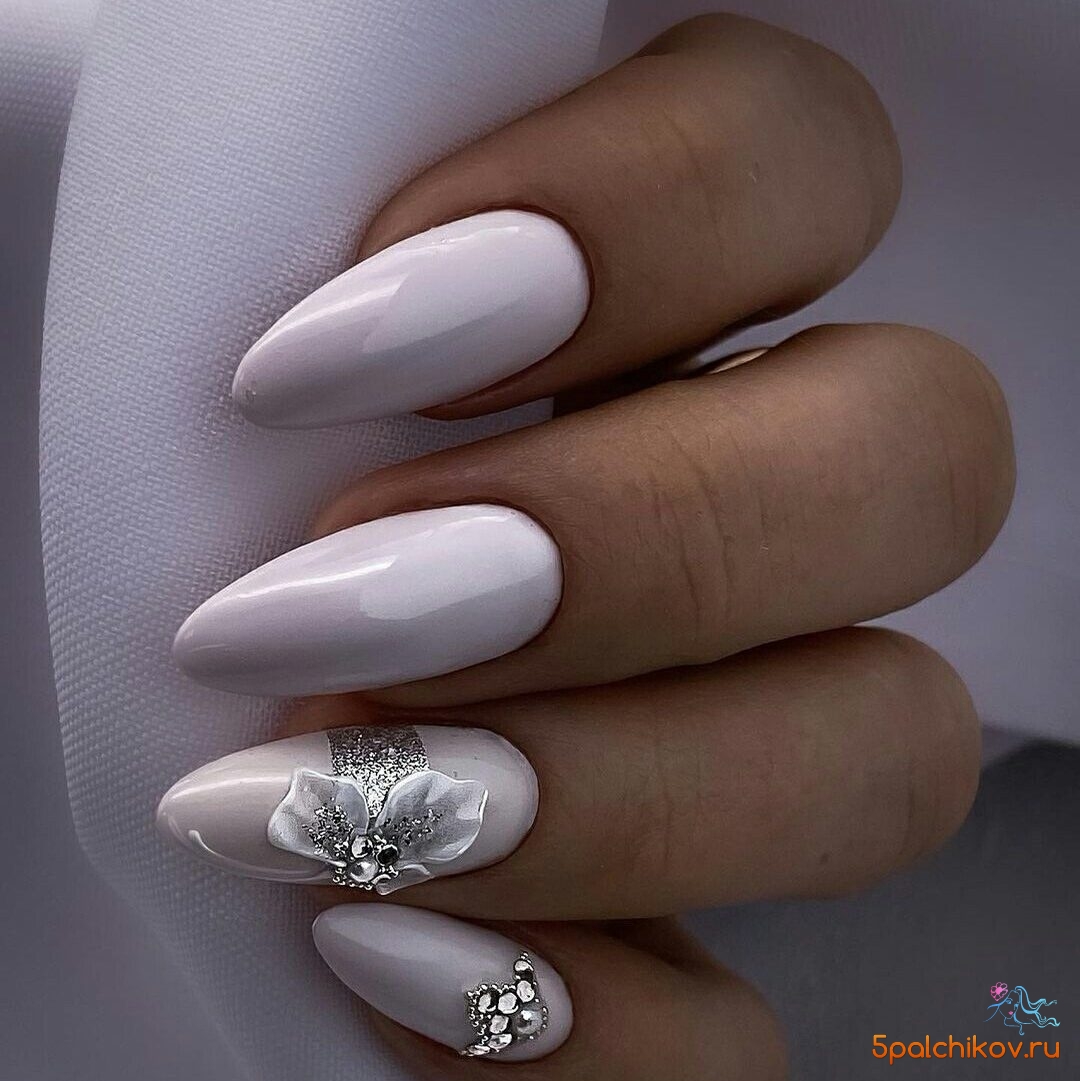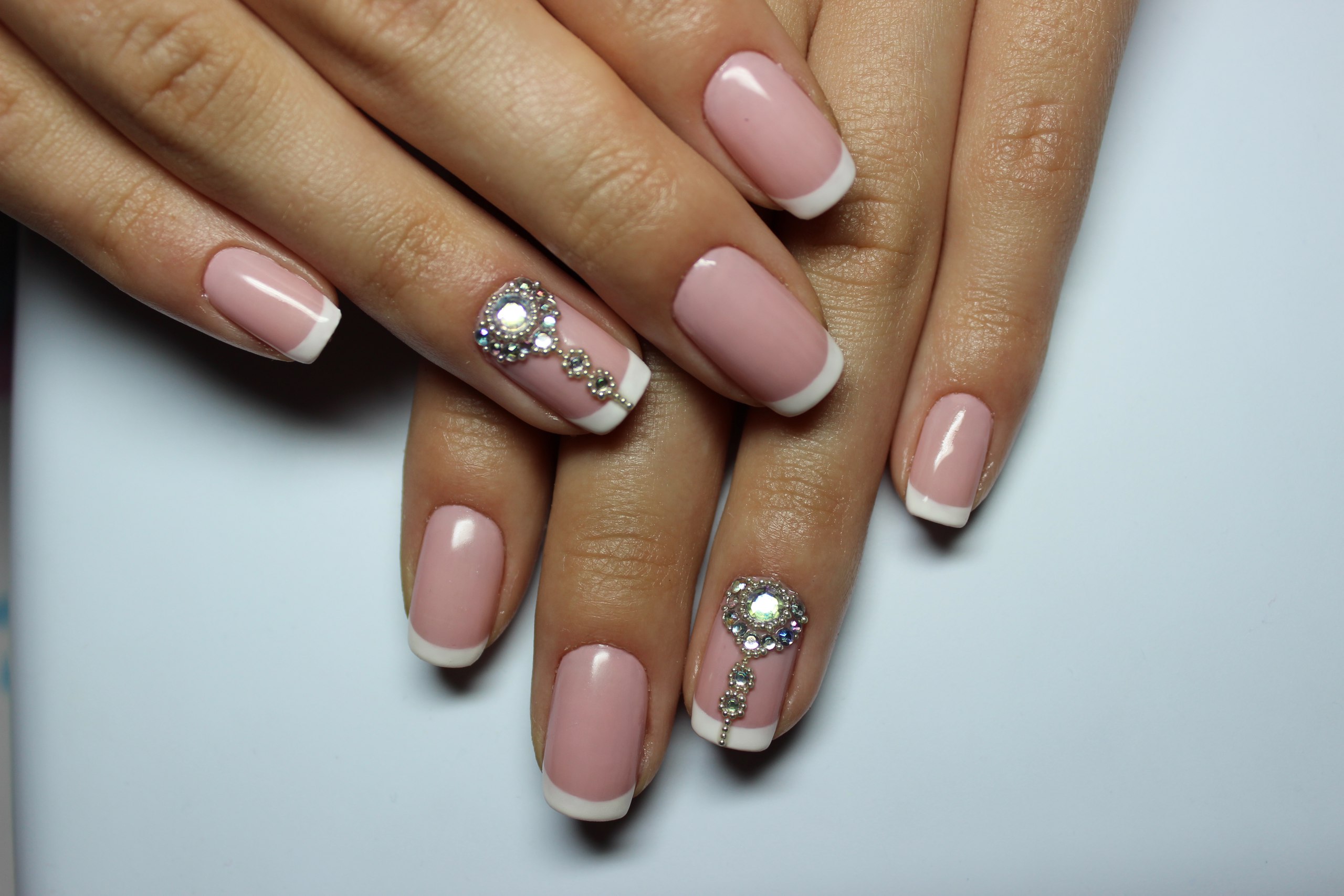 Совет: достаточно акцента на одном ноготке. И помните — чем больше рисунков, тем меньше блесток. Чем короче длина ногтей, тем меньше размер камней.