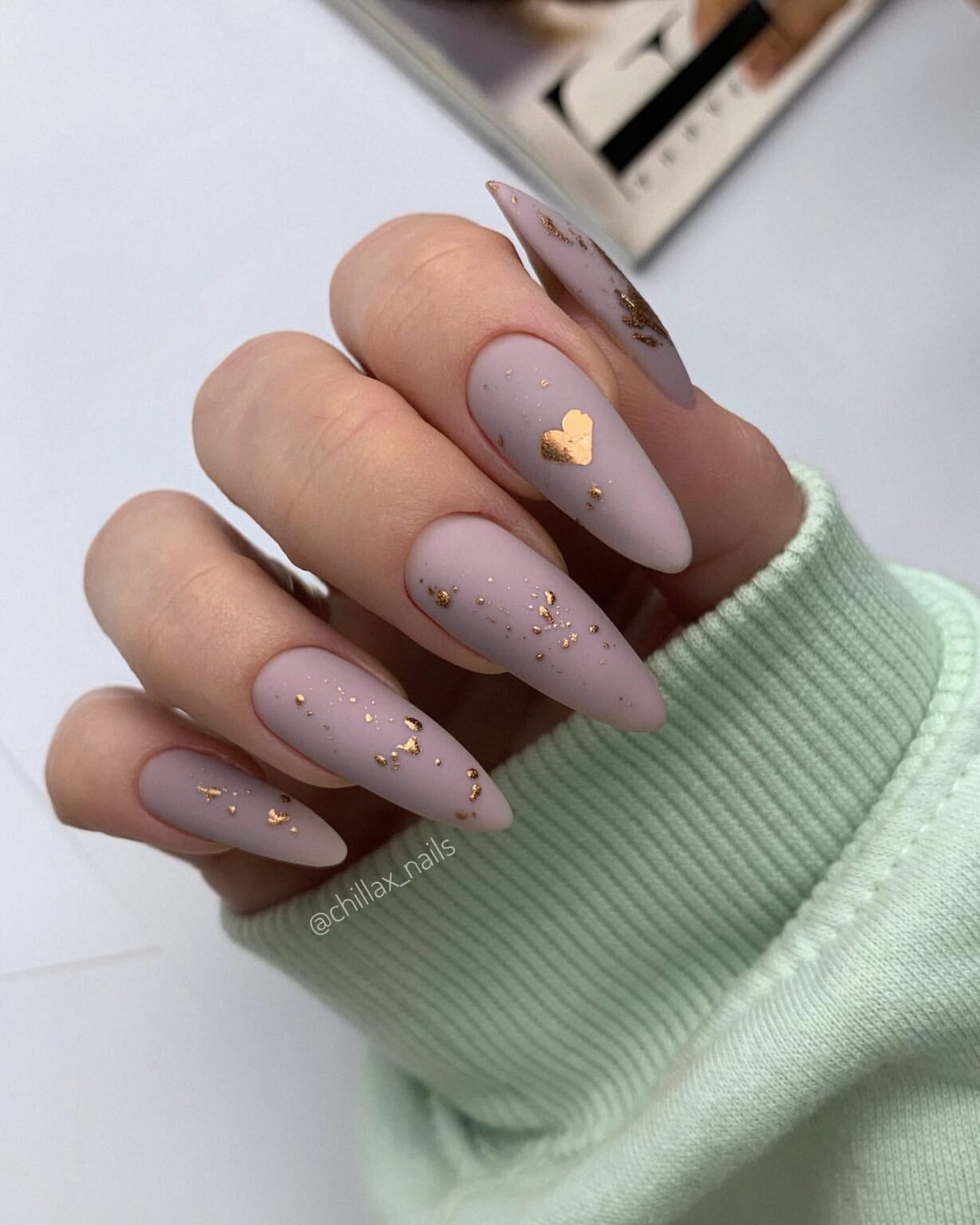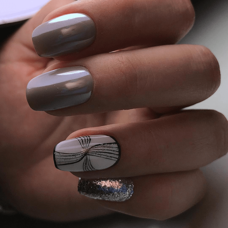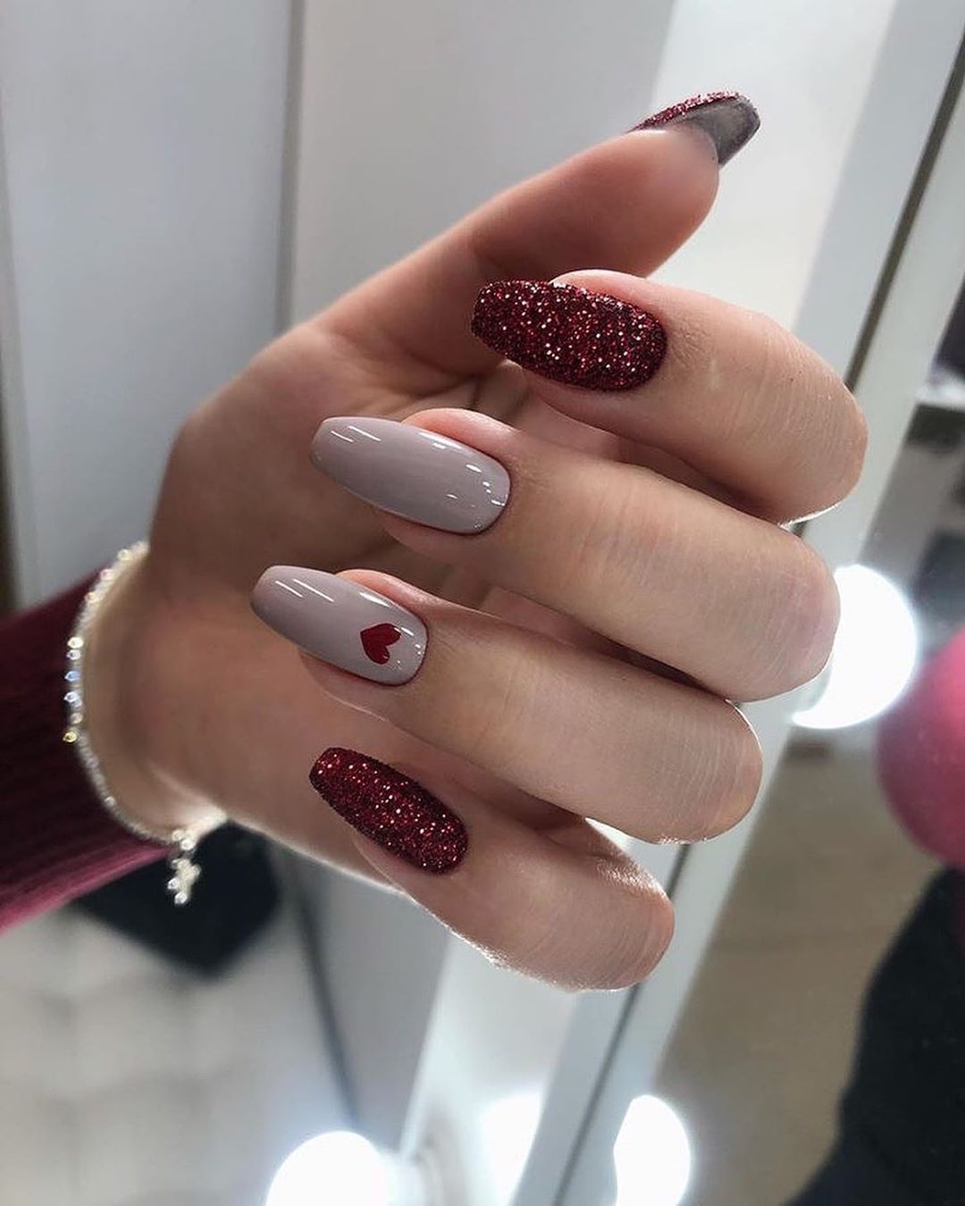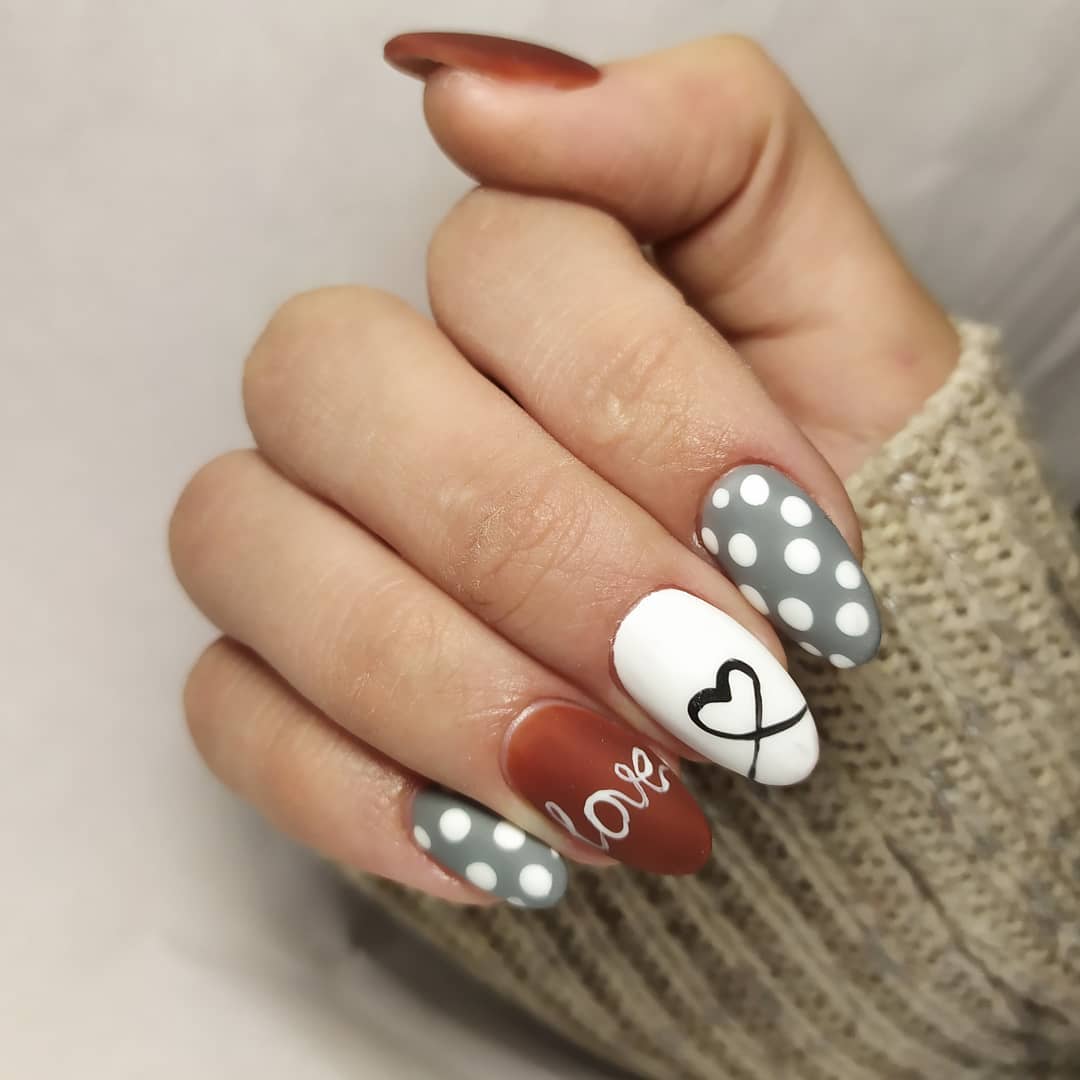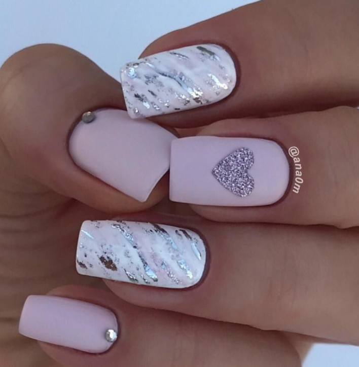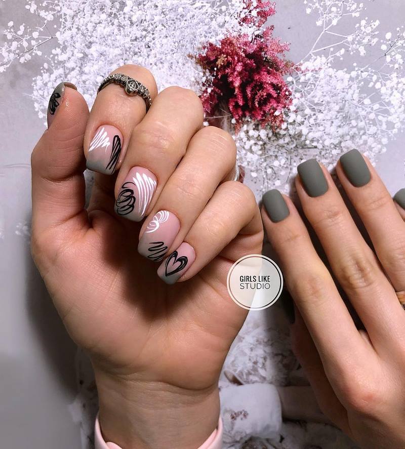 Нет, конечно, мы не хотим, чтобы ваш праздничный маникюр был скучным и скромным. Выбирайте серо-розовый тон для 14 февраля. Это отличный вариант для офисных будней. Перед праздником достаточно будет добавить пару интересных штрихов и дизайн на 14 февраля готов.