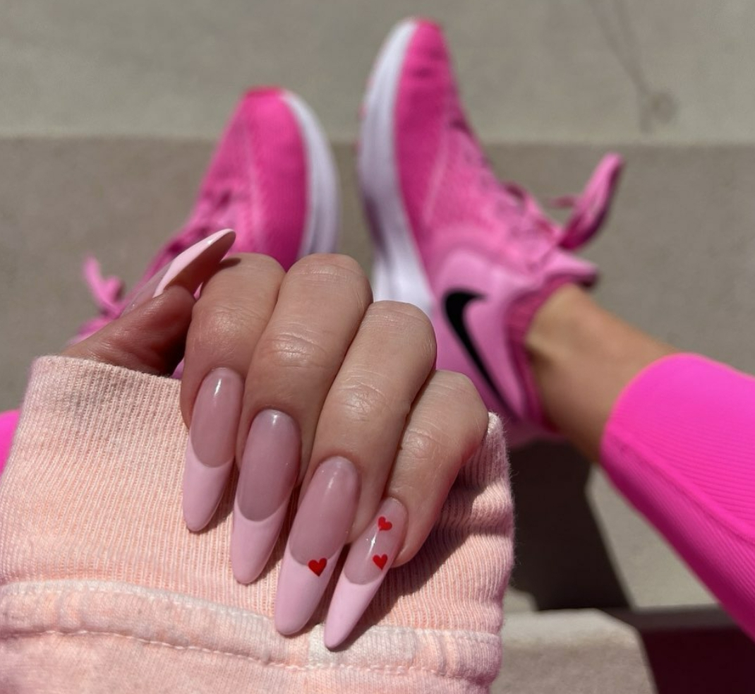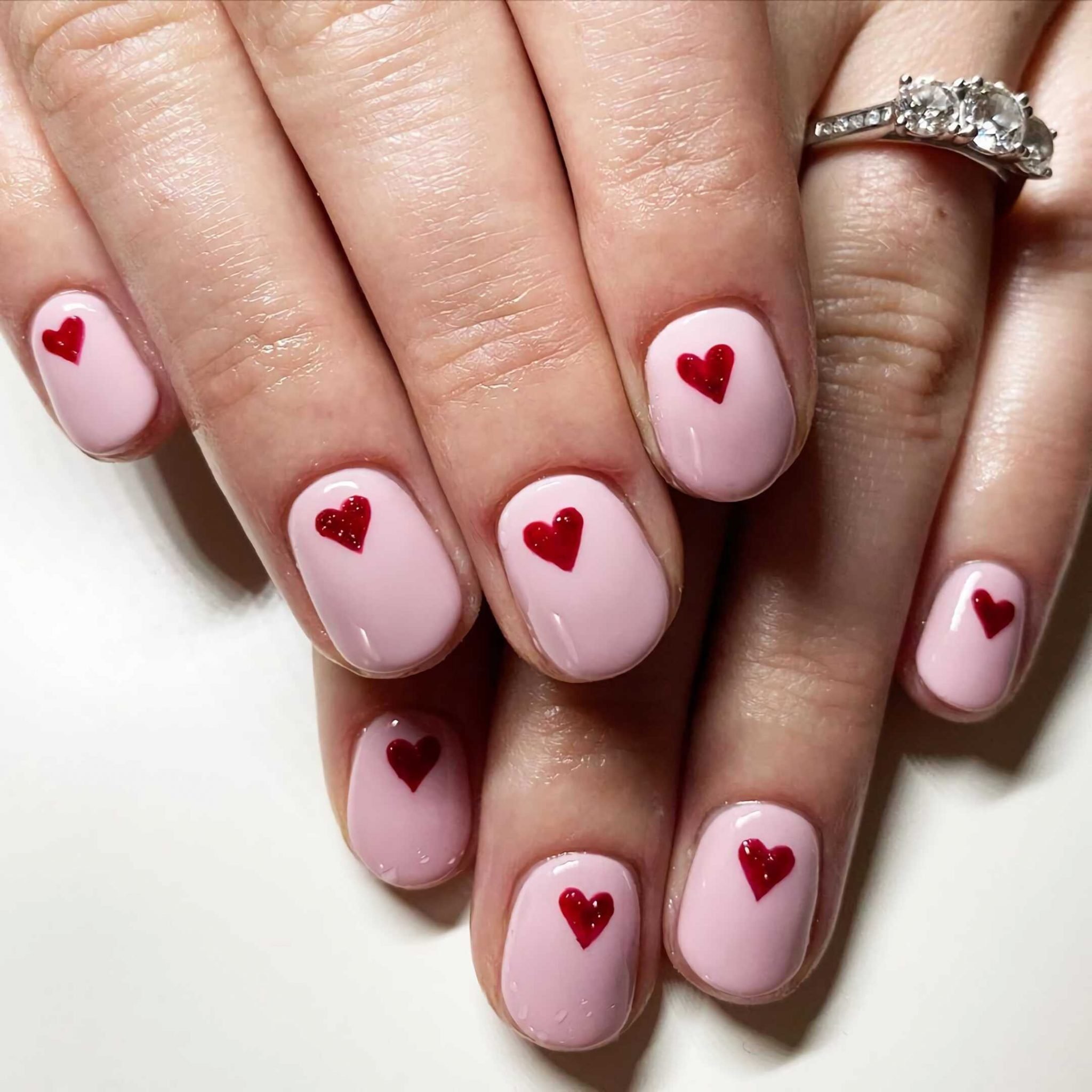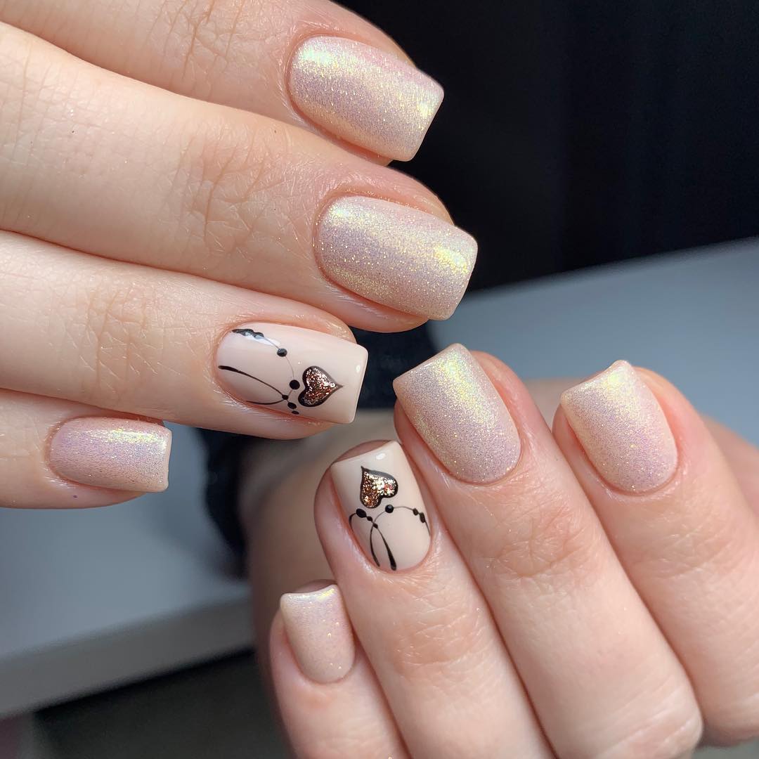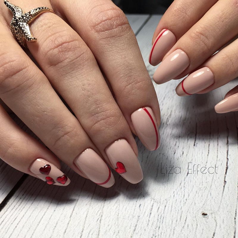 - минимализм. Современный ритм жизни часто не позволяет посетить мастера прямо накануне праздника. Поэтому рекомендуем вам подготовиться заранее. Минимализм и естественность — тренды 2026 года. И для 14 февраля такой вариант тоже подойдет. просто сделайте идеальный маникюр приемлемого оттенка и нарисуйте на нем маленькие сердечки. Этого будет вполне достаточно, чтобы показать свою сопричастность к 14 февраля.