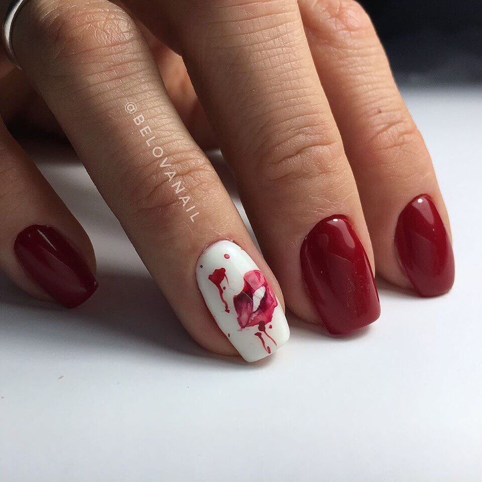 - мраморный маникюр. Не стоит делать красно-белый мрамор на ногтях. Это слишком интенсивный дизайн и дополнять его рисунками — too much;