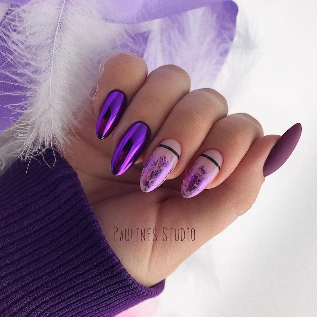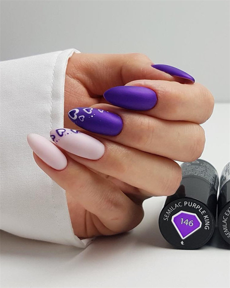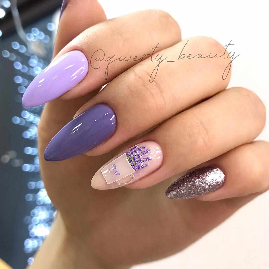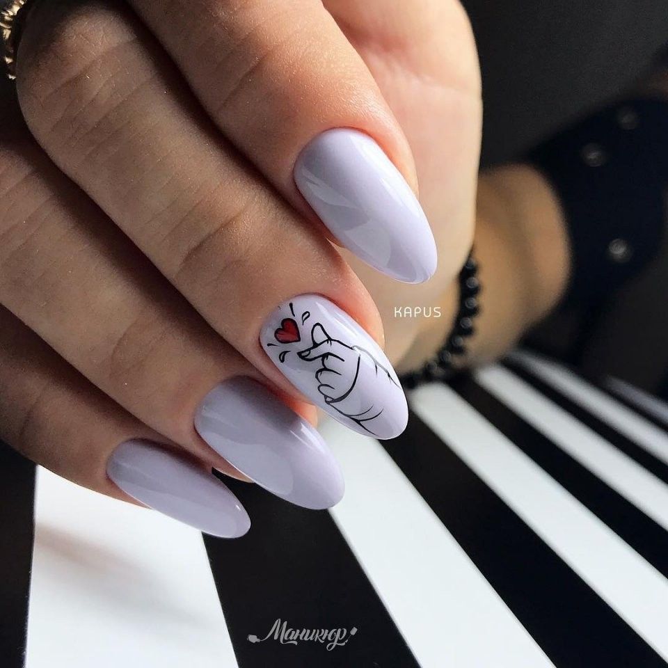 Это, наверное, самый подходящий из фиолетовой палитры оттенок для 14 февраля. Маникюр получится не просто нежным и романтичным. но и очень необычным. Согласитесь, большинство модниц выберут розовый или алый оттенок. И лавандовые ноготки обязательно привлекут внимание на День всех влюбленных.