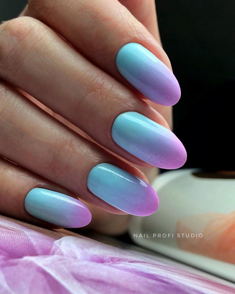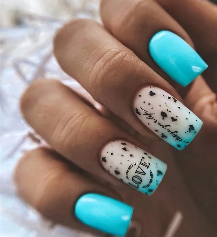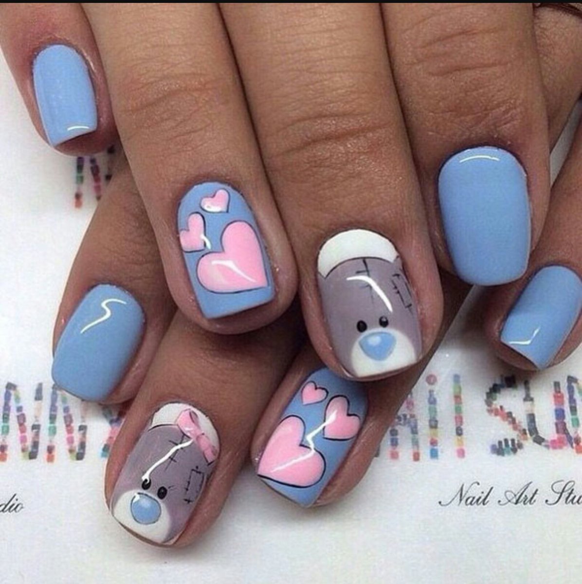 Еще один романтичный и красивый оттенок. Холодные тона подойдут платиновым блондинкам. Но голубом фоне эффектно смотрится серебристый дизайн — рисунки, фольга и др.