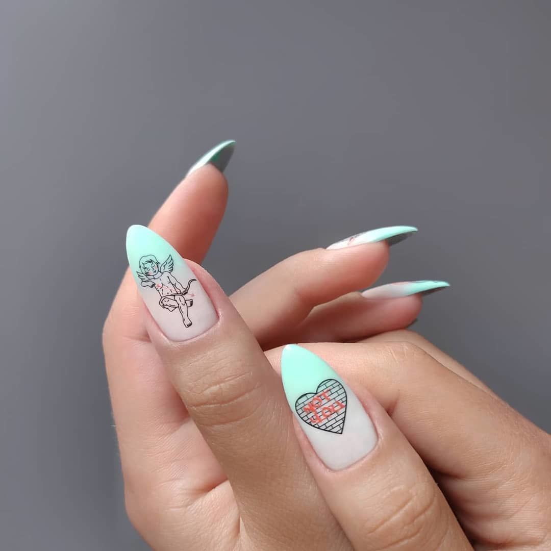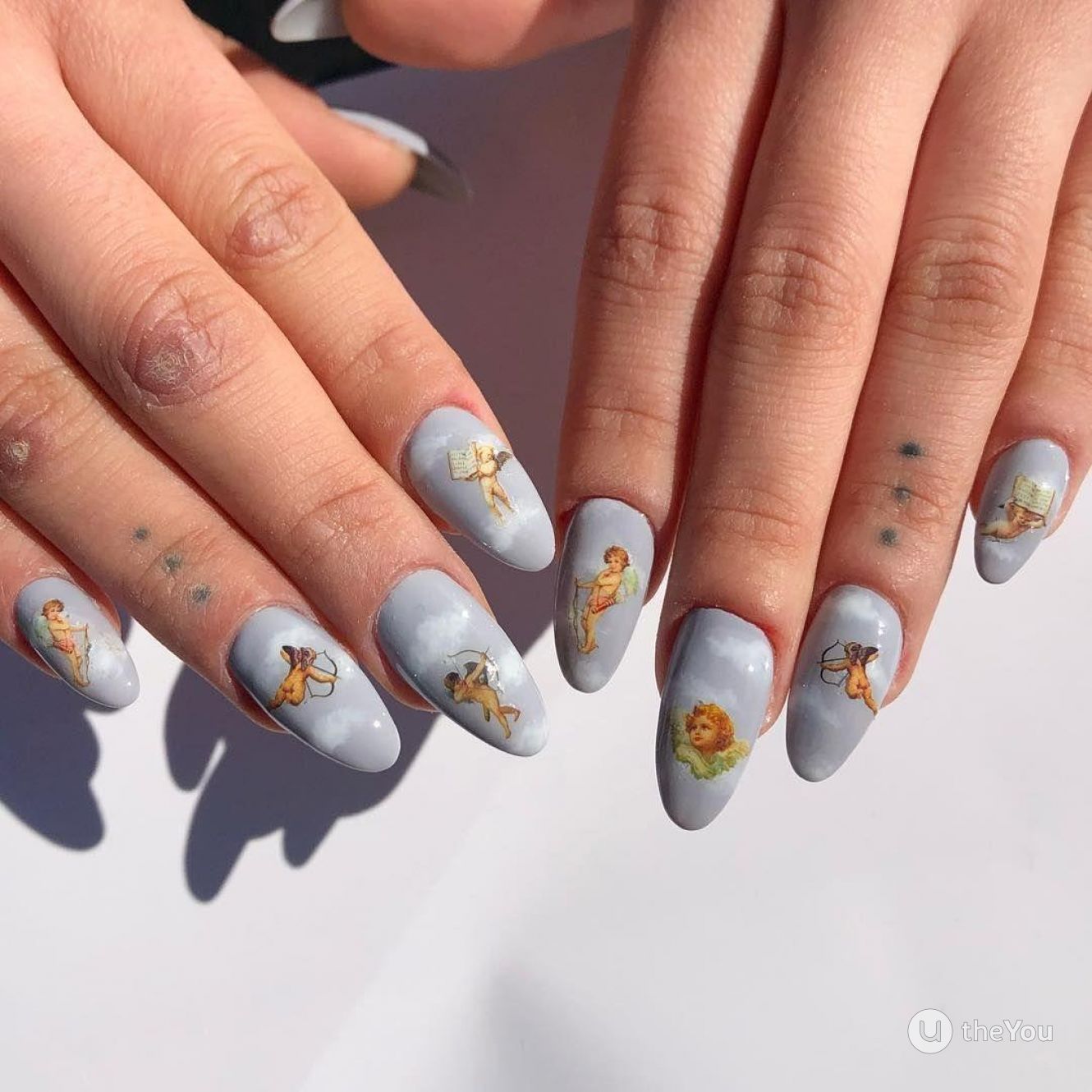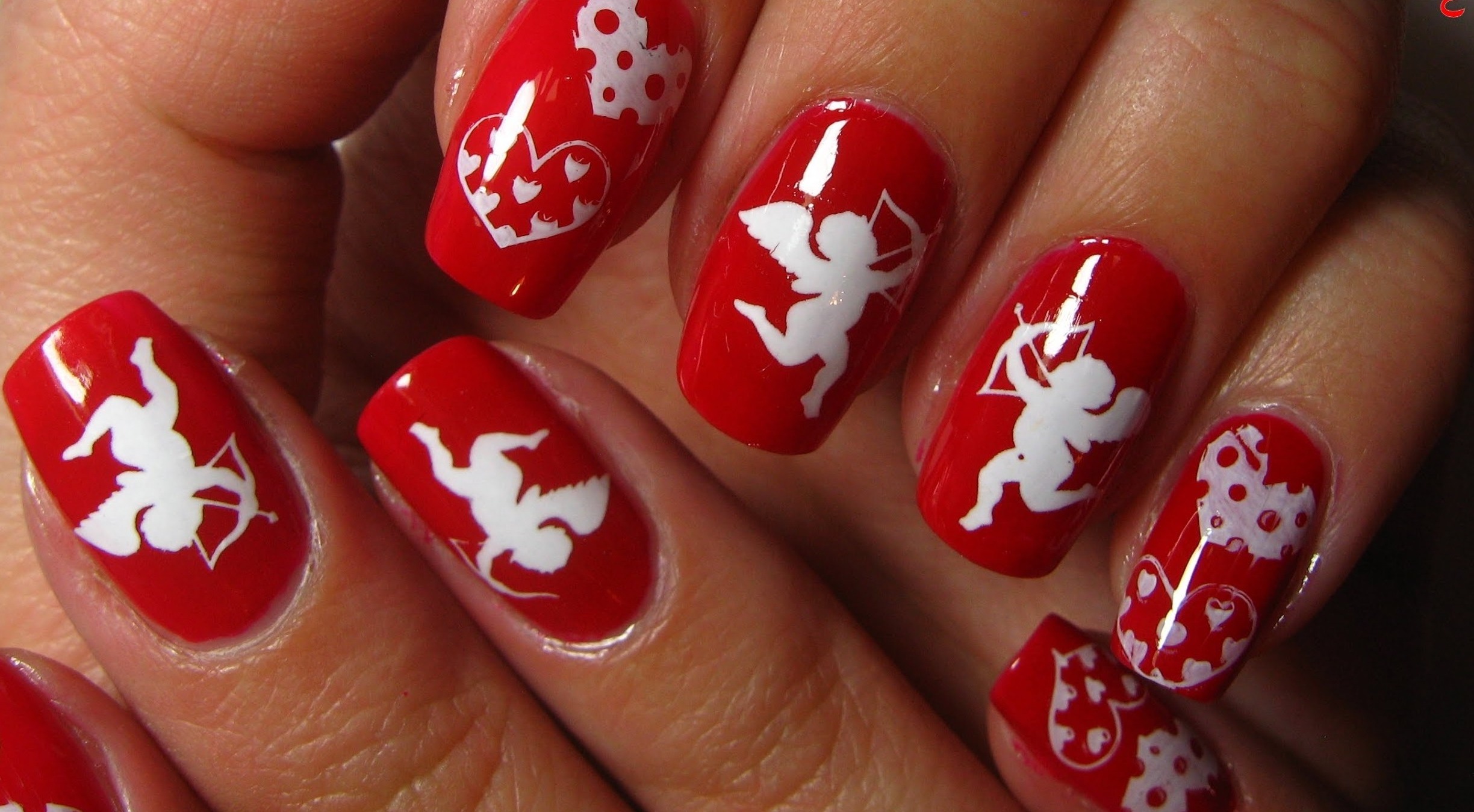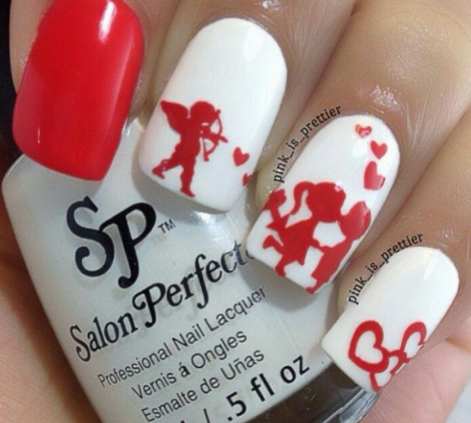 Купидон в мифологии — бог влечения, привязанности и влюбленности. Почему бы не поблагодарить этого маленького бога с луком и стрелами, нарисовав его 14 февраля на своих ноготках. Актуально добавить в нейл-арт облака, ангелов и забавные сюжеты.