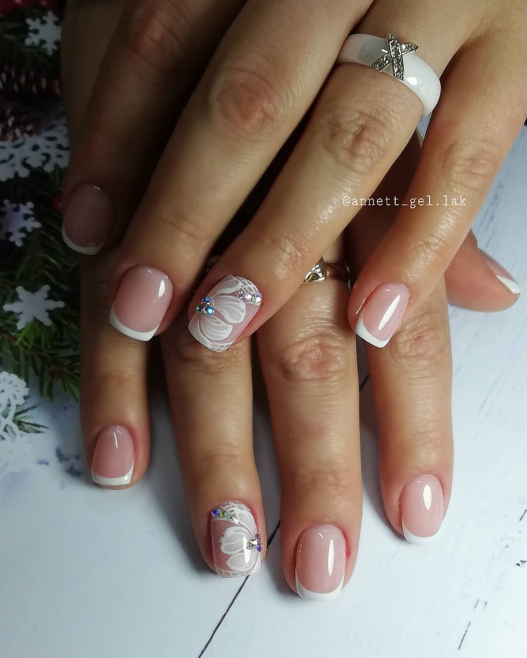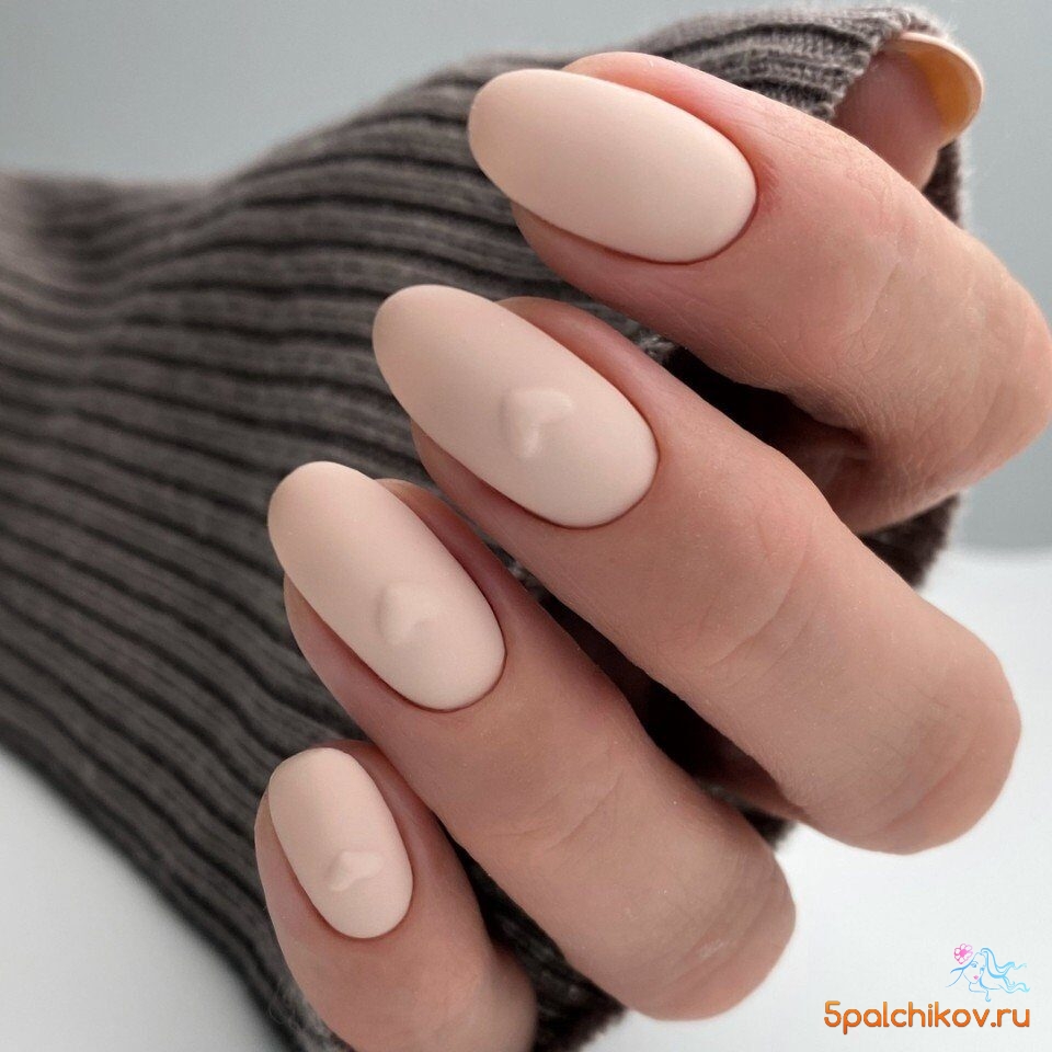 Ну и, конечно, классика, которая находится в трендах каждый сезон и праздник. Нежный и романтичный маникюр в нюдовых тонах покажет как нежно и трепетно девушка относится к своему избраннику.