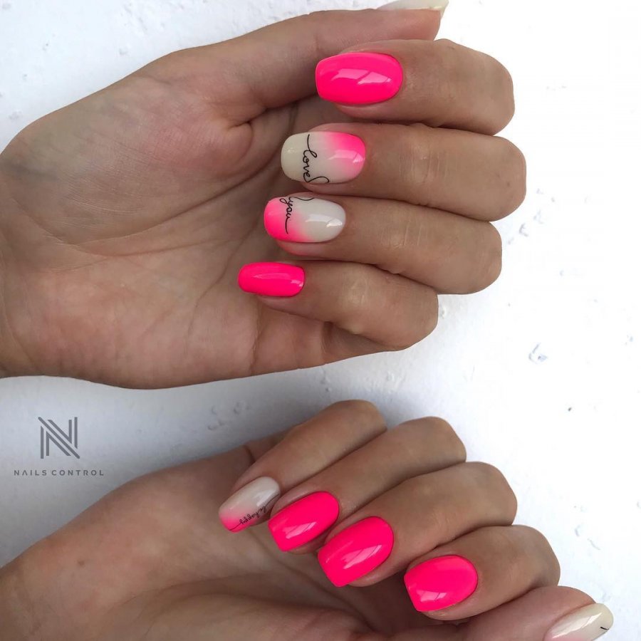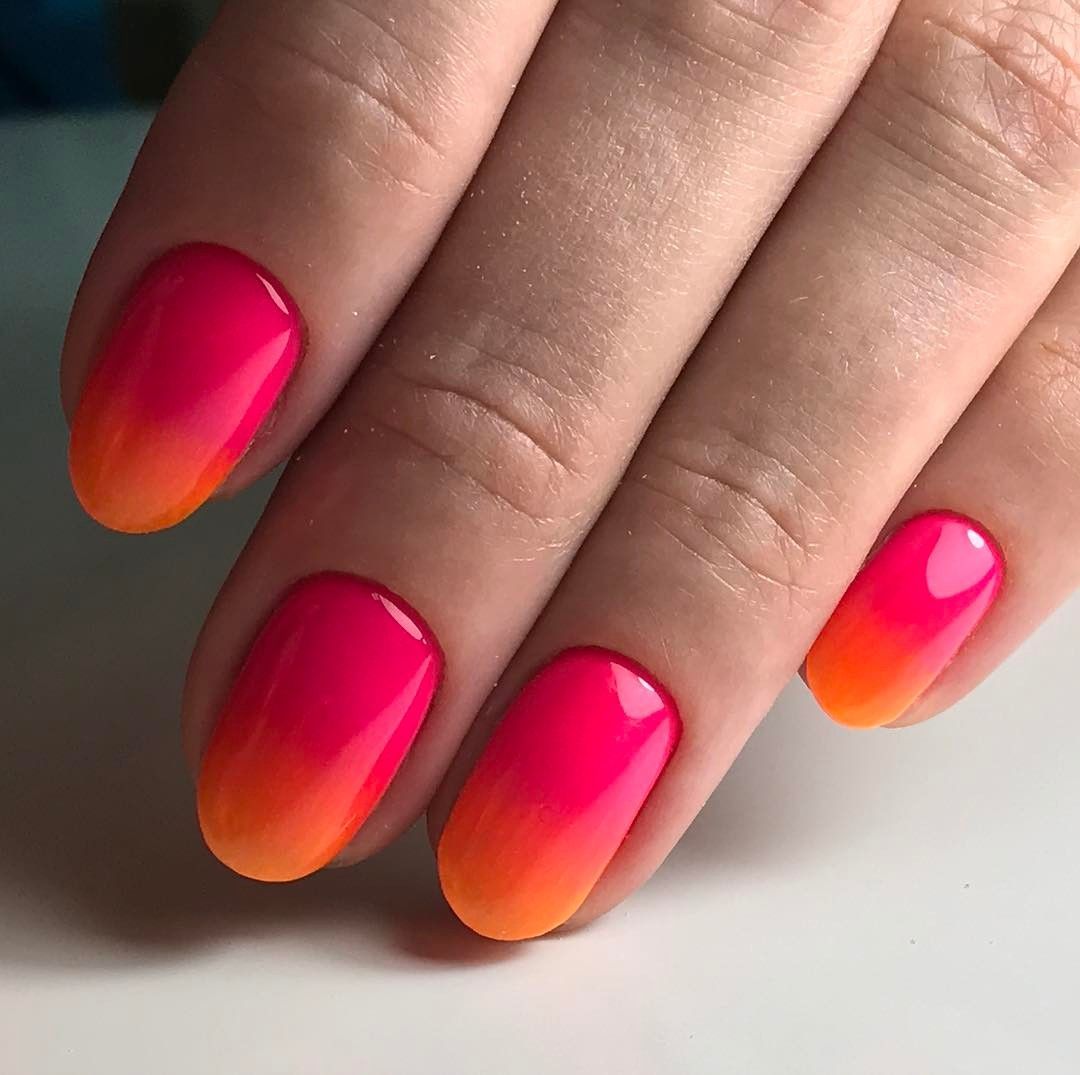 Эта техника словно создана для Дня всех Влюбленных. Плавные цветовые переходы словно символизируют чувства пары. Ведь отношения не бывают ровными всегда. На таком фоне мило будет смотреться единичное сердечко, оформленное блестками. Кстати, сердечко можно нарисовать или выложить из страз.