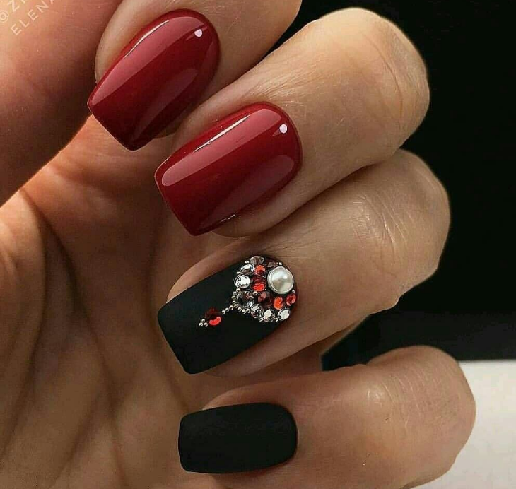 - геометрия. Если вы решите сделать геометрический рисунок, выбирайте красную палитру, добавив немного черного. остальные оттенки оставьте для маникюра в остальное время.