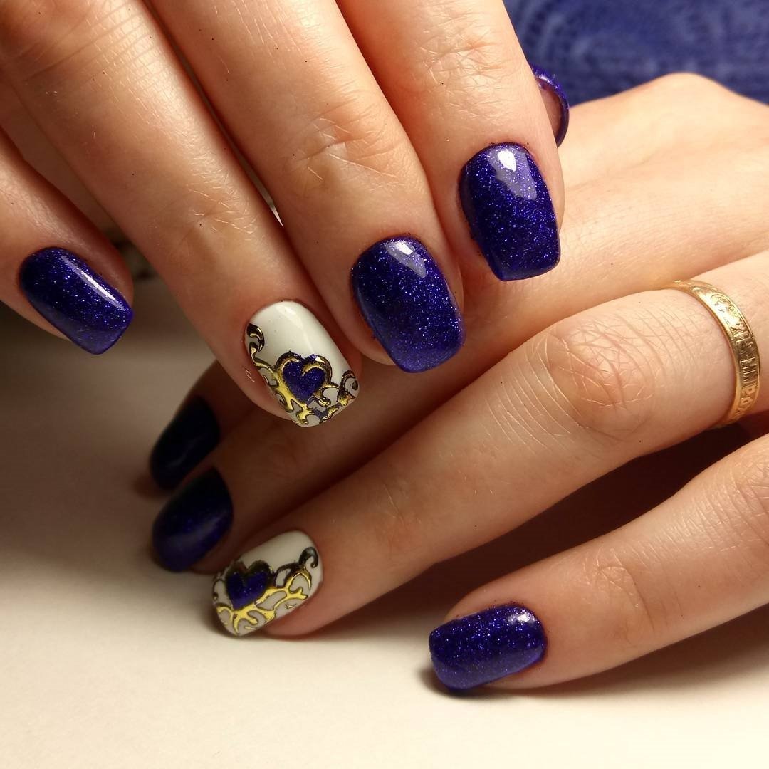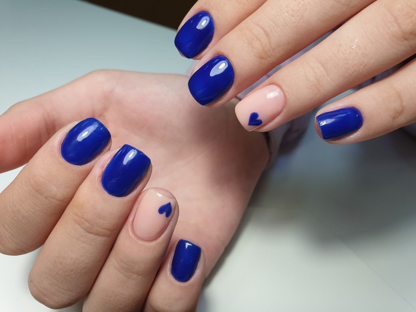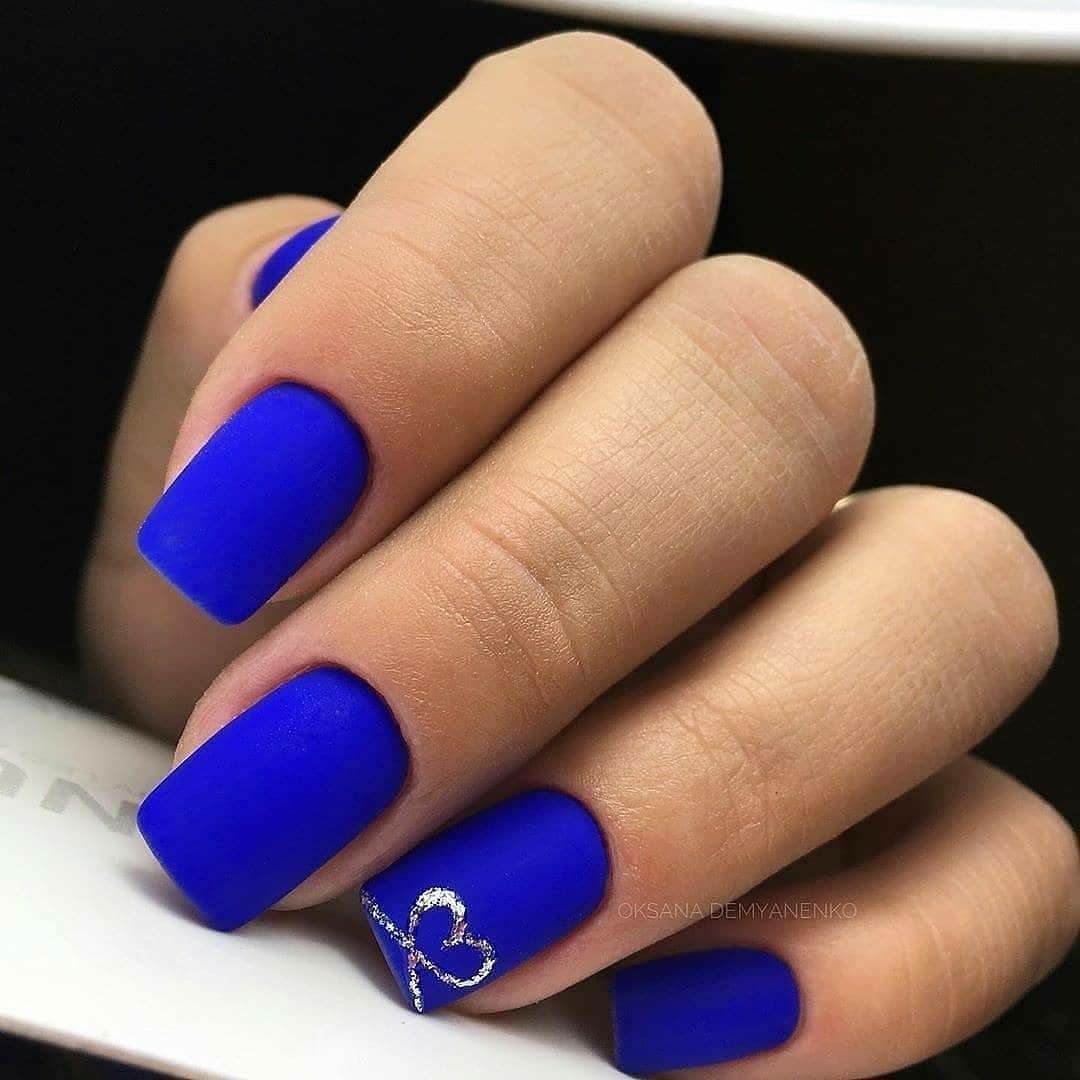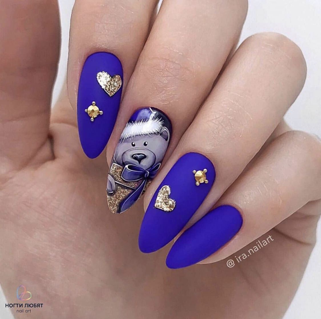 Не стоит забывать и о сочных оттенках синей палитры. Такие цвета больше подойдут взрослым и состоявшимся дамам. Эффектно смотрится на таких ногтях дизайн золотого оттенка.