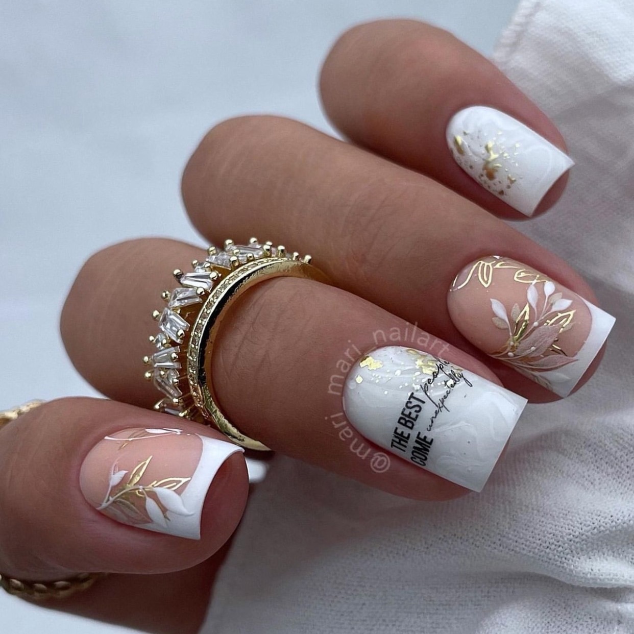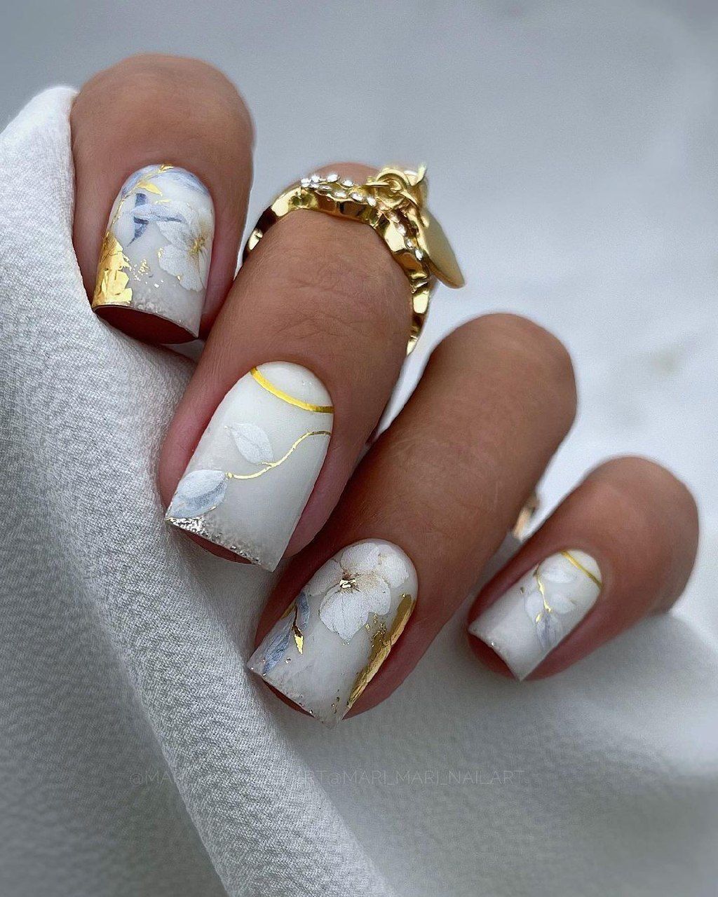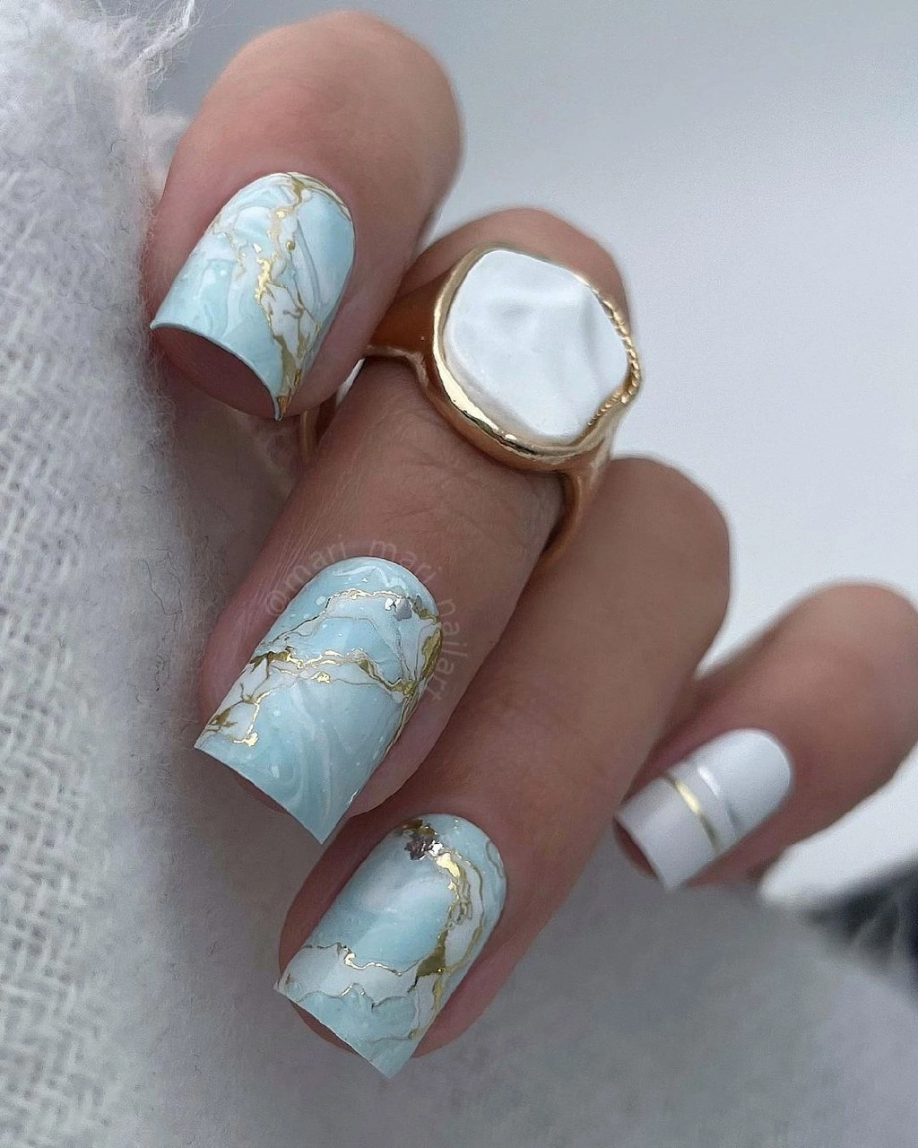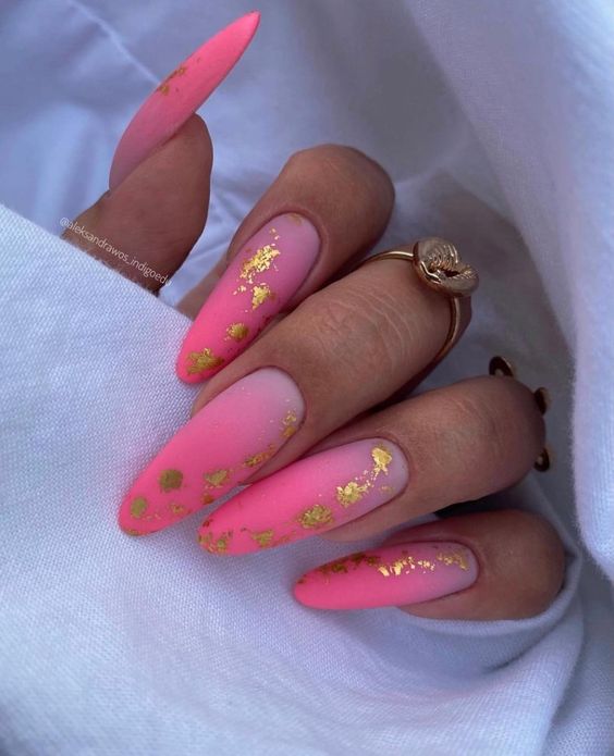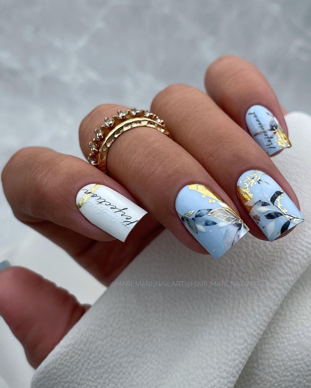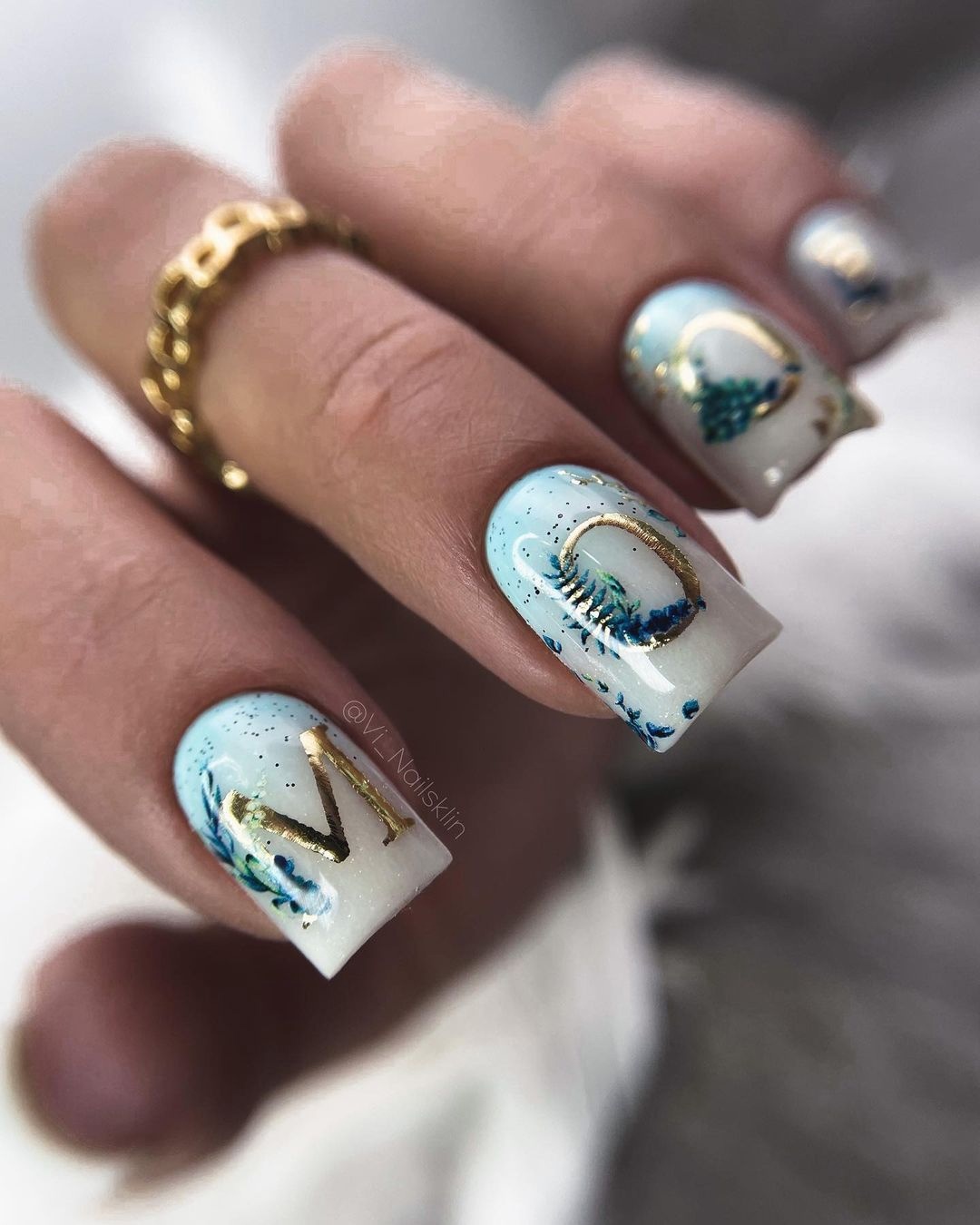 Если вам нужно добавить блестящий акцент стоит выбрать фольгу. Она может использоваться как подложка или как хаотичные акценты. Чем неаккуратнее будут разбросаны фольгированные кусочки на ногтях, тем интереснее и актуальнее.