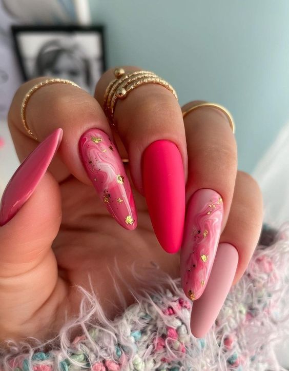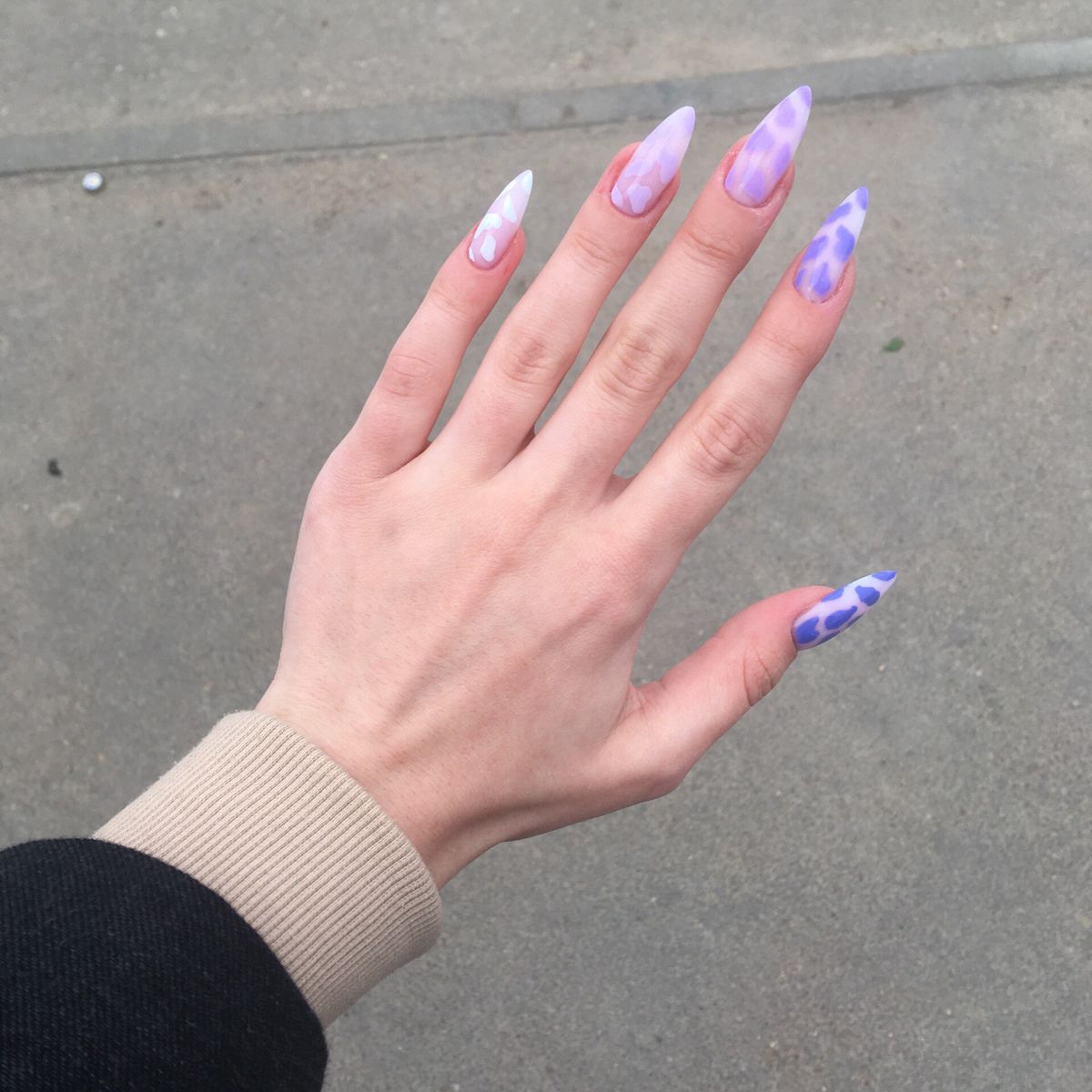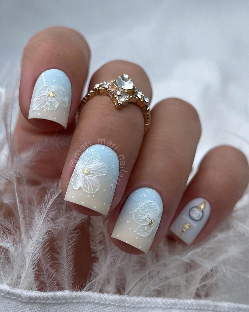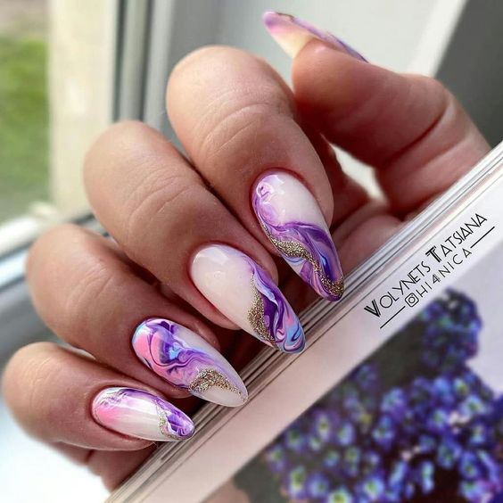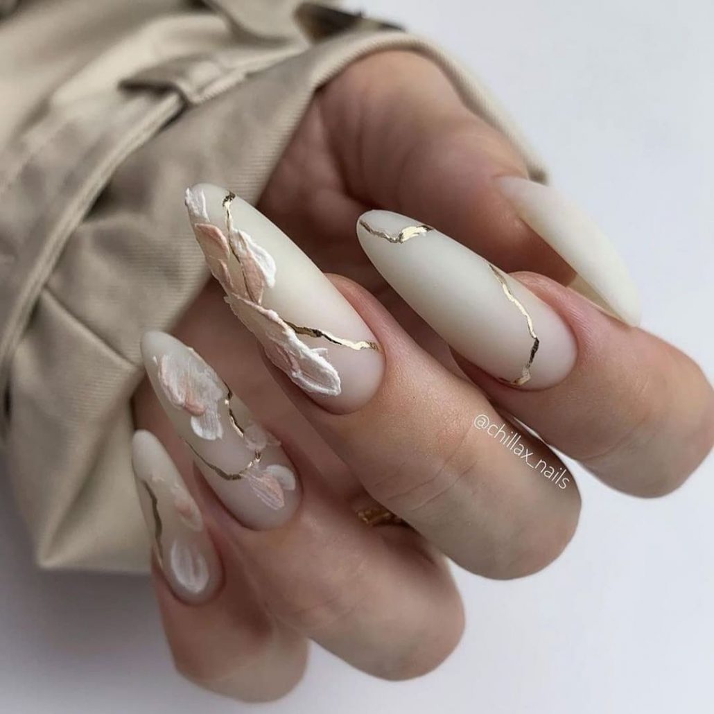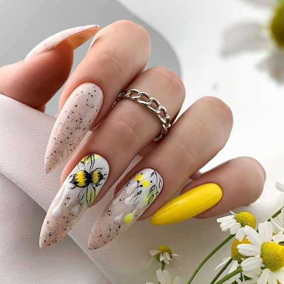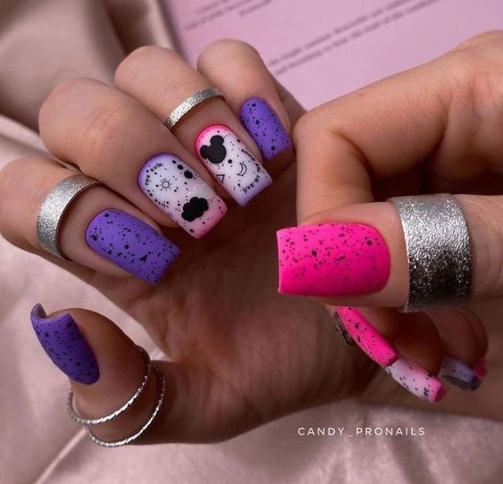 Эта текстура довольно долго была на пике популярности после появления в нейл-арте. Но затем наступила некоторая усталость и про нее забыли. В августе 2026 маникюр с эффектом перепелиного яйца вновь популярен. Но этим летом мы рекомендуем сочетать пятнистую фактуру, например, с матовой поверхностью или рисунками.