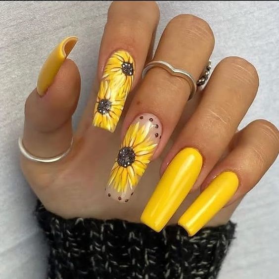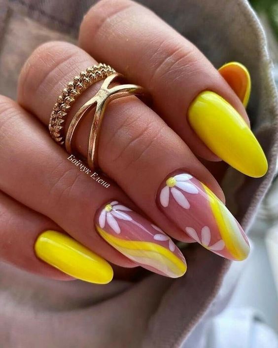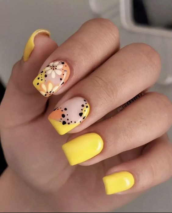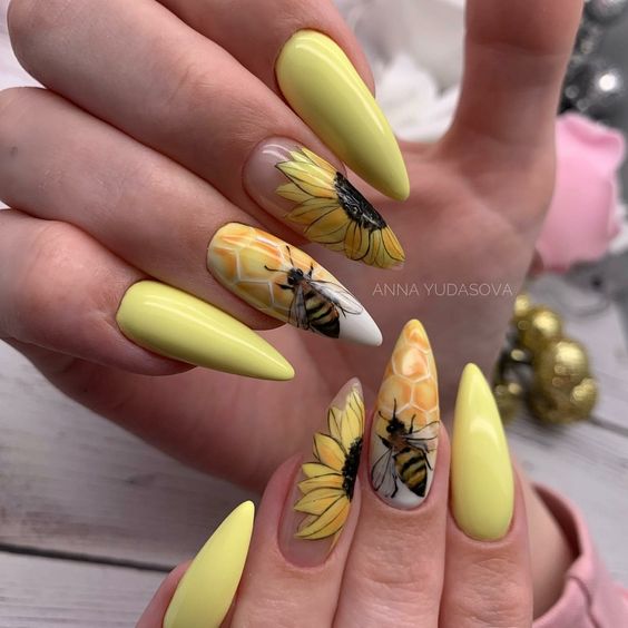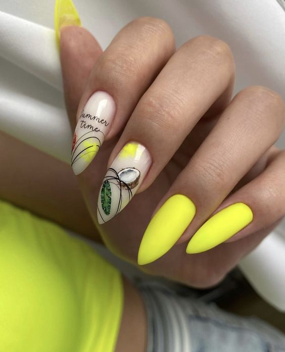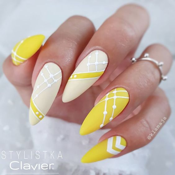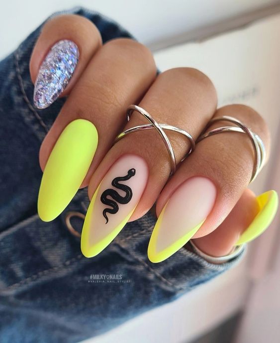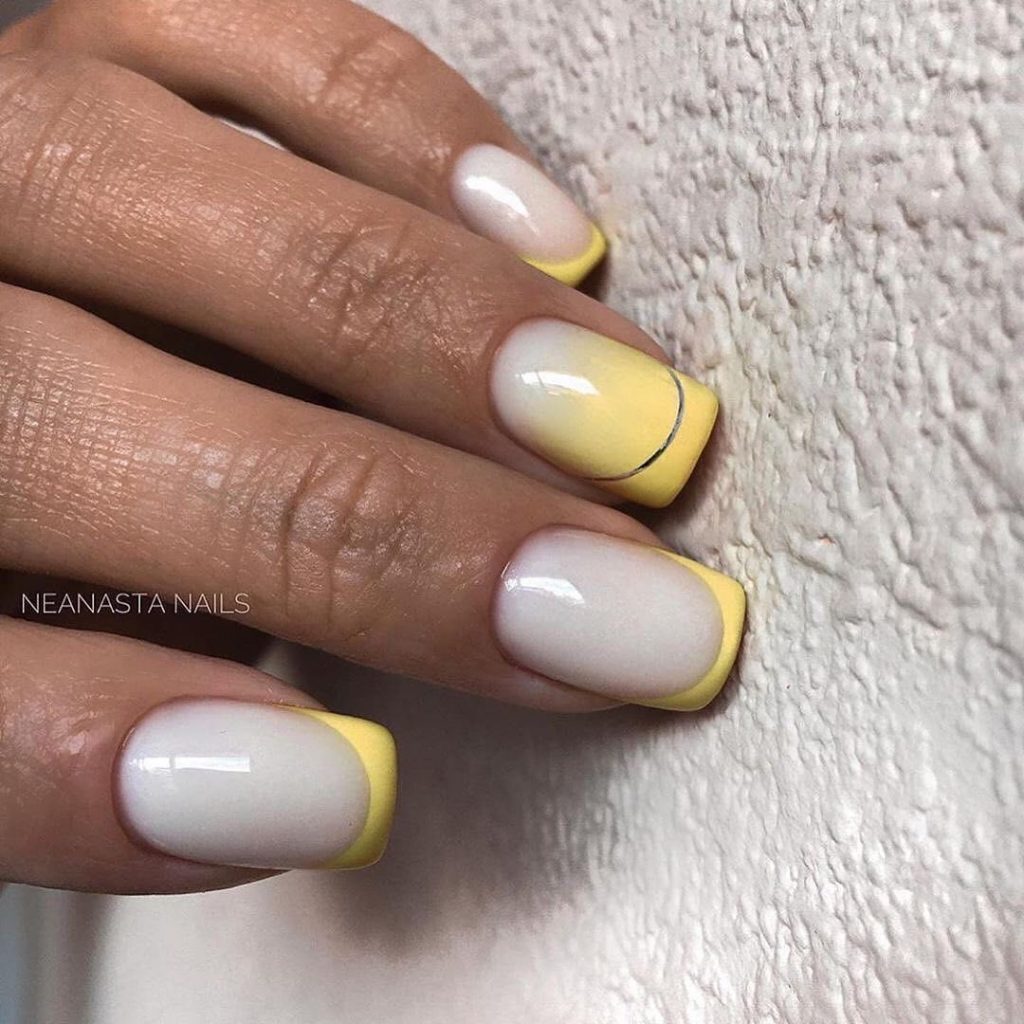 Наберитесь смелости сделать маникюр солнечно-желтого цвета. Это очень жизнерадостный оттенок, но многие модницы наверняка ни разу не «носили» на ногтях. Все дело в его активности, которая многих смущает. Пока тренд актуален, самое время решиться. У вас есть на выбор несколько вариантов — покройте ногти желтым в один тон или используйте его в качестве фона для дизайна (например, графичного).
