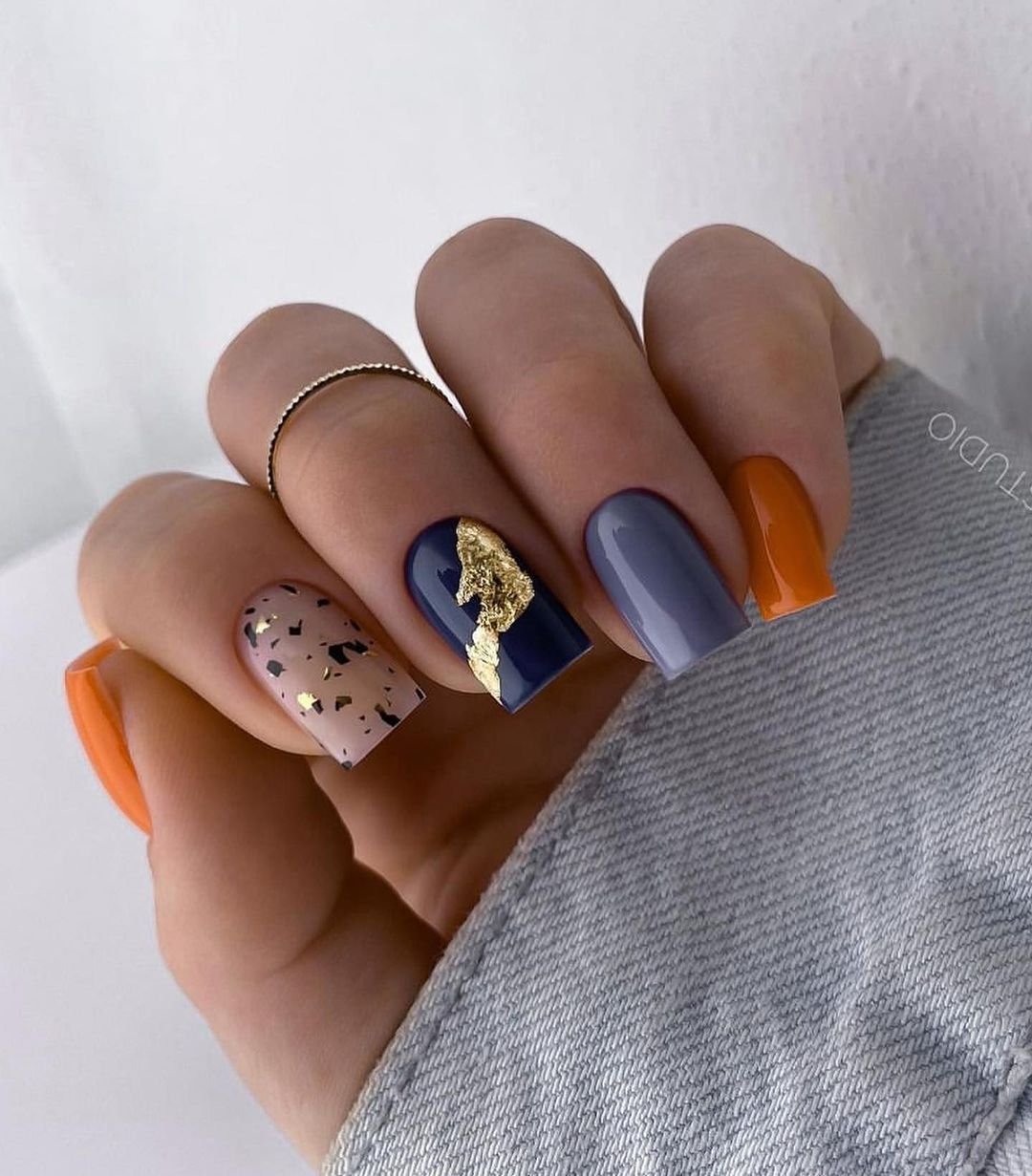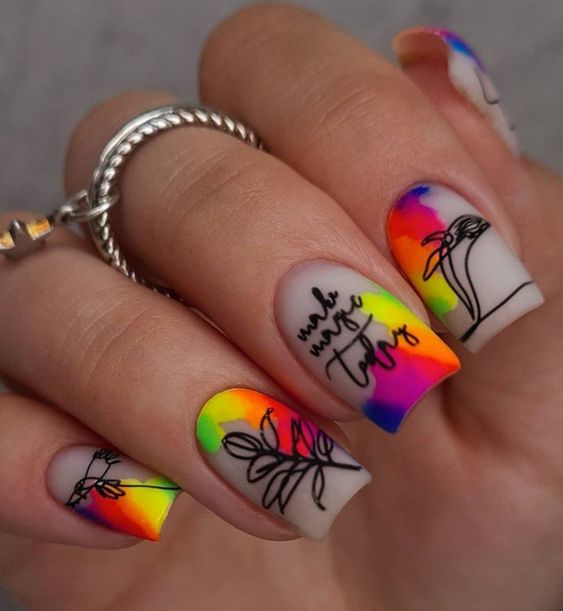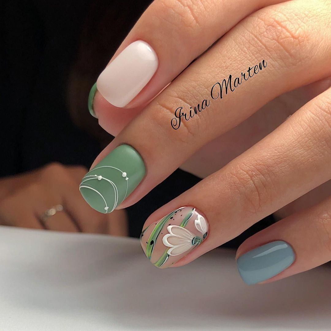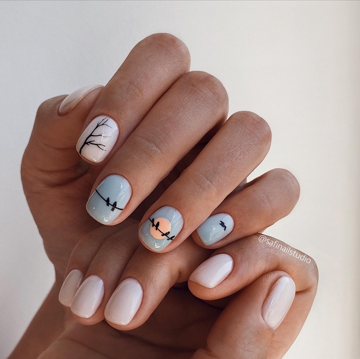 - Августовский маникюр на разную длину ногтей