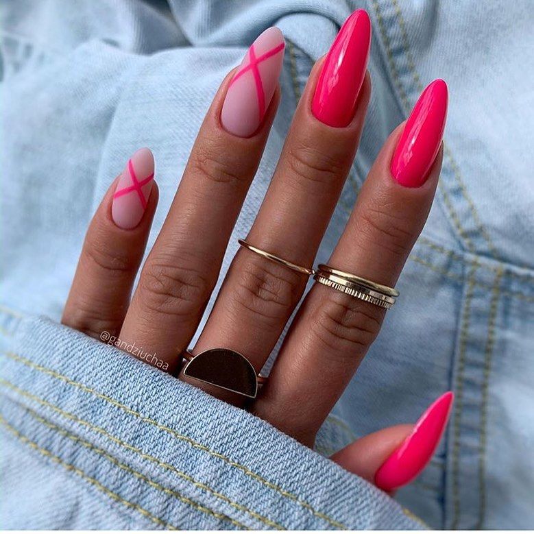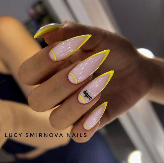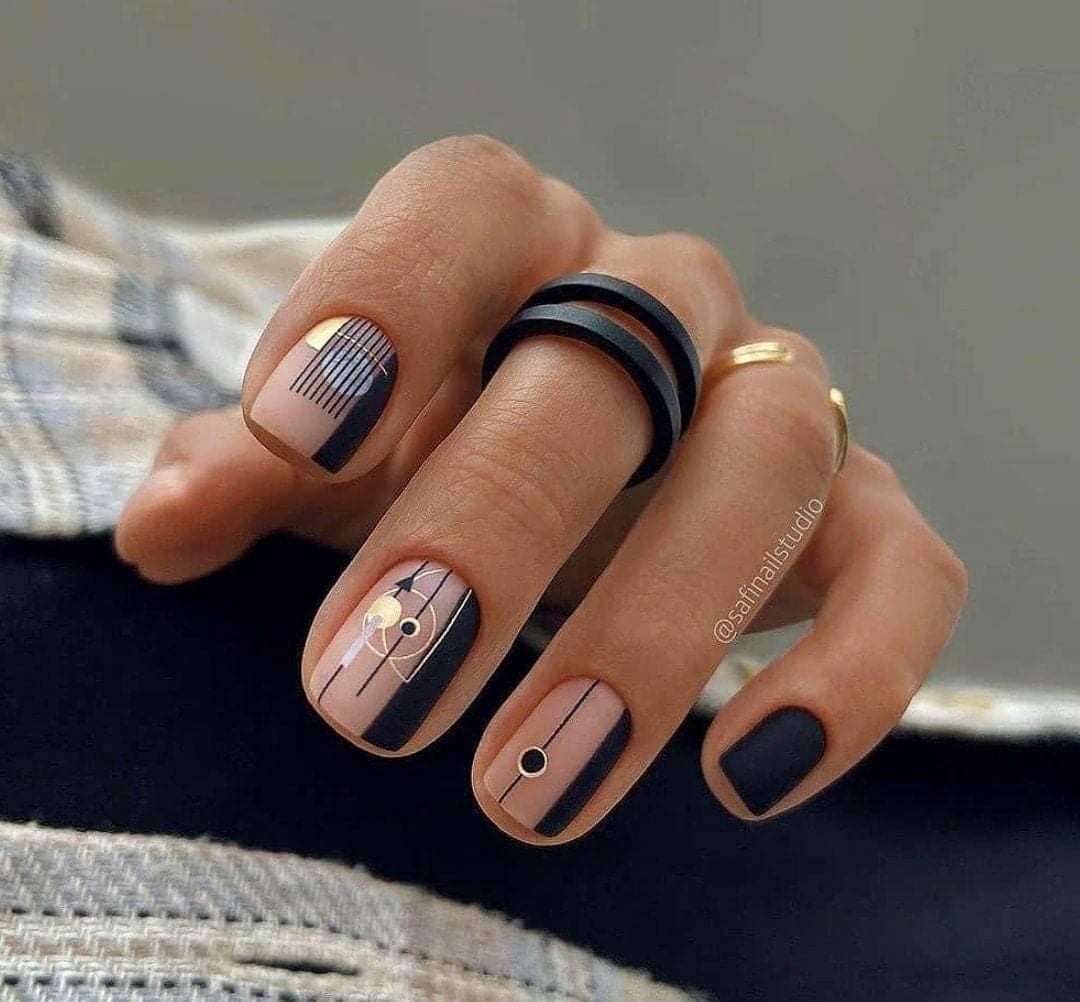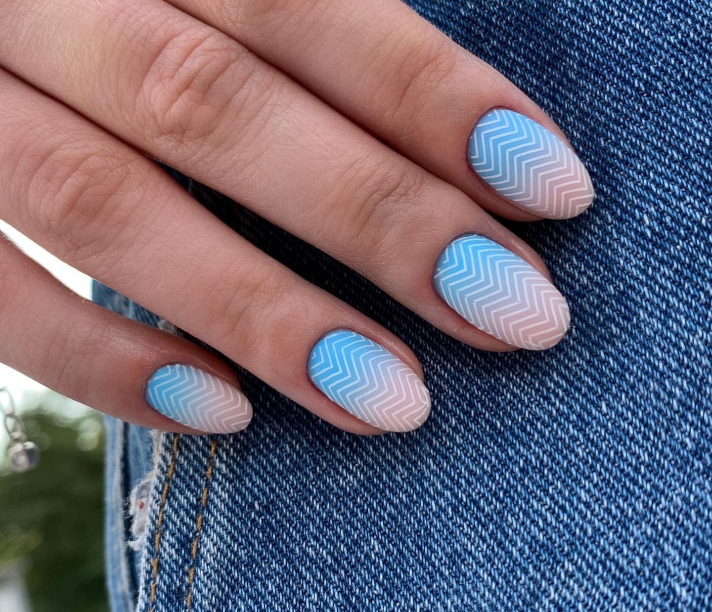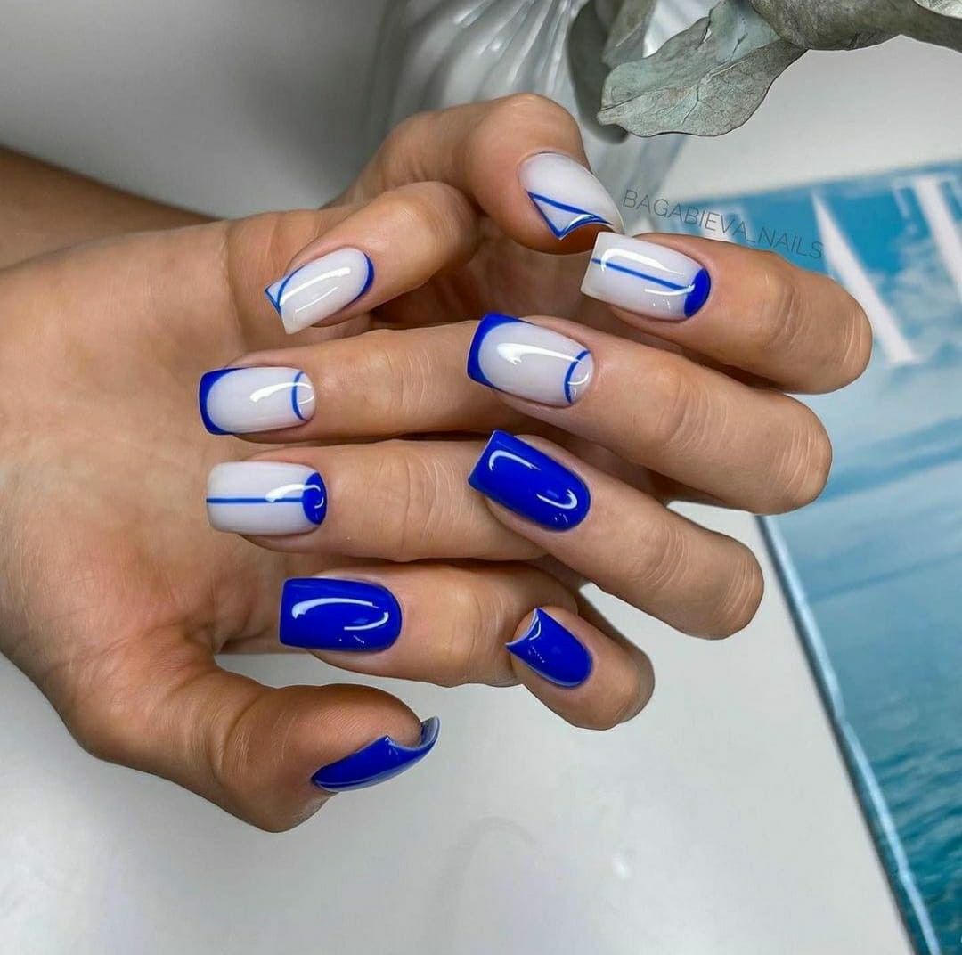 Мы уже отмечали, что графичные рисунки — топовая идея для маникюра в августе. В это сезоне особенно актуальны дизайны с полосками разной длины, толщины и формы. Они могут быть однотонными или разноцветными.