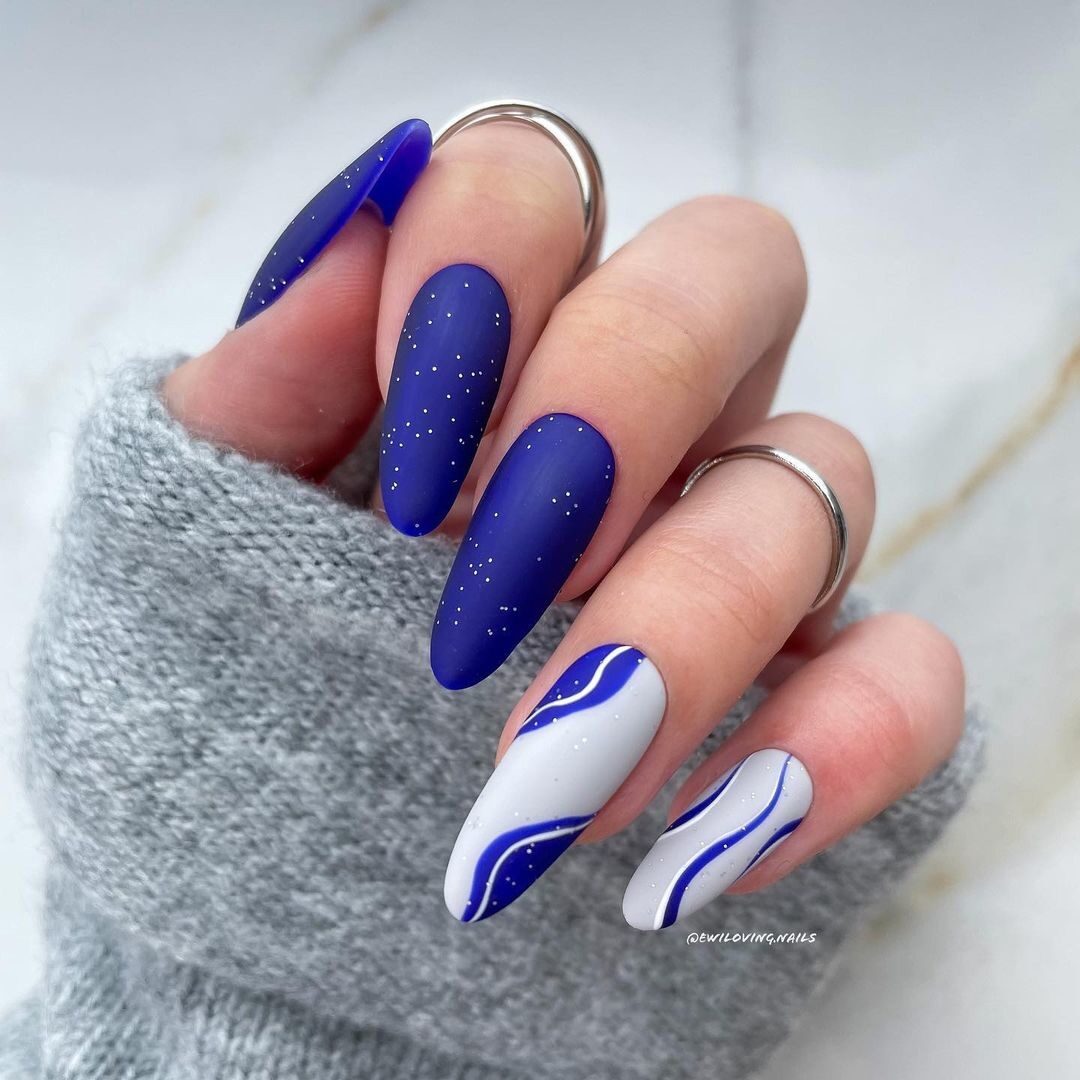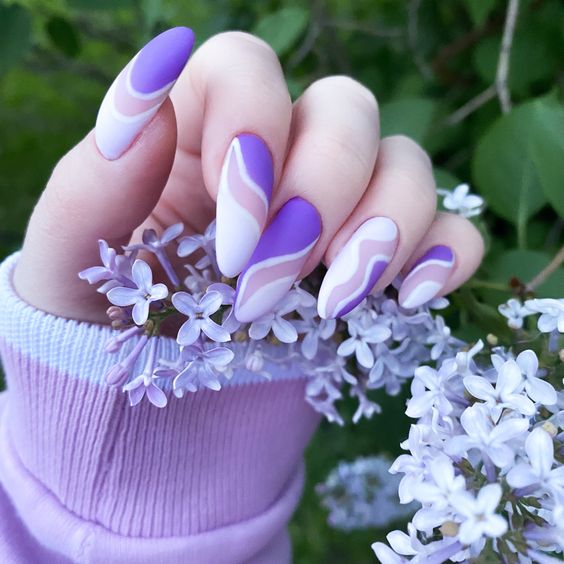 - маникюр с волнами. Волнистый дизайн — must have лета. Это простой и очень эффектный вариант. который сделает ногти стильными, а образ законченным. Стиль нанесения волнистых линий может быть любым, но самым интересным представляются волны, которые мастер наносит широкой плоской кистью. Это оптимальный вариант дизайна на август;