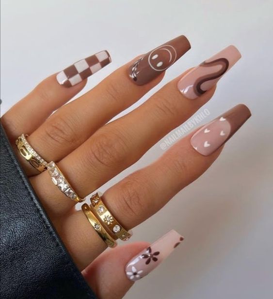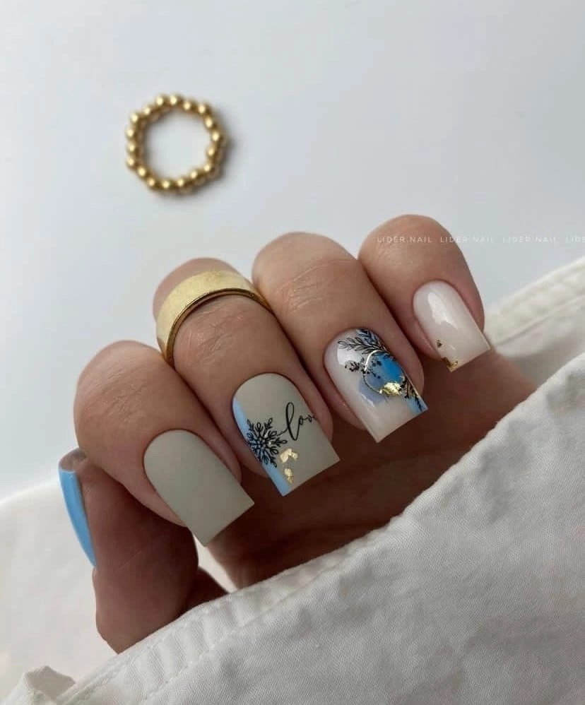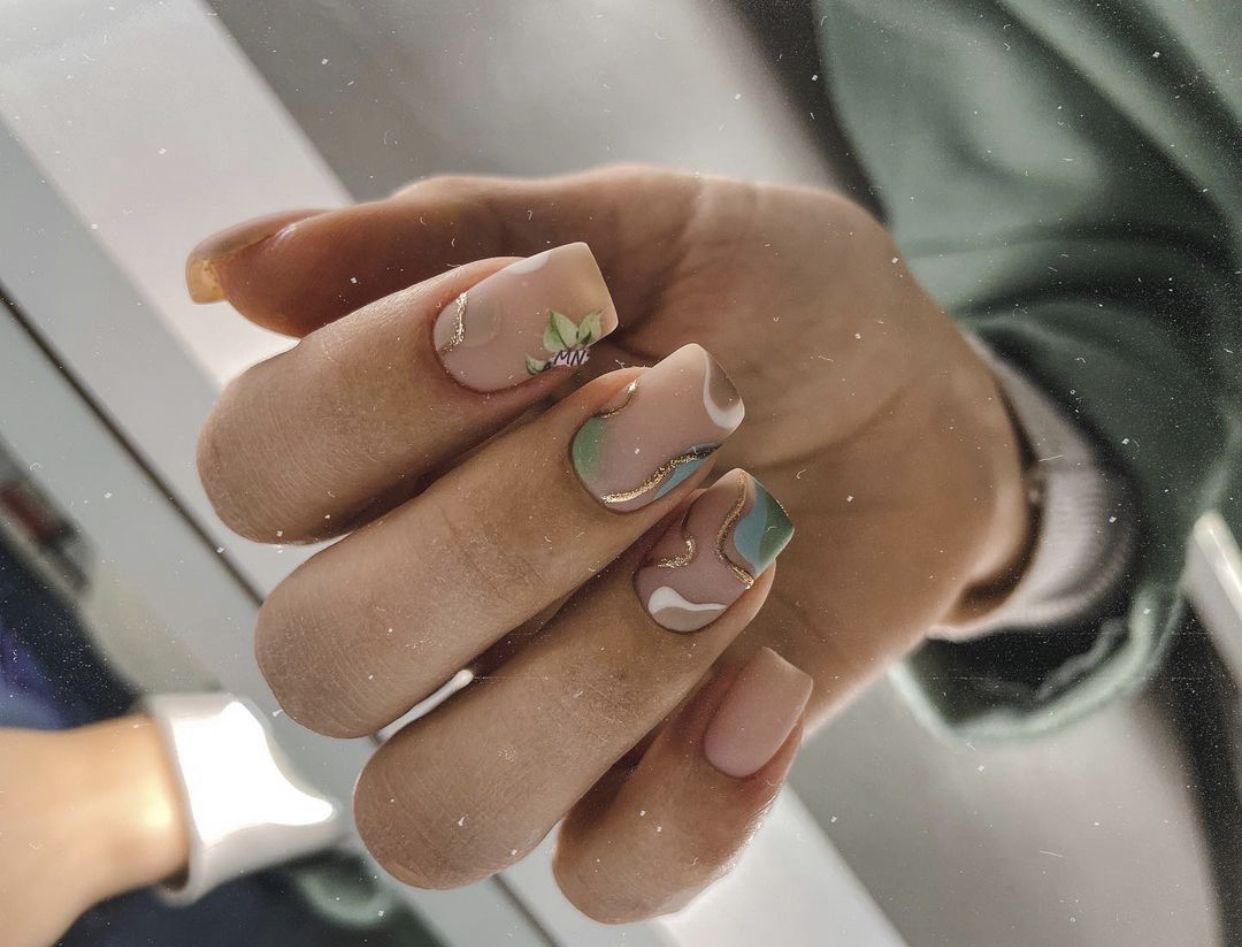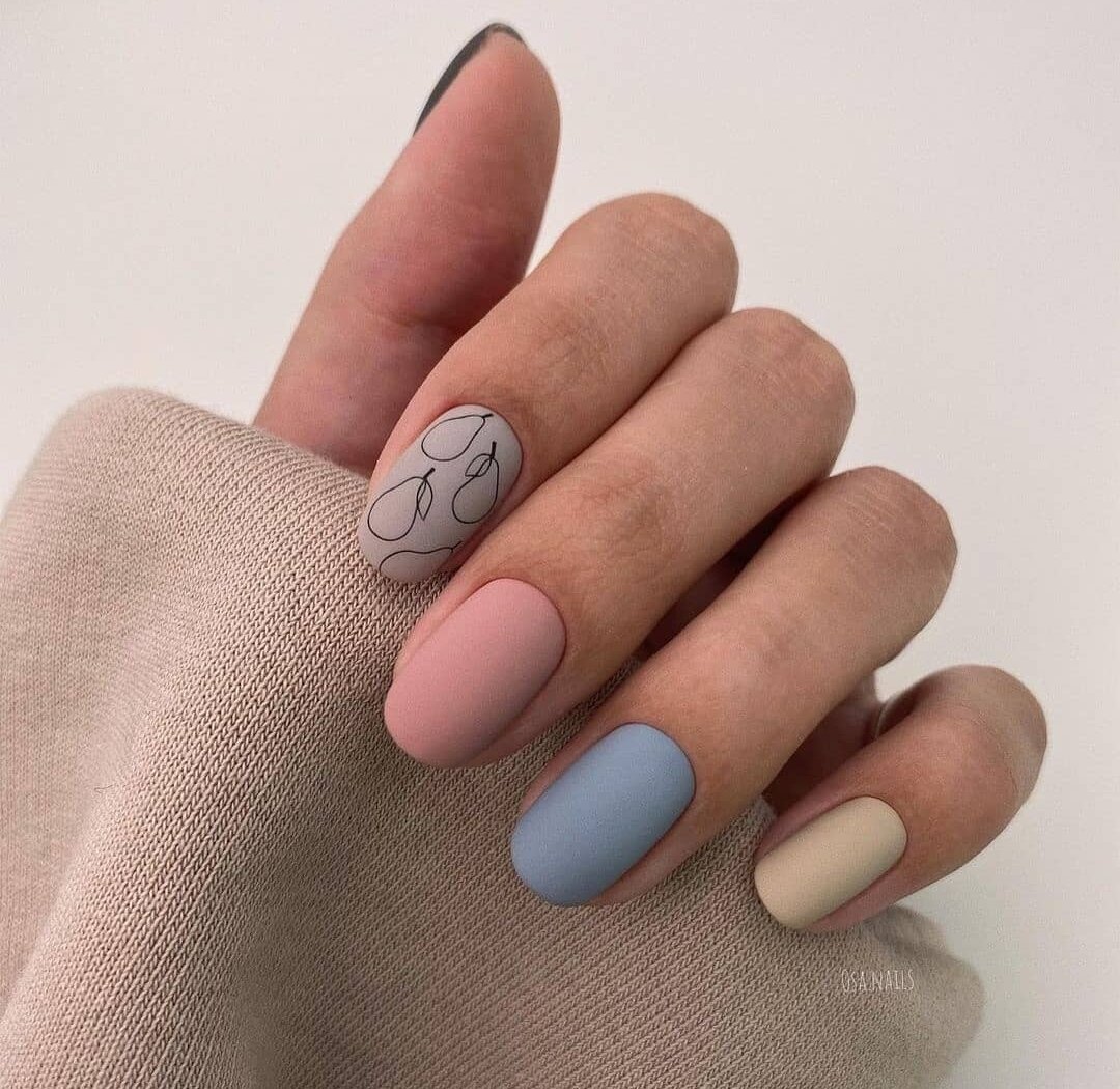 Августовский маникюр на разную длину ногтей