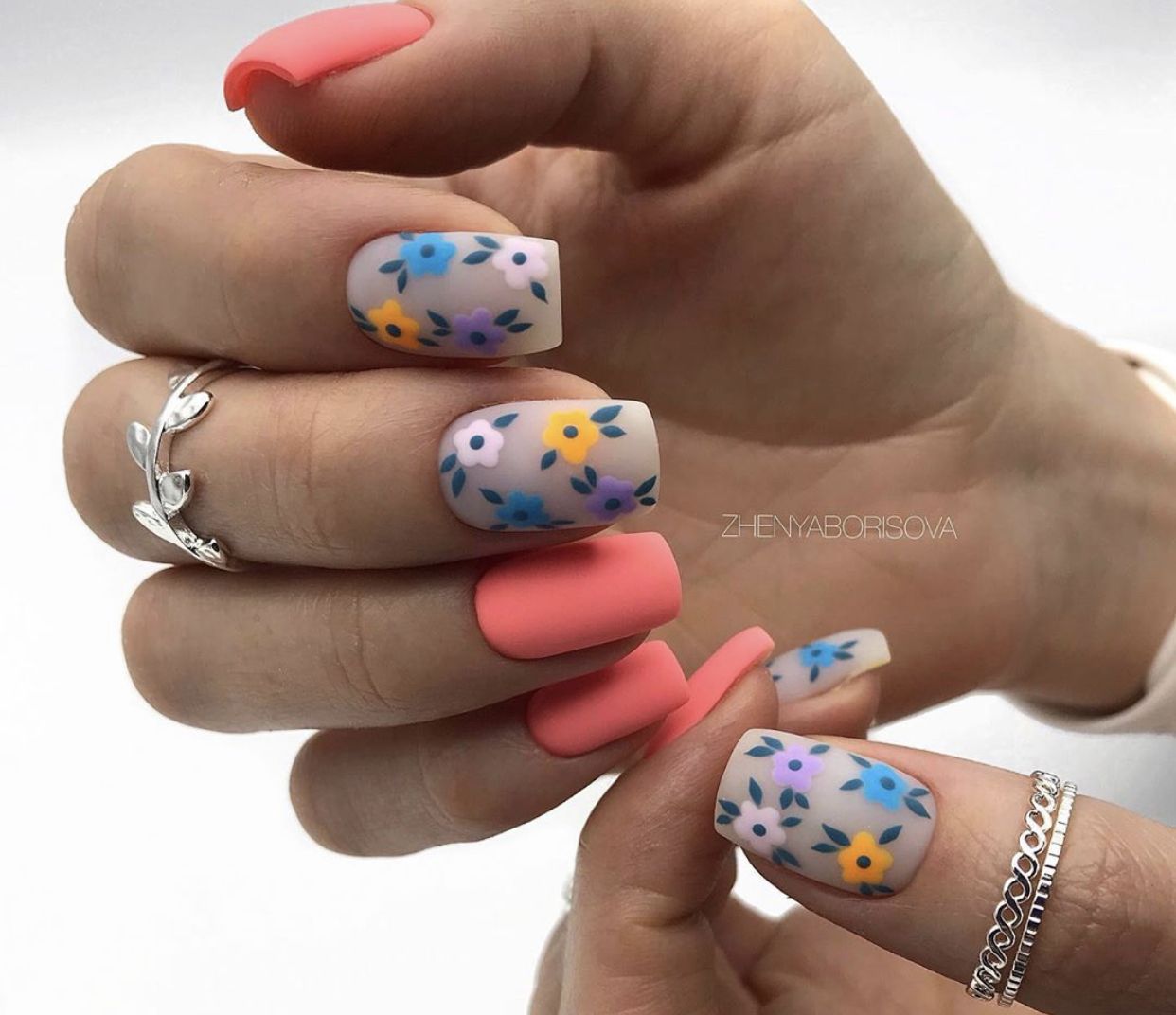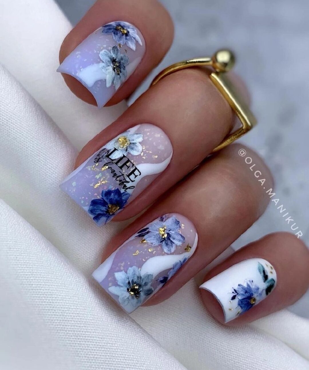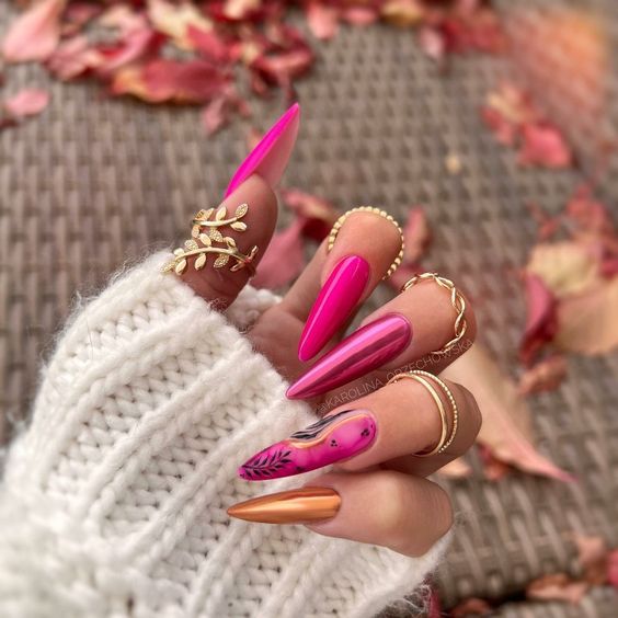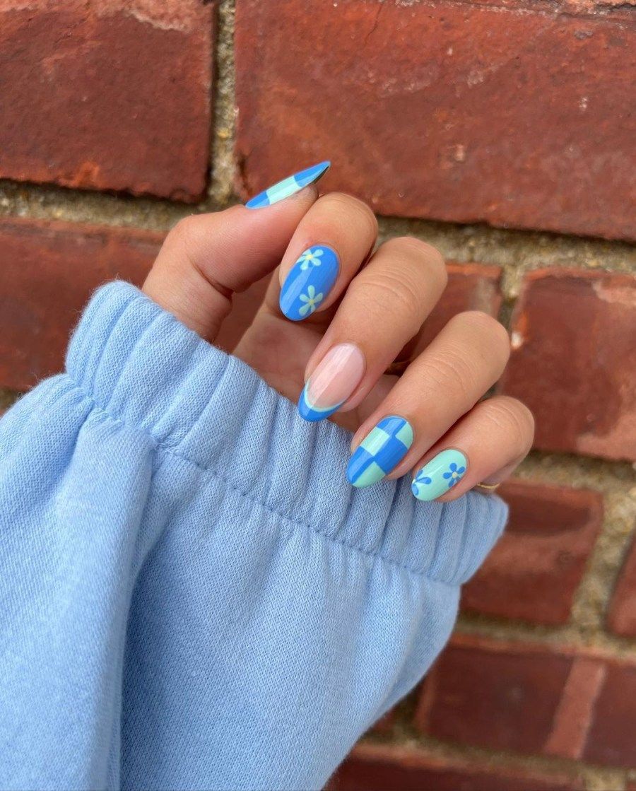 Августовский маникюр на разную длину ногтей