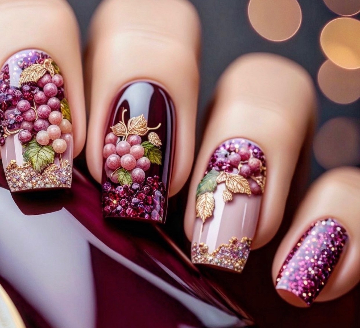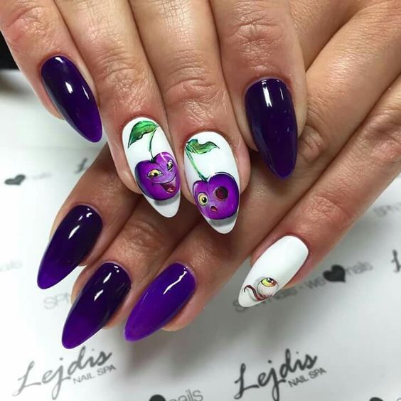 Бархатная текстура любой дизайн делает лучше. Особенно эффектно такой дизайн смотрится с рисунками. Например, матовая молочная основа и яркие рисунки ягод, фруктов, цветов или насекомых.