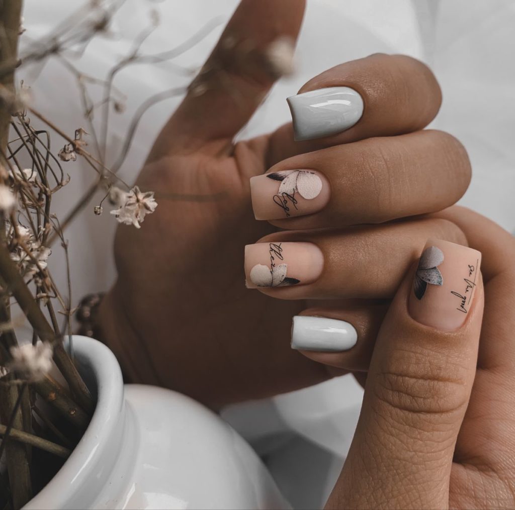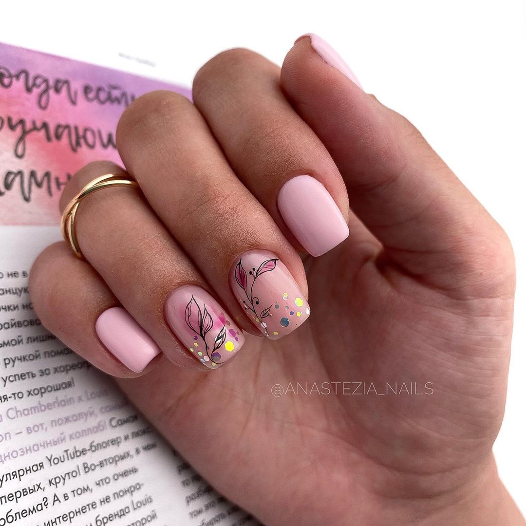 Это не значит, что нужно отказаться от других привычных техник украшения ногтей в августе. Например, актуальным остается однотонный маникюр, в том числе и в матовом исполнении. Для августа стоит выбрать пастельные оттенки. Кроме того, в лидерах остается и цветочный маникюр. Но для короткой длины мы рекомендуем отдать предпочтение мелким рисунками типа виньеток или нежных веточек.