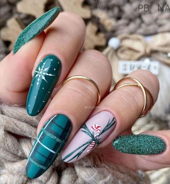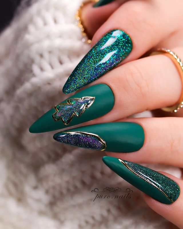 - зеленый. В декабре рекомендуем использовать для маникюра два оттенка — болотный и изумрудный. Оба этих цвета составят удачную пару с желтым, горчичным, синим и серебристым;