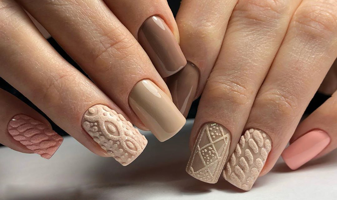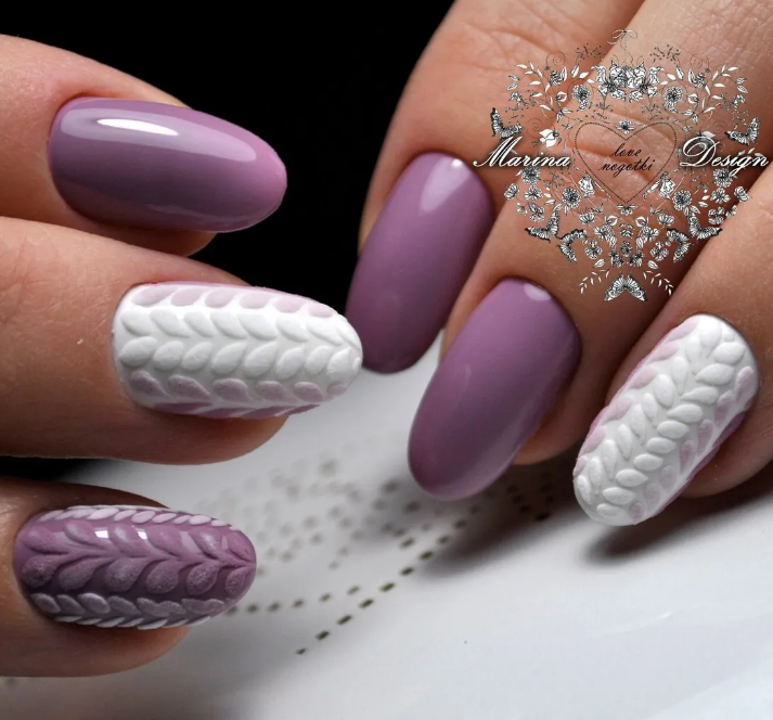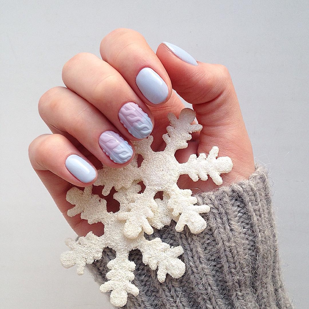 Когда еще, как не в декабре, создавать «теплое» покрытие на ногтях. Вязаная текстура появилась сравнительно недавно, но уже успела завоевать любовь модниц по всему миру. Сделать такой дизайн можно с помощью наклеек или 3д технологии. Последний вариант более предпочтителен, поскольку выглядит более уместно в холодном декабре.
