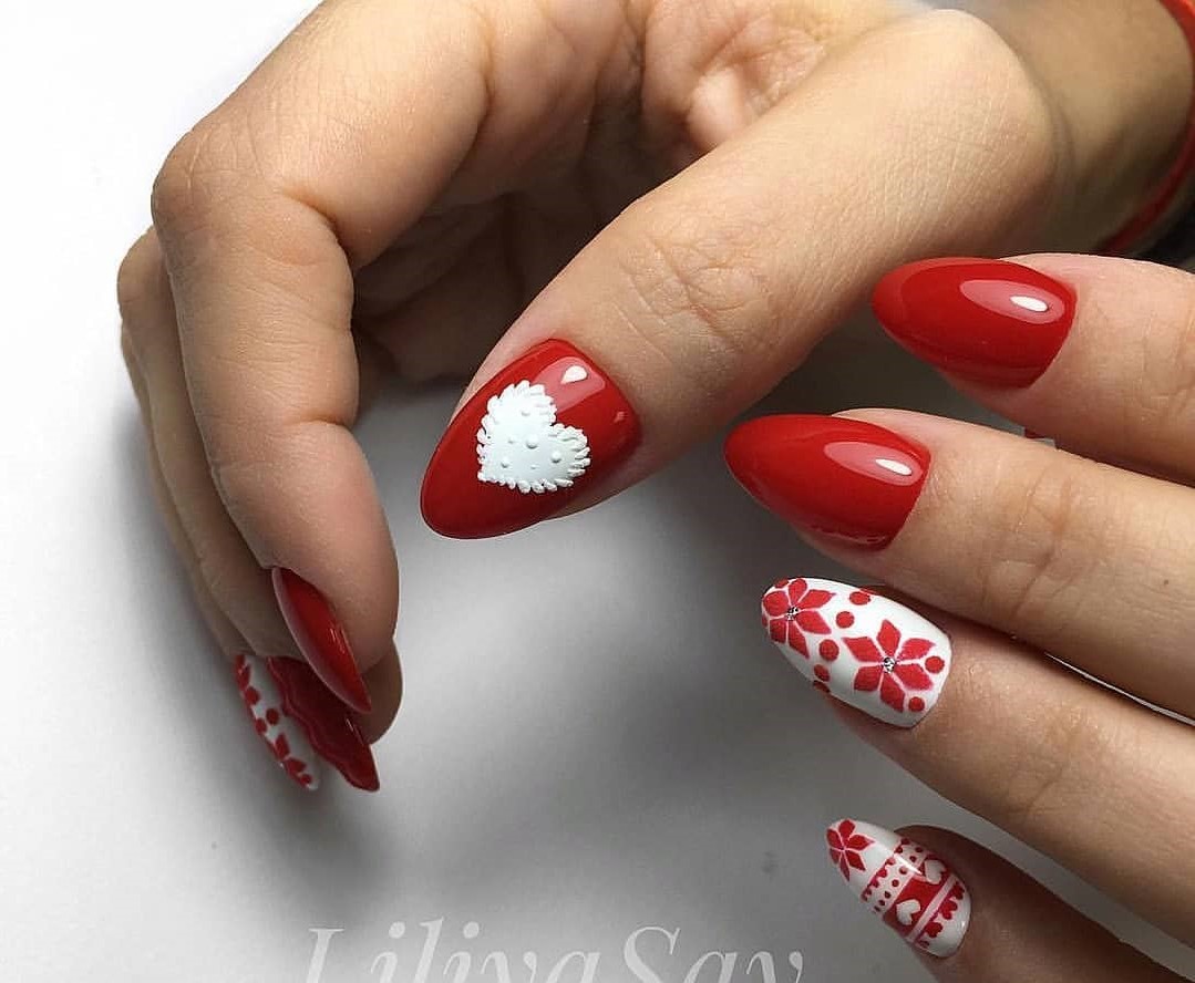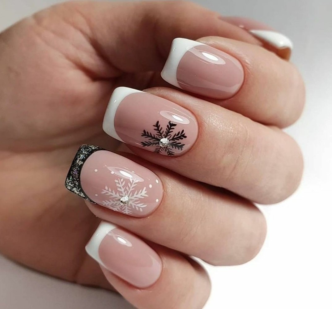 Не стоит говорить о том, что классические цвета так же можно использовать для создания маникюра в декабре — белый, черный,нюдовый, красный, розовый и другие привычные оттенки. Используйте их как базу, сделав активный цветовой акцент и ваши руки будут привлекать всеобщее внимание.