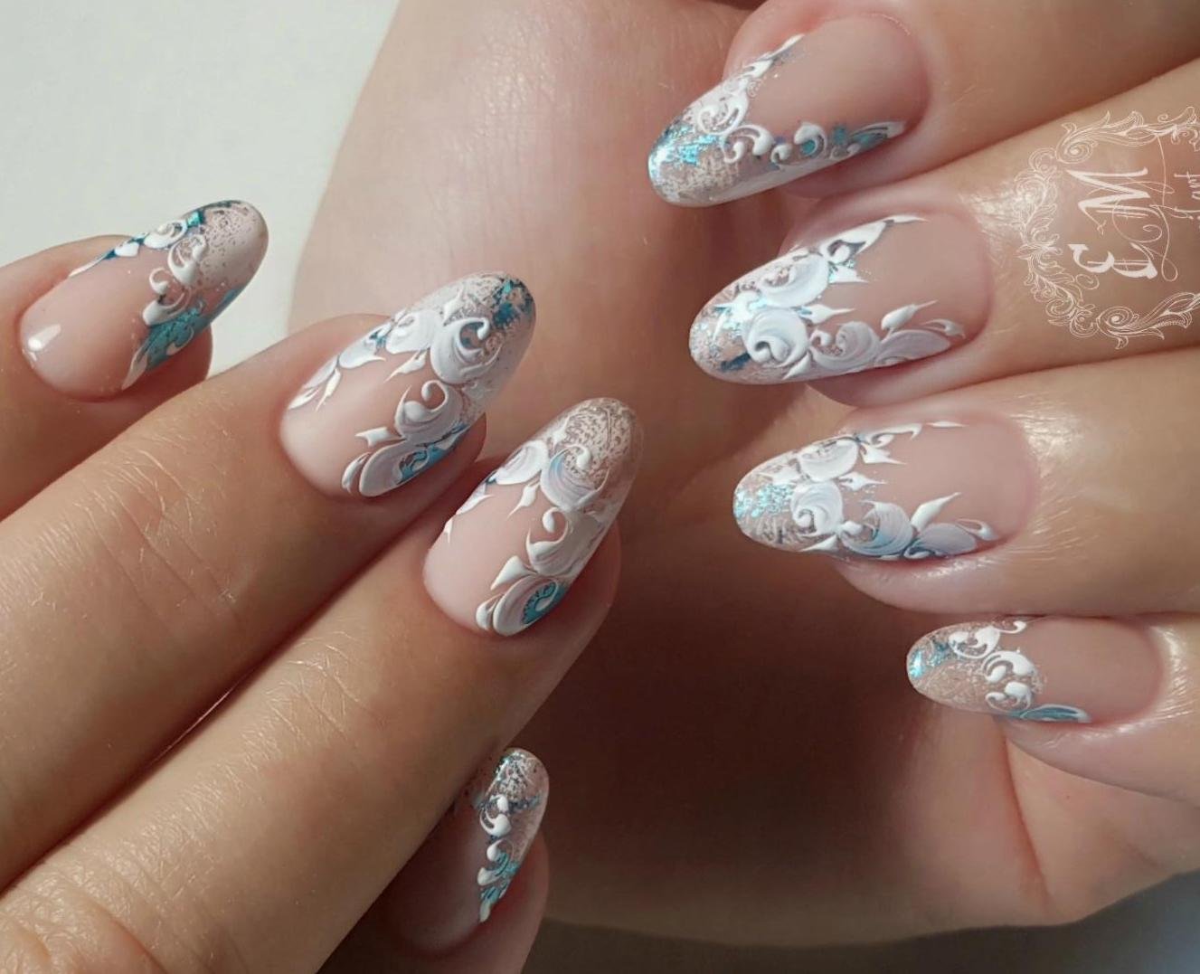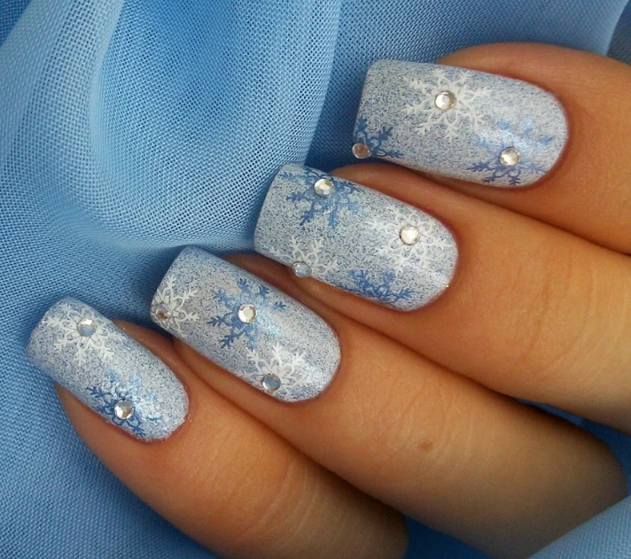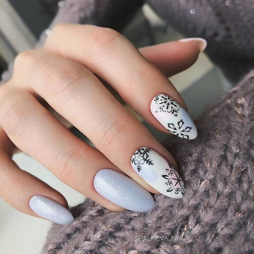 - морозные узоры. На современных окнах даже в декабре или январе, мы практически не видим узоры, которые рисует мороз. Так почему бы не создать их самостоятельно на ногтях;