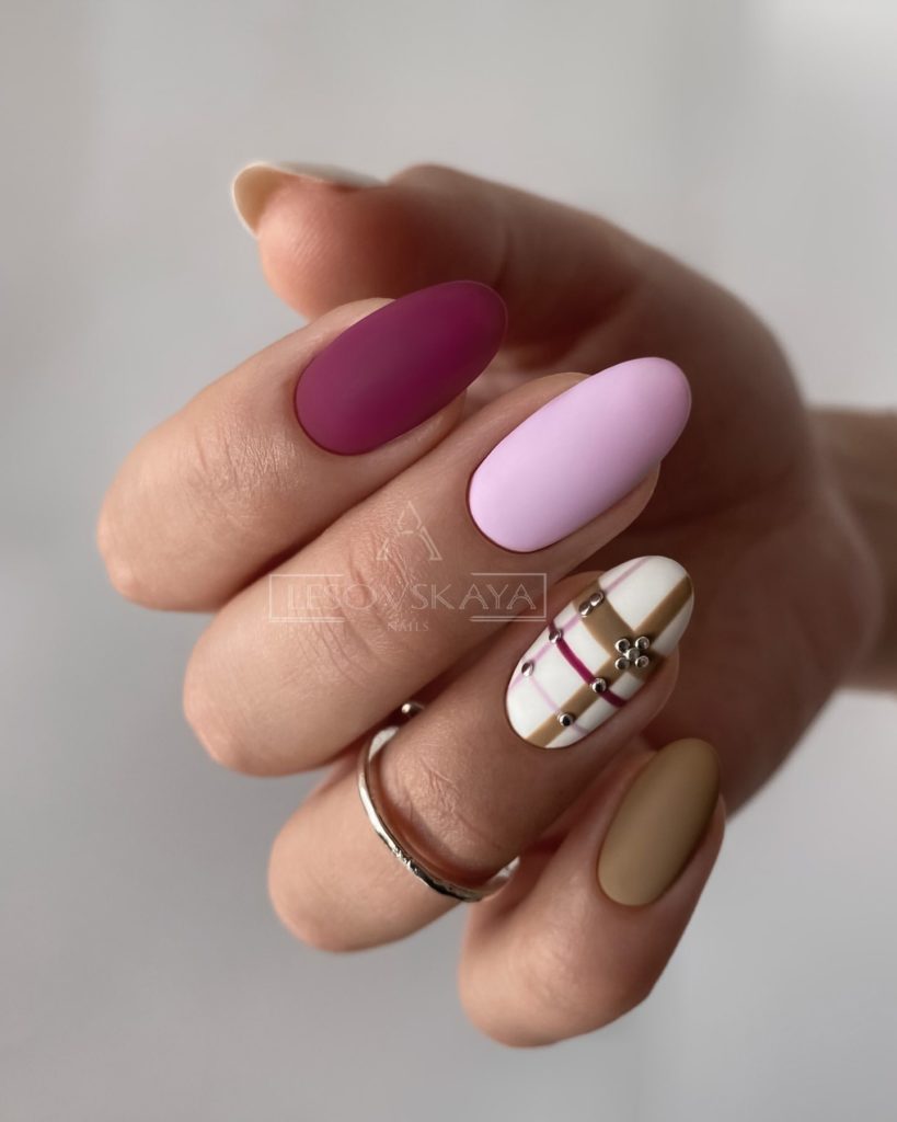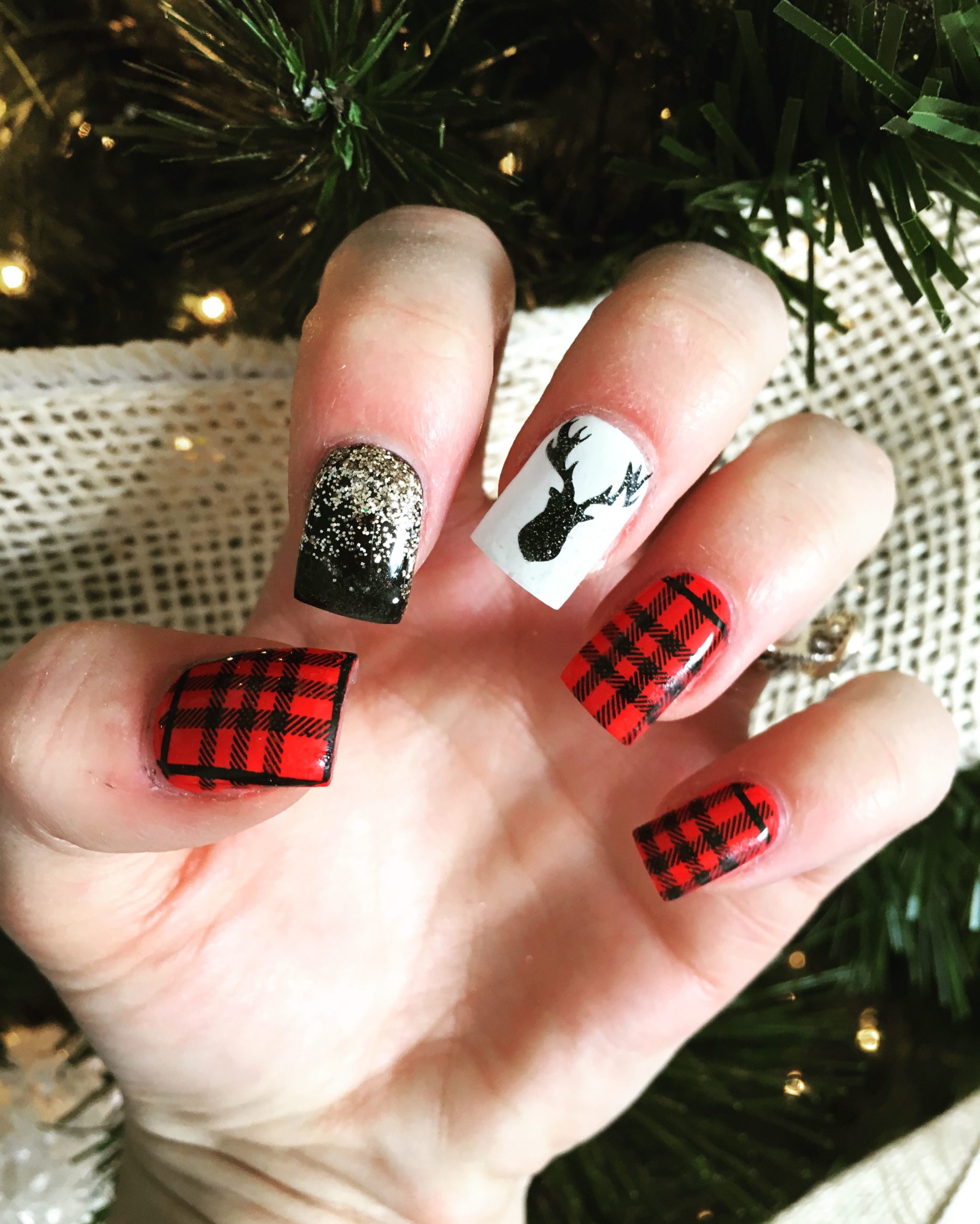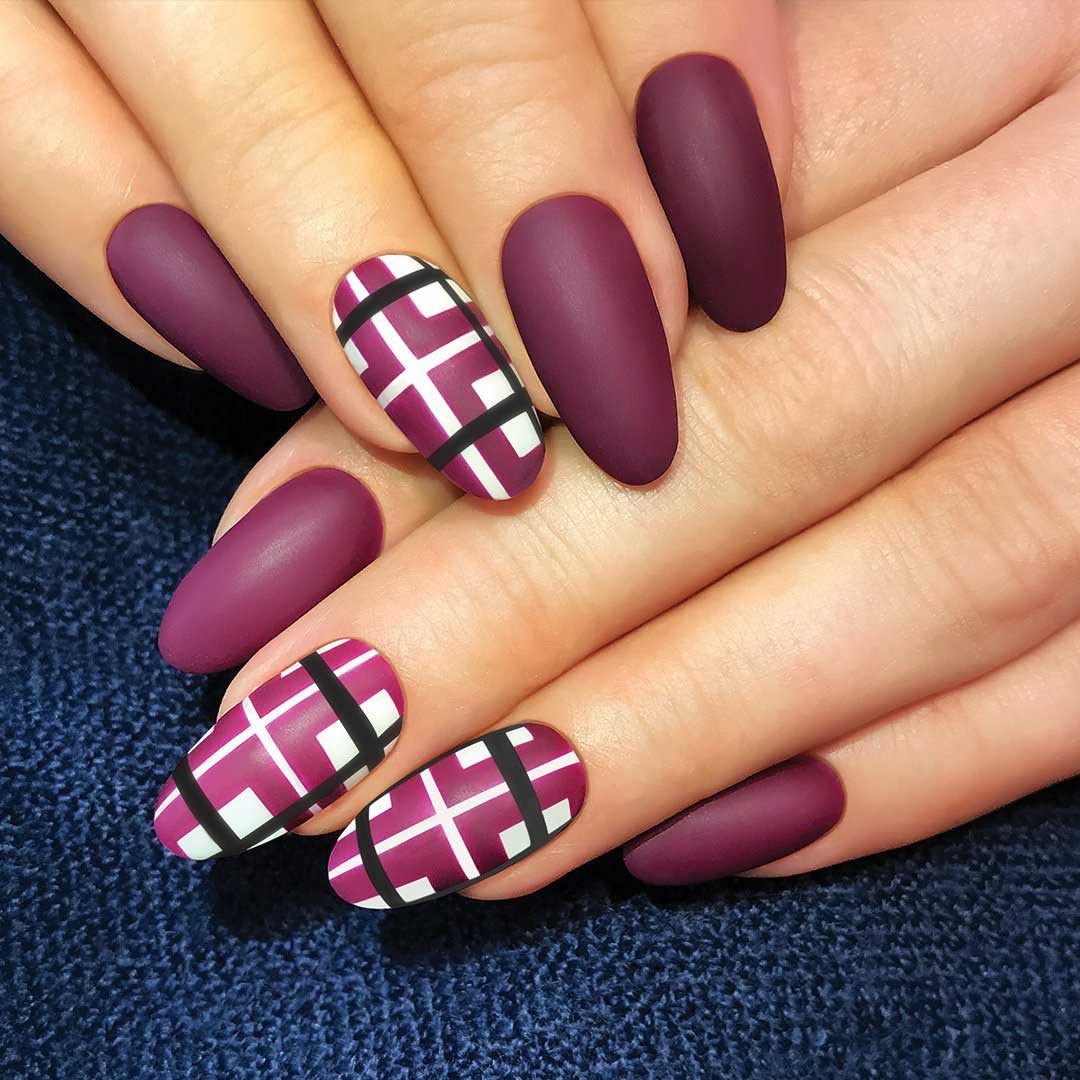 Какой мы представляем себе теплую ткань? Чаще всего это шотландка — мягкая, теплая с узнаваемым рисунком в клетку. Если вязаный маникюр для декабря по каким то причинам не подходит, сделайте клетчатый. Стильно смотрится выделение таким образом всего одного ногтя. Остальные могут быть матовыми или глянцевыми.