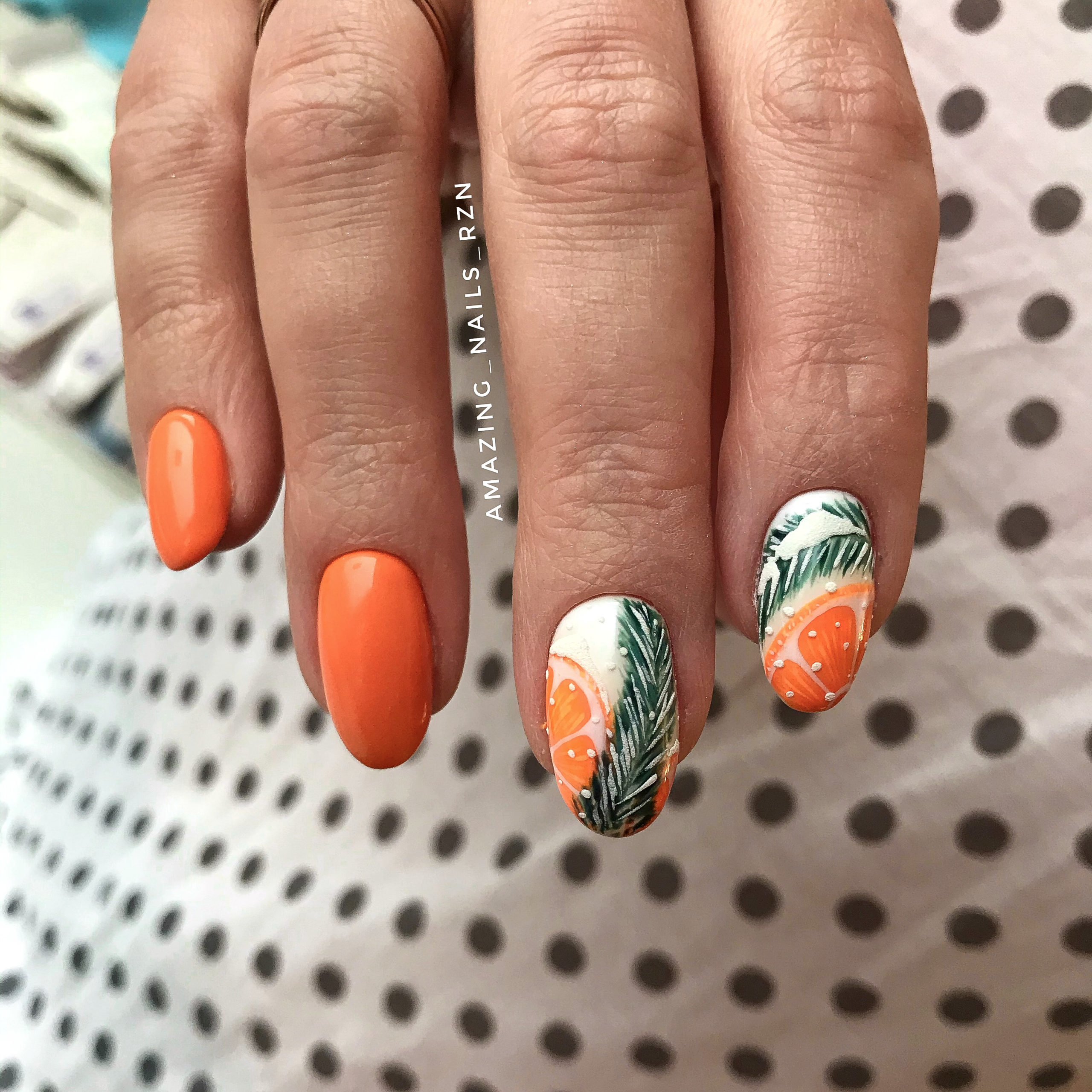 - оранжевый. Это довольно сложный оттенок. Но для маникюра в декабре каждая модница найдет свой оттенок — для смуглой кожи подходит коралловый, светло — персиковый, оливковой — мандариновый и др. Маникюр в декабре не стоит делать моно оранжевым. Просто сделайте яркий цветовой акцент в стиле оранж, а для базы выберите нюдовый, коричневый или оливковый;