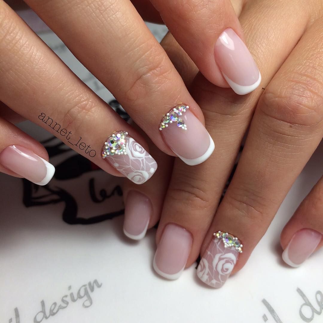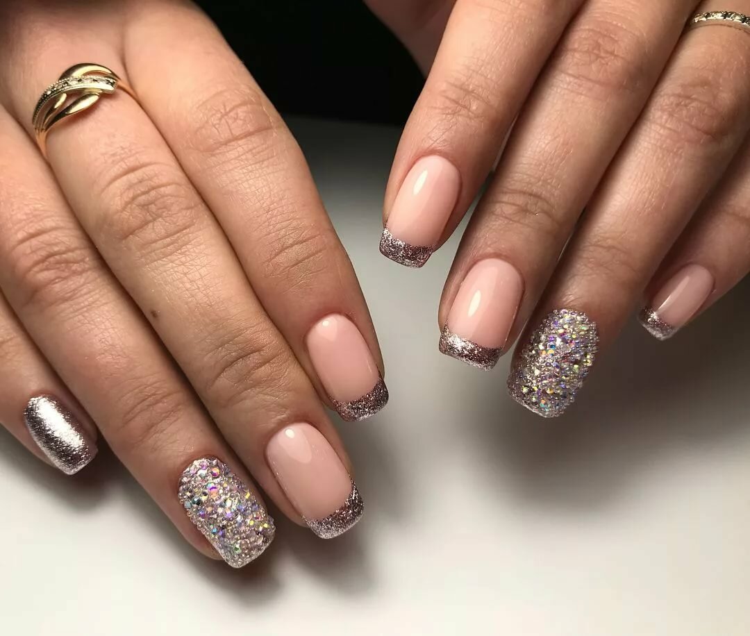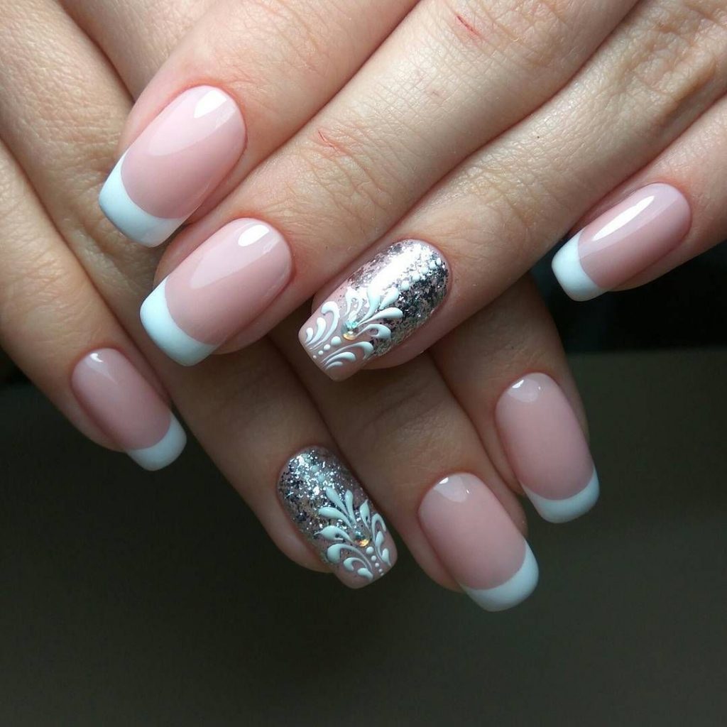Вряд ли вы удивились, когда увидели в списке французский маникюр. Это классика, которая подходит как для лета, осени, так и декабря. Но в первый зимний месяц рекомендуем сделать необычный френч — с морозными узорами, кусочками битого стекла или необычной линией улыбки. Если вам нужен спокойный маникюр для офиса — просто выделите линию улыбки тонкой серебристой жилкой.