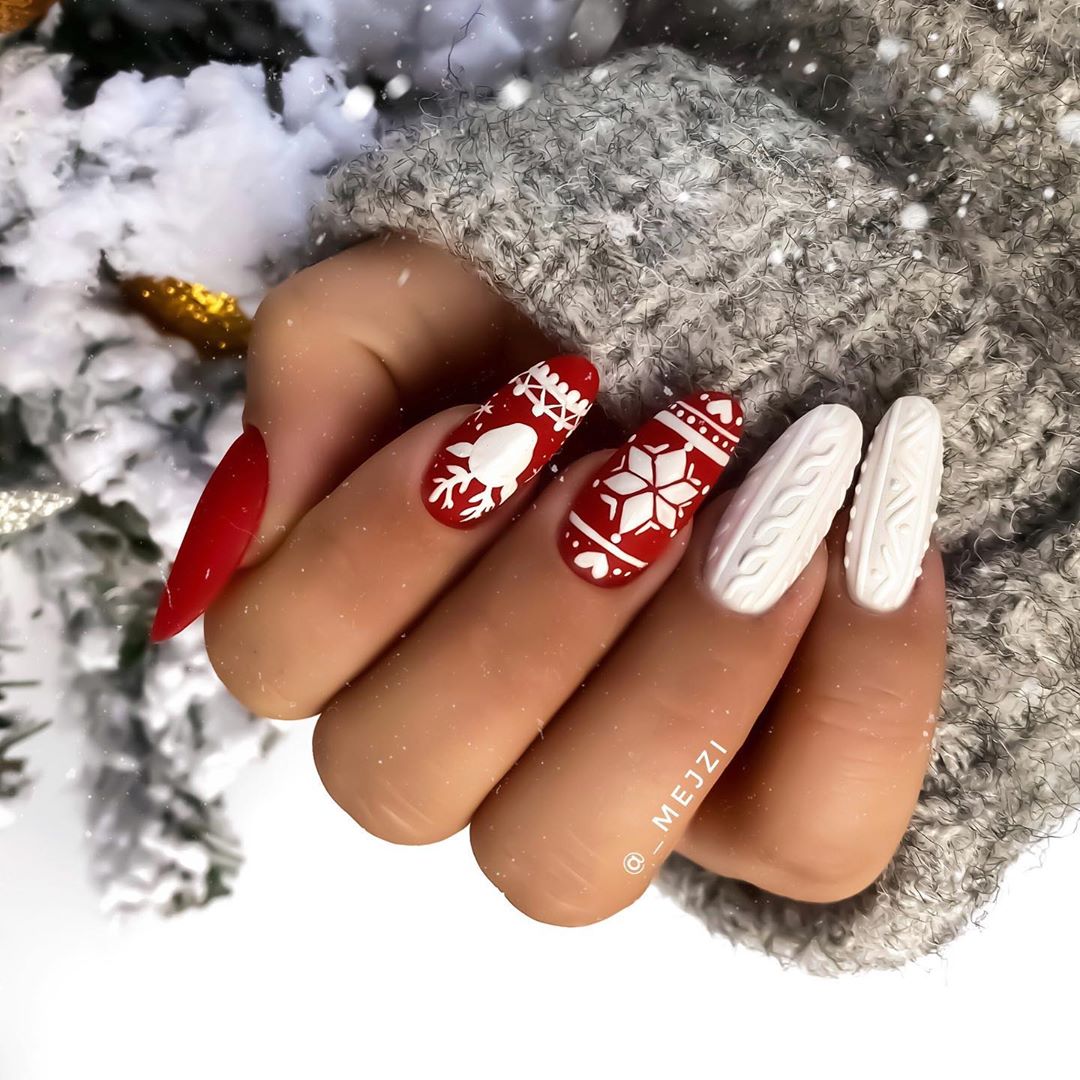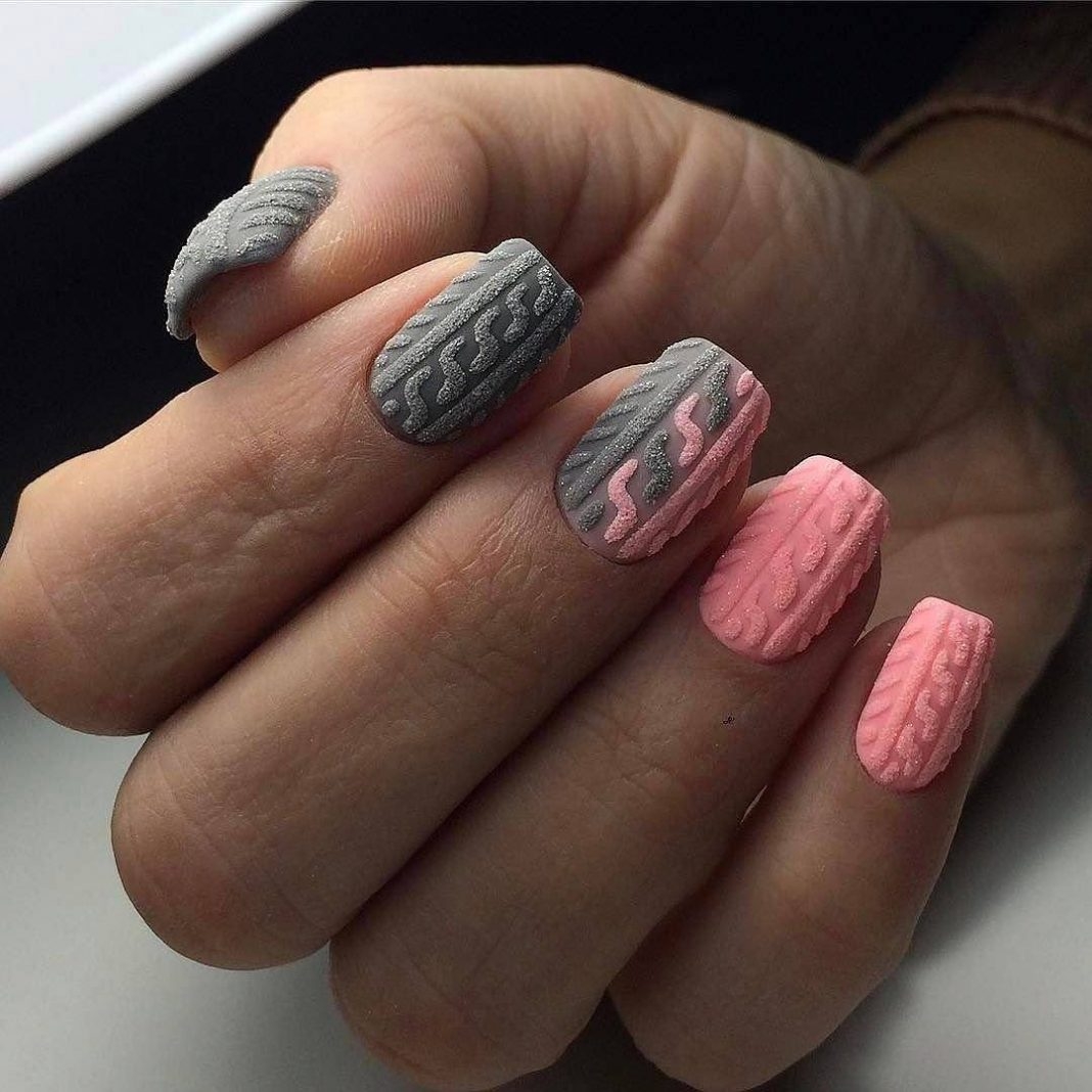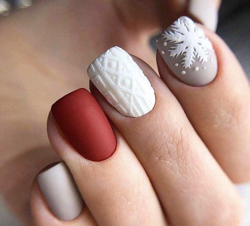 Совет: вязаный дизайн лучше сочетается с матовым топом. Оформлять таким образом все ноготки необязательно. Достаточно сделать пару акцентов. Для офисного маникюра в декабре этого будет достаточно. Если вы сделаете такой дизайн в конце месяца, то прямо перед праздниками его можно будет изменить — добавить немного наклеек или рисунков.