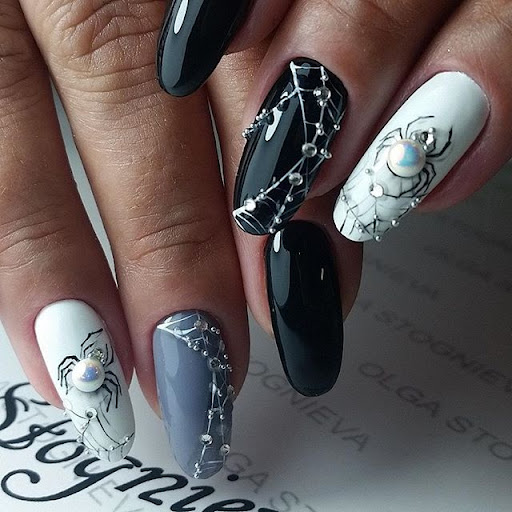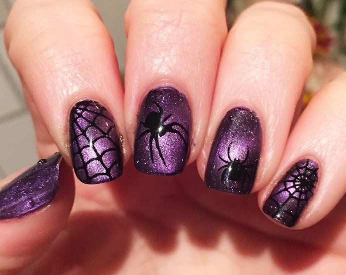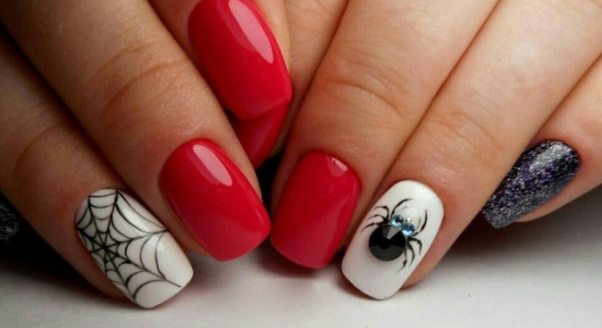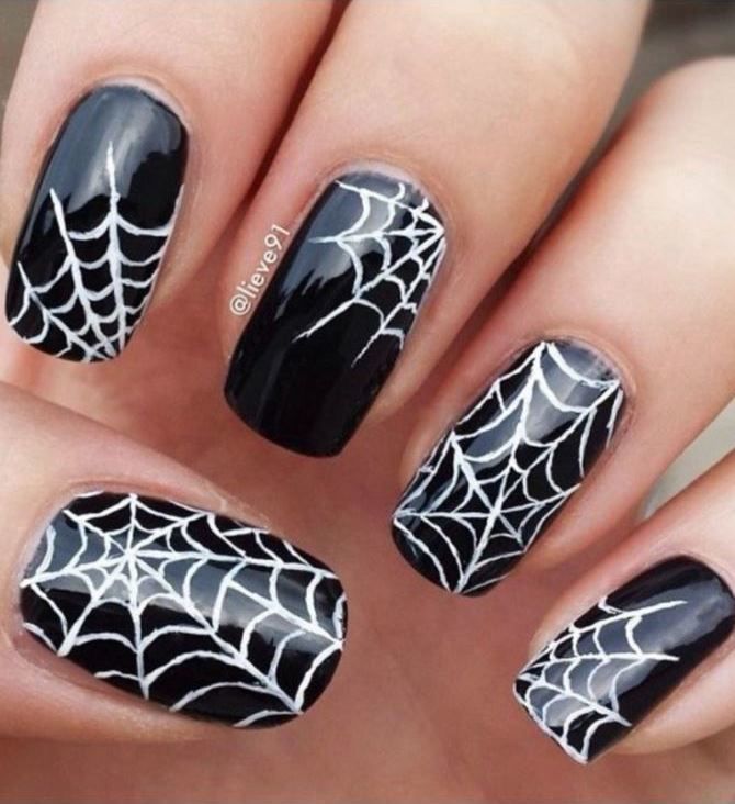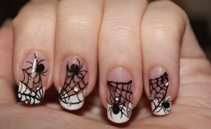 Паук сплел маленькую паутинку — такой рисунок выглядит очень мило и вместе с тем вносит нотку готичности и духа кануна дня всех Святых. Матовая текстура покрытия в этом случае выглядит более креативнее.