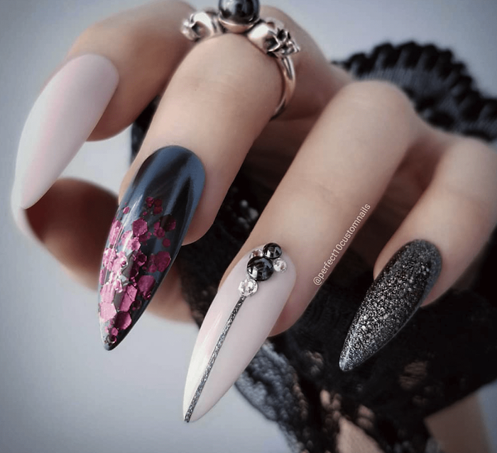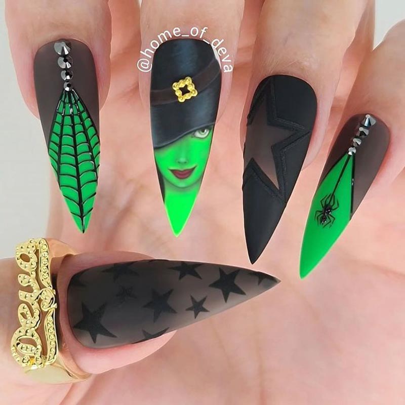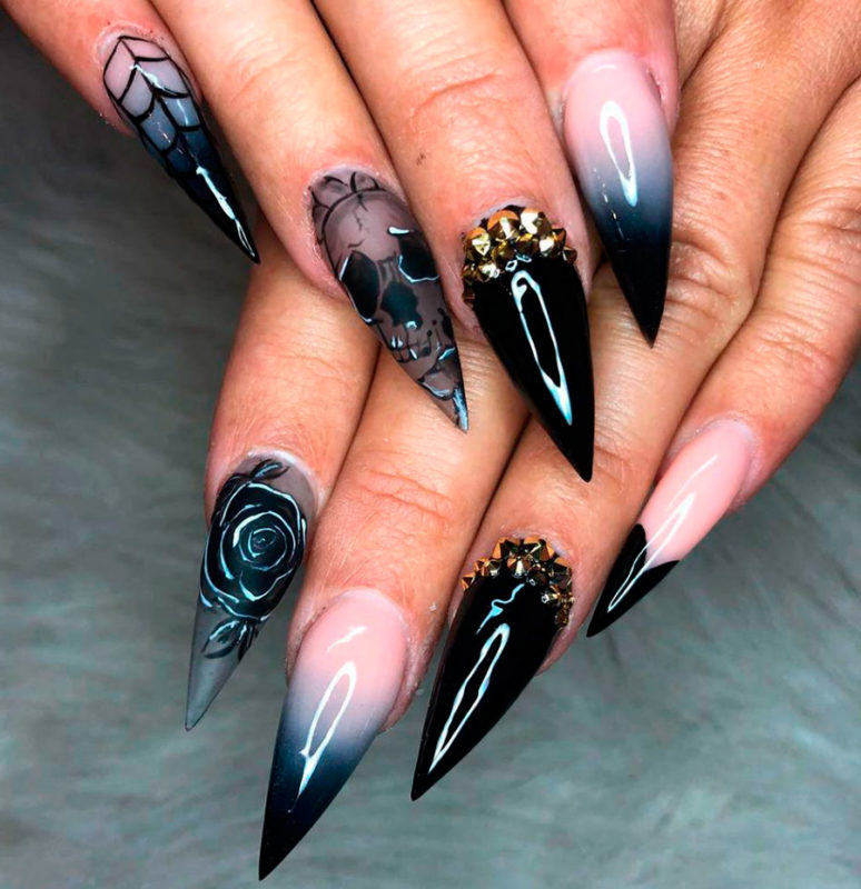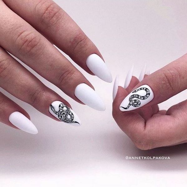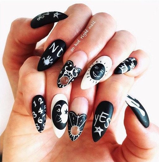 Если вы носите длинные ногти, то обладаете правом выбора большого разнообразия оригинального и яркого нейл-дизайна. На большой ногтевой пластине можно нарисовать целый сюжет для триллера в духе Тима Бертона, ведь дерзкие и смертоносные ведьмочки носят именно такой маникюр: удлиненный и острый!