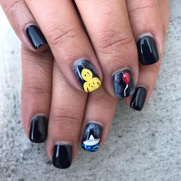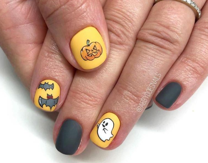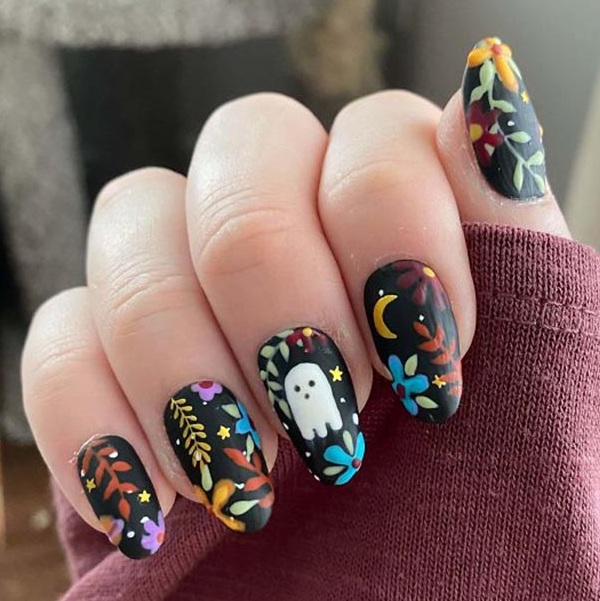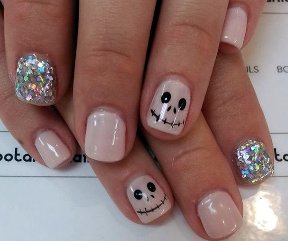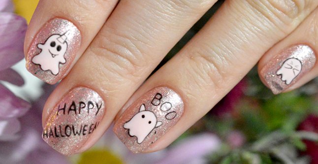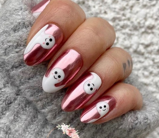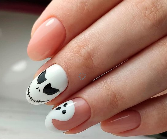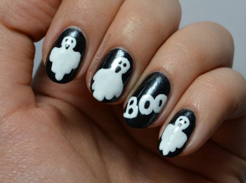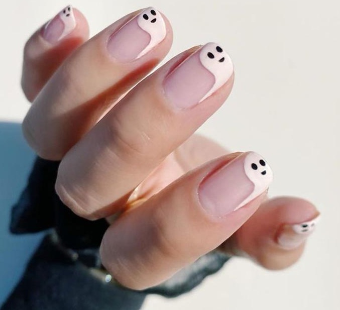 Маникюр с призраками можно исполнить в забавном и мультяшном стиле.