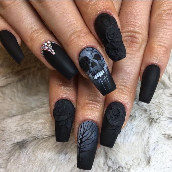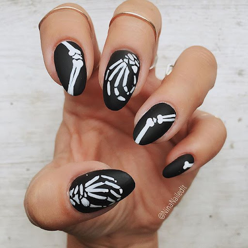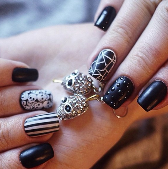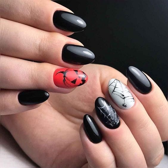 Самый готический цвет сделает ваш маникюр по умолчанию в тему Хэллоуина-даже придумывать ничего не надо. Особенно впечатляюще угольно-черный смотрится на длинных и заостренных ногтях, это неотъемлемый атрибут образа вызывающей ведьмочки.