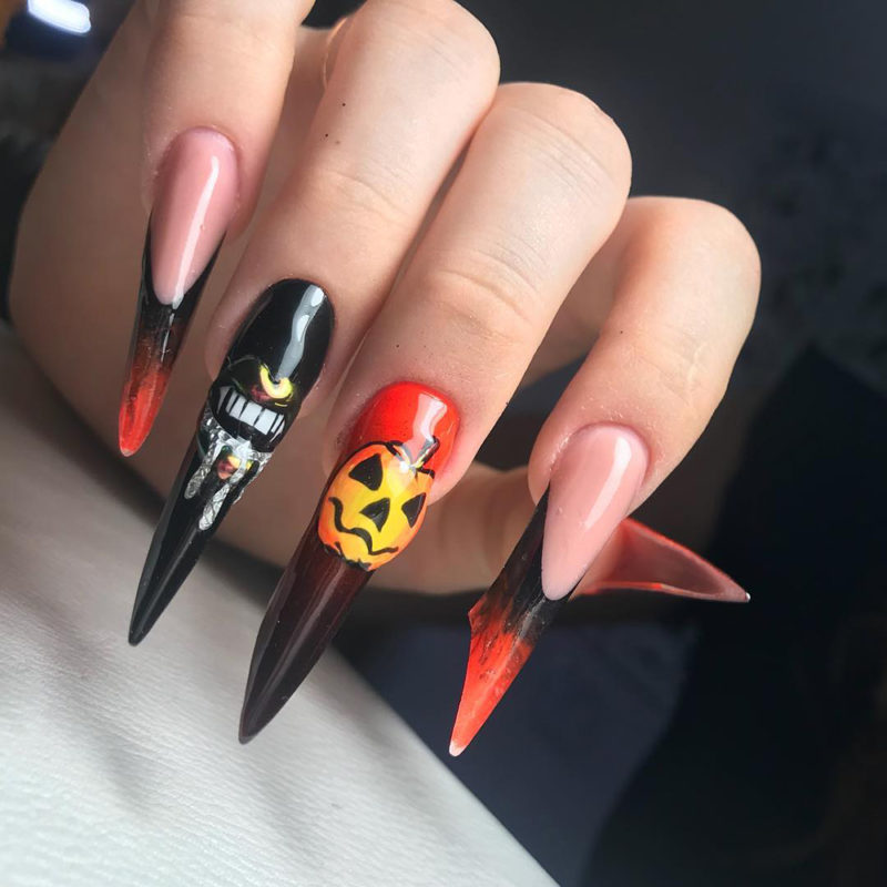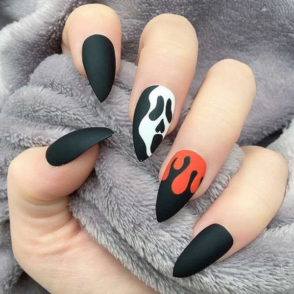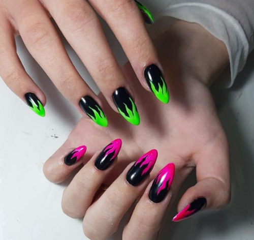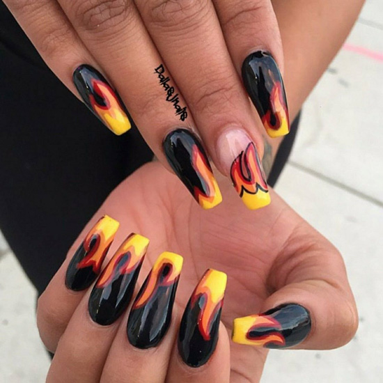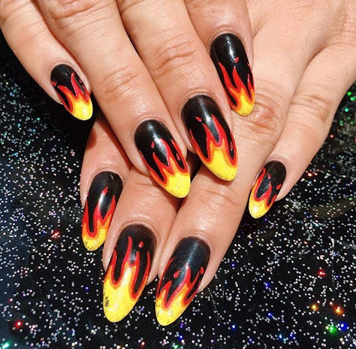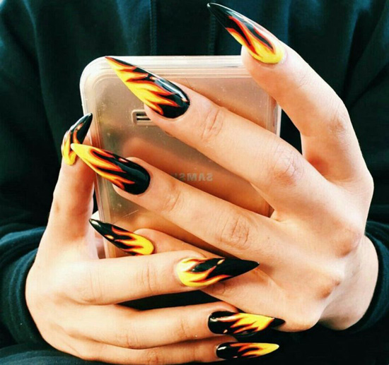 Огненные языки будут очень эффектно смотреться в нэйл-дизайне на тематику Хэллоуина.
